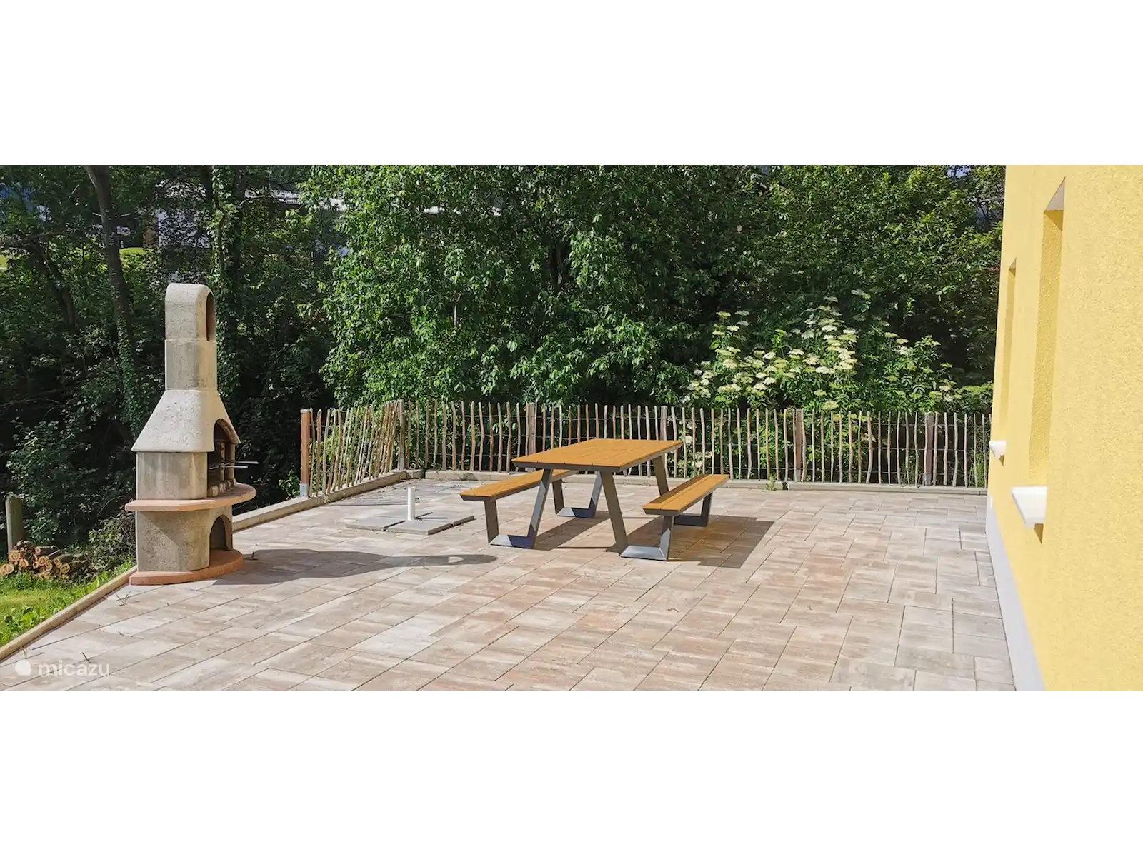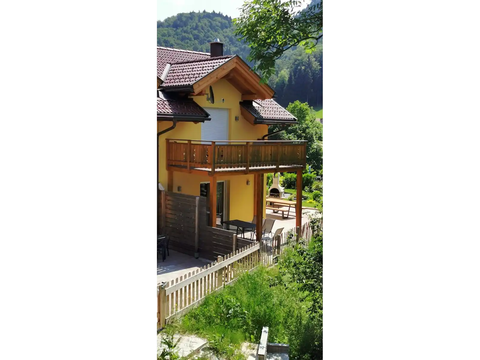 Our house in Seltschach has 3 bedrooms, making it an ideal holiday home for a family of up to 6 to 7 people. The living room has a cosy wood burning stove and patio doors leading out to the terrace with mountain views. The house also has an outdoor sauna. You enter the house in the hall that is adjacent to the toilet and laundry room. Through the hall you also get access to the living room with open kitchen with ceramic hob, oven and fridge-freezer at the front on the ground floor, with tiled floor with underfloor heating. On the sunny side is the living room with 3-seater sofa and spacious dining table suitable for 7 people. A beautiful wooden staircase leads you to the landing of the first floor, which also has underfloor heating. There are also 2 spacious bedrooms with TV. A cot is available. Both bedrooms have their own adjoining bathroom with shower. At the rear is a spacious balcony accessible through patio doors where you can fully enjoy the sun.