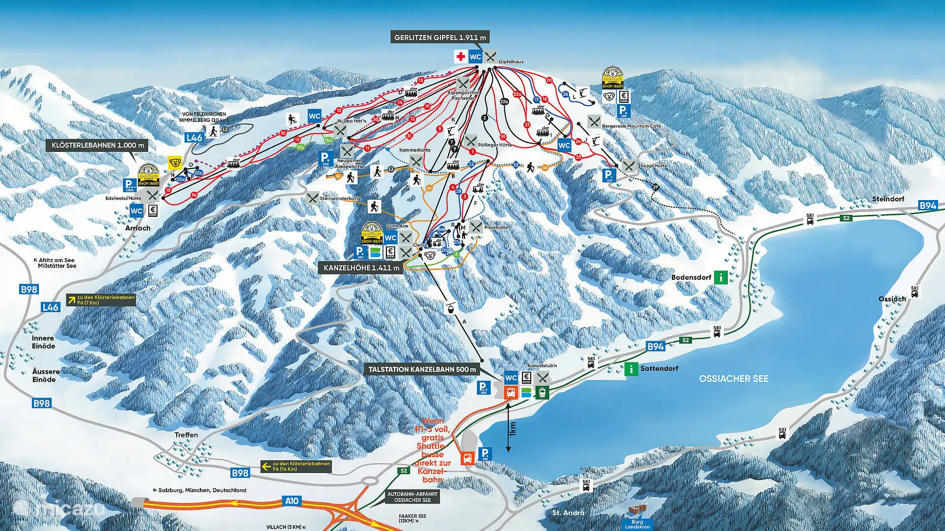 In winter, the Gerlitzen Alpe turns into a popular ski area, especially with families and recreational winter sports enthusiasts. With 53 kilometres of pistes and 12 km of ski routes, the Welcome Beginners seal of approval and good snow reliability thanks to snow-making facilities, the area offers winter sports opportunities for all levels. Beginners and children can go to special practice zones and ski schools, while advanced skiers seek out the more challenging runs.