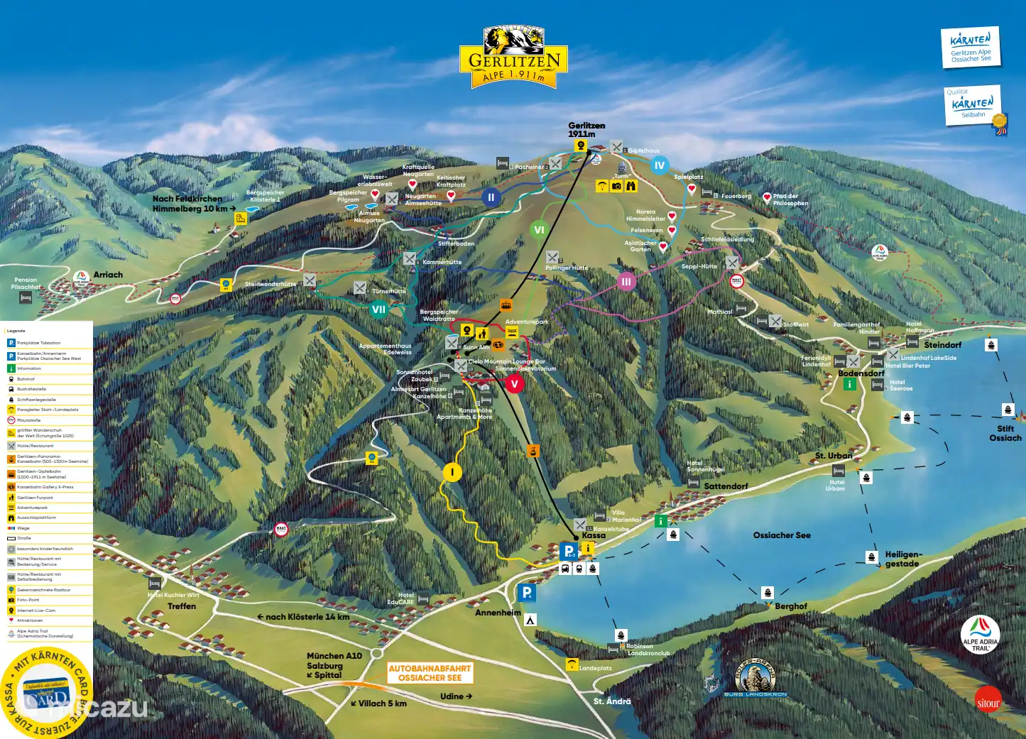 The Kärnten Card is a tourist card that offers access to more than a hundred attractions in the Austrian state of Carinthia at a low price. The card has been specially designed for holidaymakers who want to see and experience as much as possible during their stay. With the Kärnten Card you can use mountain lifts, cable cars, tour boats on the lakes, zoos, castles, museums, swimming pools and panoramic roads, among other things.