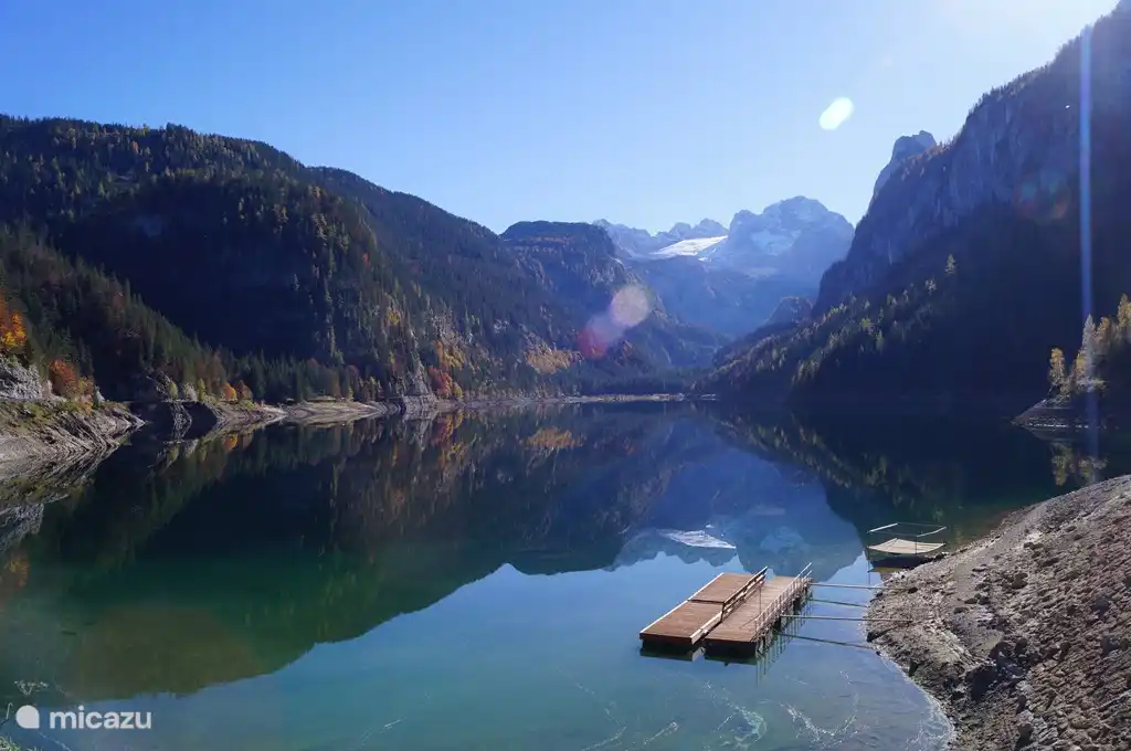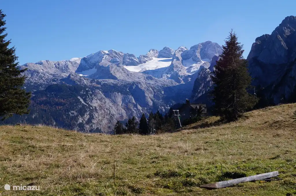 It is often cool on the balcony in the summer, while you can enjoy the sun on the terrace . The terrace has a dining table, 2 benches, 4 chairs, 2 sun loungers, parasol and bbq. From our terrace you have a wonderful view of Dachstein-West (Bischofsmütze). The garden is fenced and next to the front door is the ski locker.