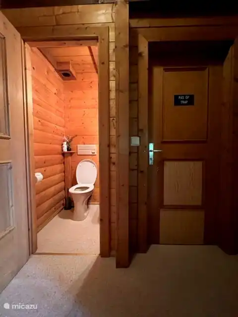 This floor has a living room with cozy dining area, kitchen, three bedrooms, a bathroom with shower and toilet, an extra toilet, a low sleeping loft and a beautiful large balcony. In addition to electric heating, both floors also have an Austrian wood stove.