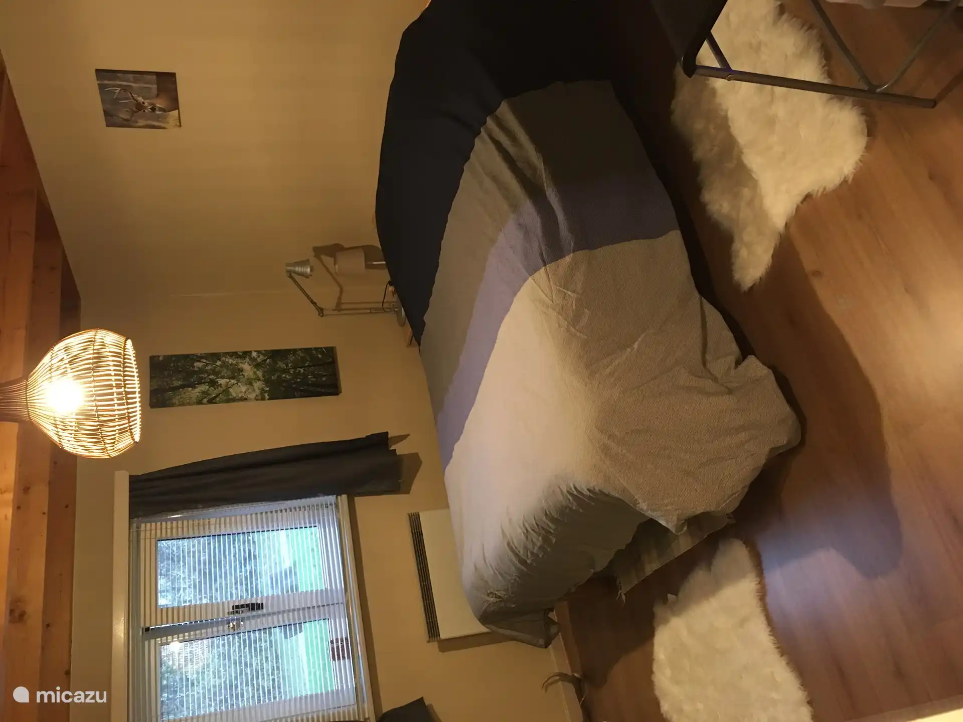 2 bedrooms each with a double bed (160*200), and 1 smaller room with bunk beds.