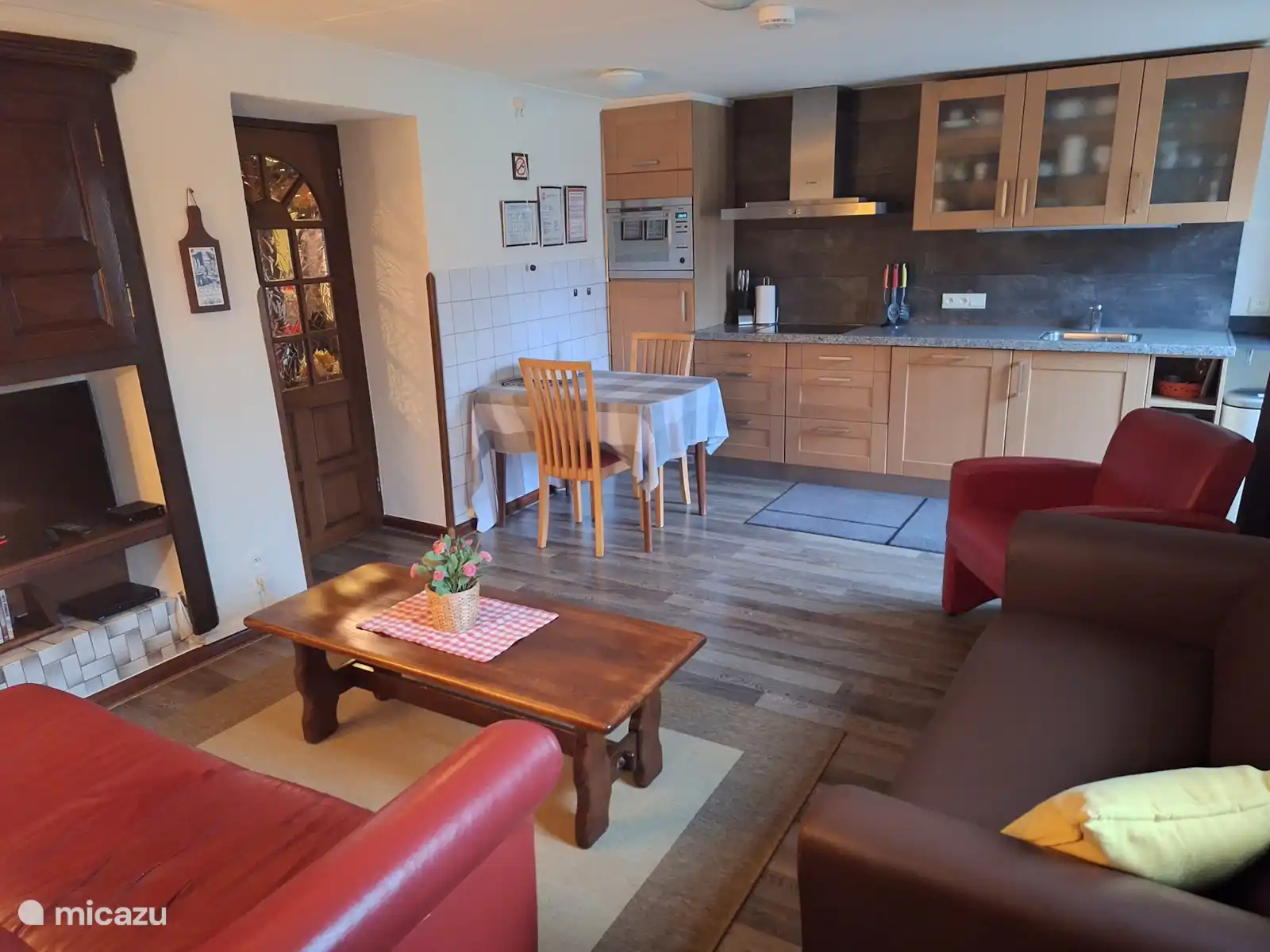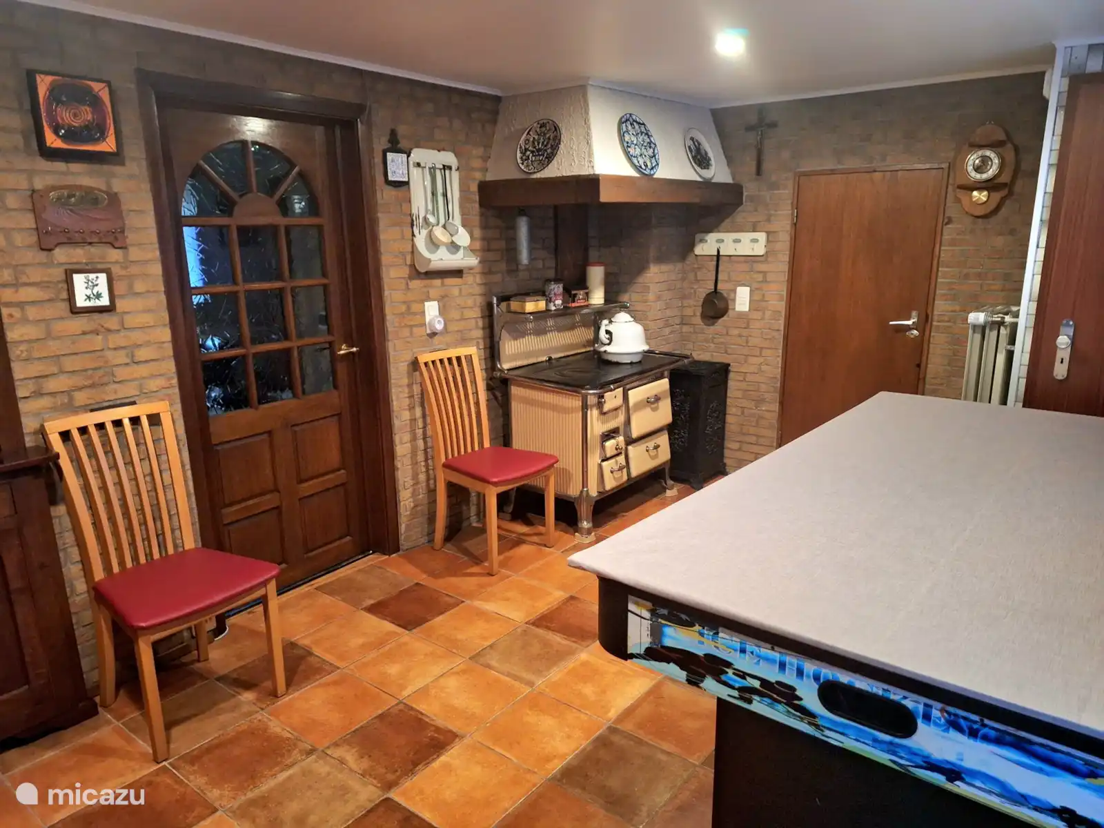 Our farmhouse dates from 1840 and was converted into a spacious and cozy holiday home. The house consists of two floors that are connected by a staircase indoors. In addition to authentic elements, the house is equipped with all modern comforts. There are a total of five double bedrooms, one of which can be used as a family room. There are three bathrooms, 3 toilets, two kitchens and two living rooms. In the upstairs living area is the communal living room with large dining table and with plenty of room for 10p. Downstairs is the air hockey table. Behind our child-friendly house is a large fenced garden with playground equipment and large trampoline. From the house and the various terraces, one of which is covered, you have an unobstructed view of the meadows where deer regularly come to graze. Far away from mass tourism but with various walking, cycling and mountain biking routes directly at home. An ideal location for families or friends who appreciate space, tranquility and nature. Please note: Due to the historic character, there are steps to be taken into account, doors, stairs and sometimes low and narrow passages. It is therefore not suitable for wheelchairs or walkers. For this rental option, only (long) weekends are possible.