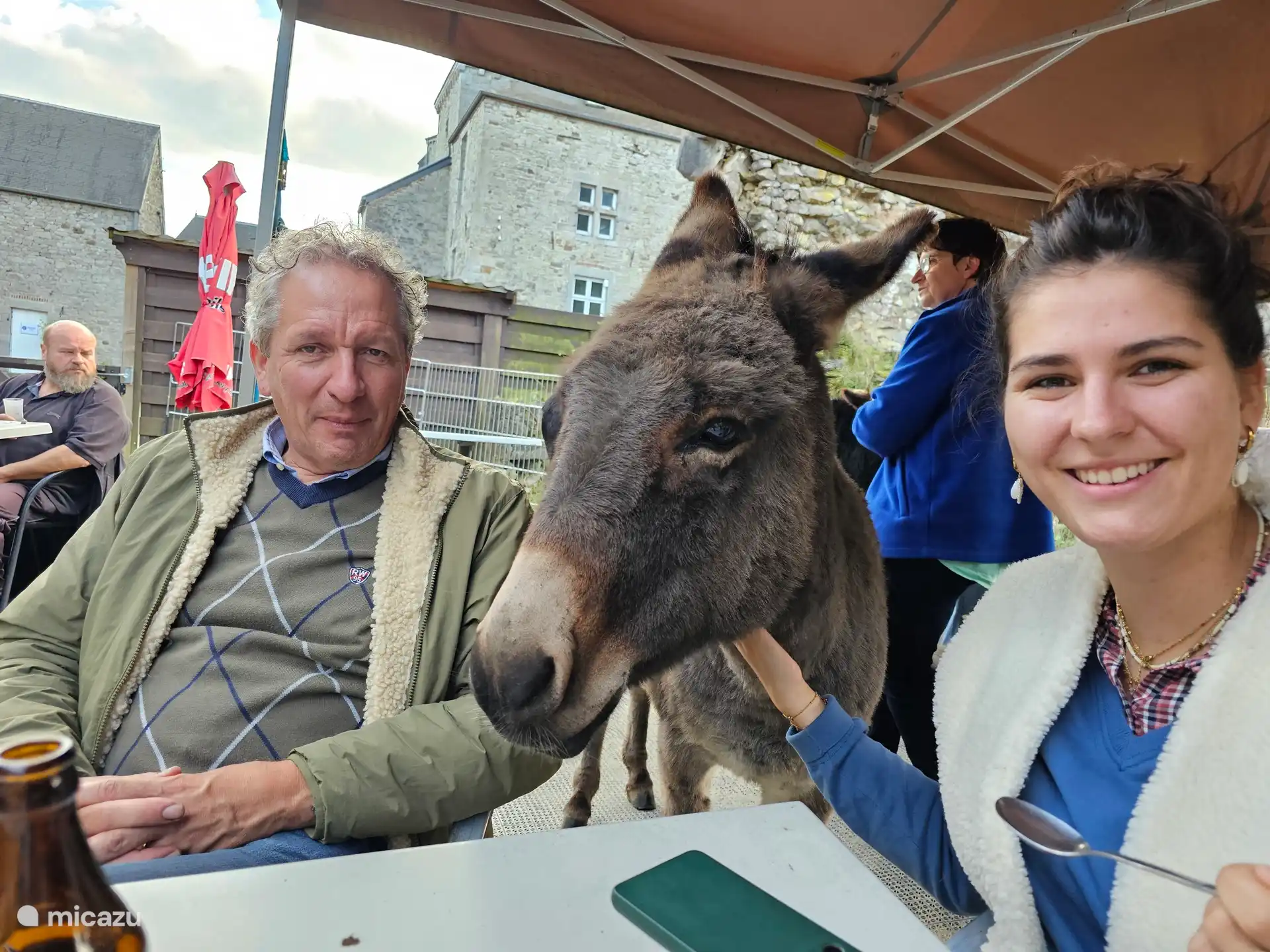 The authentic Ardennes village of Treignes is a three-minute walk away. There is a beautiful church with a cozy village café next to it. In the castle farm next to the church you can have a drink among the donkeys or take a walk with these sweet animals!