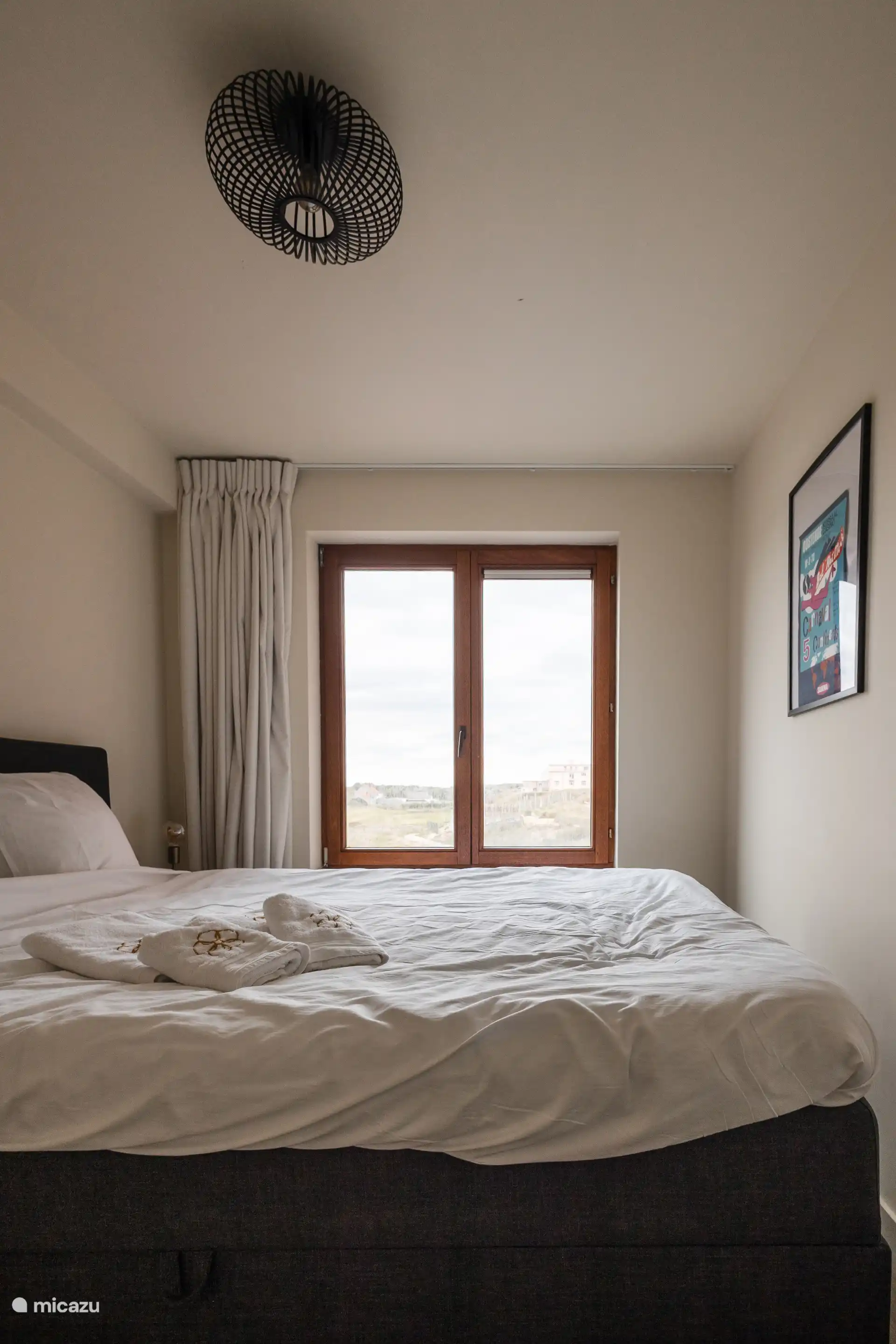 The apartment was completely renovated in 2025 and has 2 spacious bedrooms, each with a 2-person ergonomic box spring. Along one of the bedrooms you enter the terrace, which has a garden set and where you can enjoy the afternoon and evening sun. In addition, there is also a spacious bathroom with a beautiful spacious walk-in shower as an eye-catcher. The toilet is separate from the bathroom.