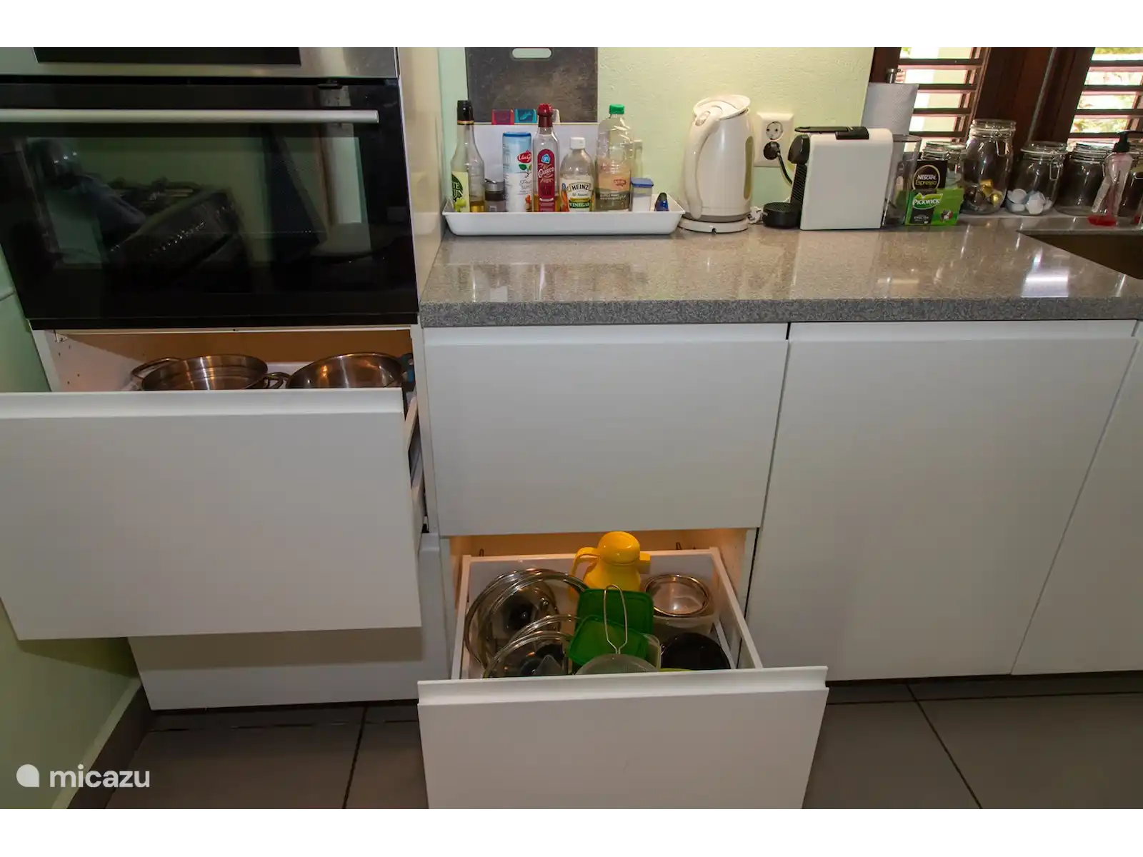 - The garden is surrounded by a natural stone wall and a kadushi (cactus) hedge. At the rear there is an access for a car (disabled people) Material: Almost all walls in the enclosures consist largely of EPS, a water-resistant material that is not only light, but also insulates; The indoor spaces are always cooler than outside. On Bonaire it is usually 30-33 degrees during the day, at night it cools down to 24-27 degrees. Cas Bon Majeti is built 'on the wind', so the cooling wind almost always blows through the enclosures.
