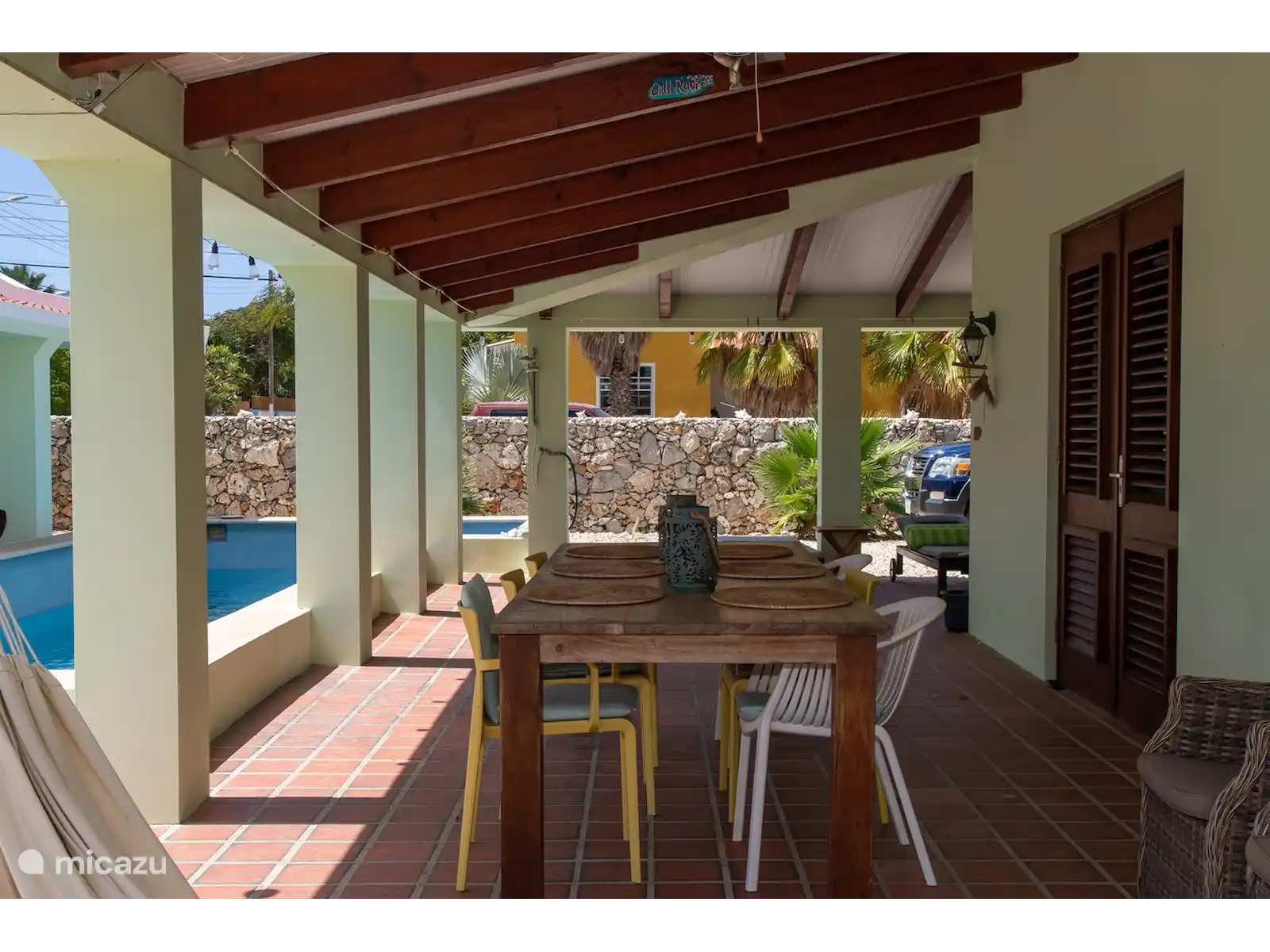 "Cas Bon Majeti". This beautiful Bonairean style villa with its own pool and separate studio is built on almost 900 square meters of land. Because the house is built on the wind, all 4 porches and quarters are wonderfully cool. The detached house and studio are located in a very pleasant and quiet neighborhood and are surrounded by trees and plants in a large garden.