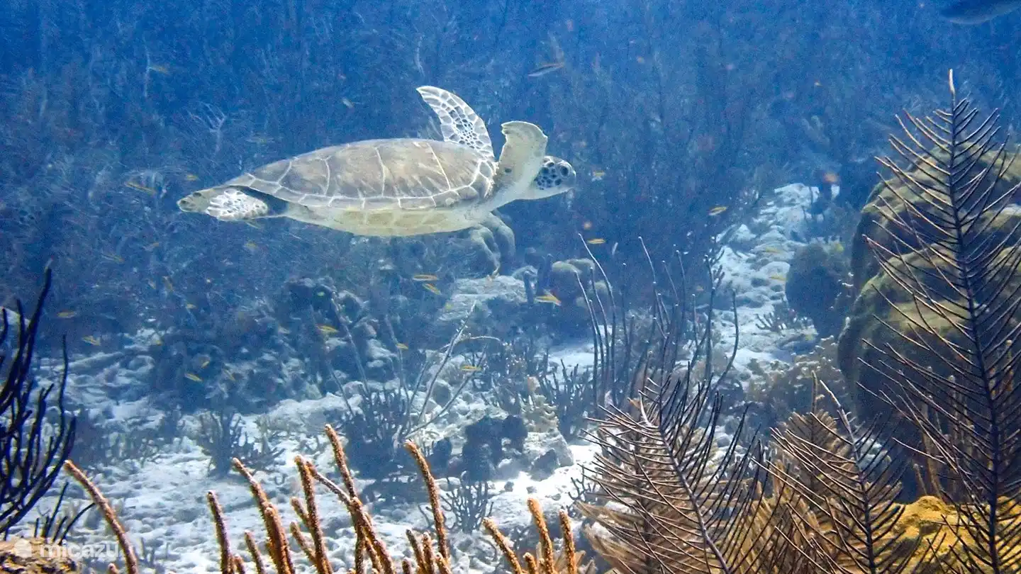 A sunny, detached holiday bungalow in a traditional and colorful architectural style; We would like to welcome you to Kas Pegapega (House 'Gekkootje') at Makambapleintje number 7A (Also known as Bungalow Park Bonaire Exclusive.) Located just a 5-minute stroll from the boulevard of Kralendicjk, with well-known restaurants such as It Rains Fishes, La Guernica and Karel's Bar. So you don't have to return by car in the evening! If you walk 10 minutes, you will be in the pleasant shopping street Kaya Grandi. For detailed information, search for "Kas Pegapega Bonaire".