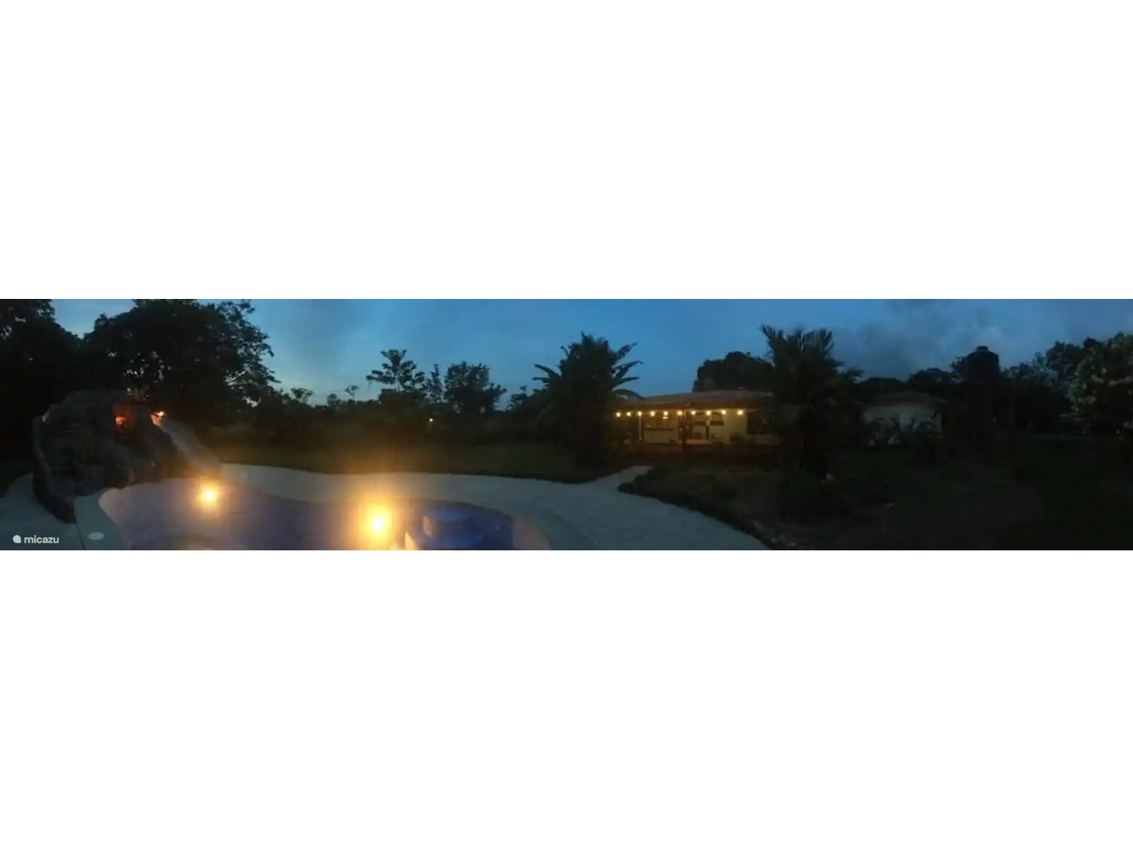 There are 2 houses: a cottage for the gardener and the villa with private pool. The villa has a covered porch on 4 sides and a pergola at the rear.