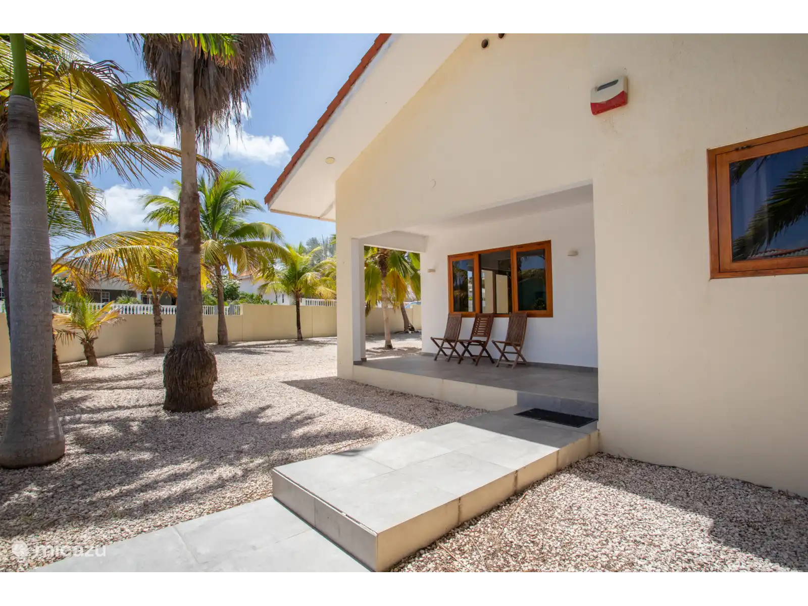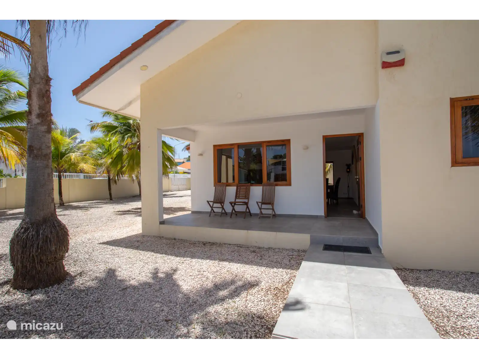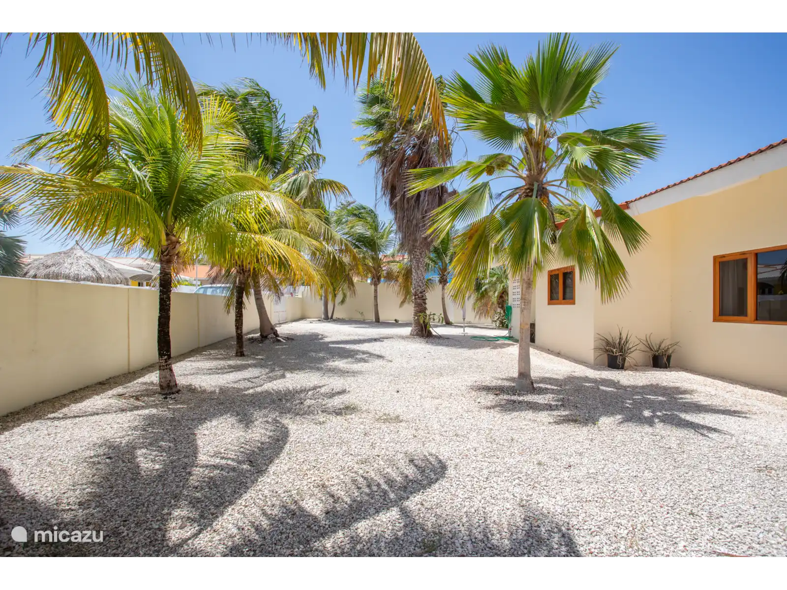 The holiday home is detached with a very large garden of almost 700m2 with palm trees. Several supermarkets, a laundry, a pharmacy and eateries are a few minutes' drive away.