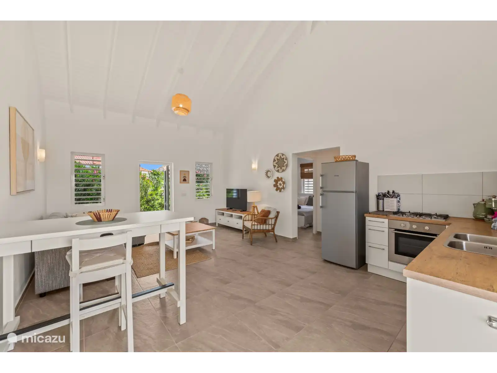 Outside it is really enjoyable! Take a refreshing dip in the spacious swimming pool, rinse off under the outdoor shower or relax in the shade under the palapa. The tropical garden and quiet location make it the perfect place to completely unwind.
