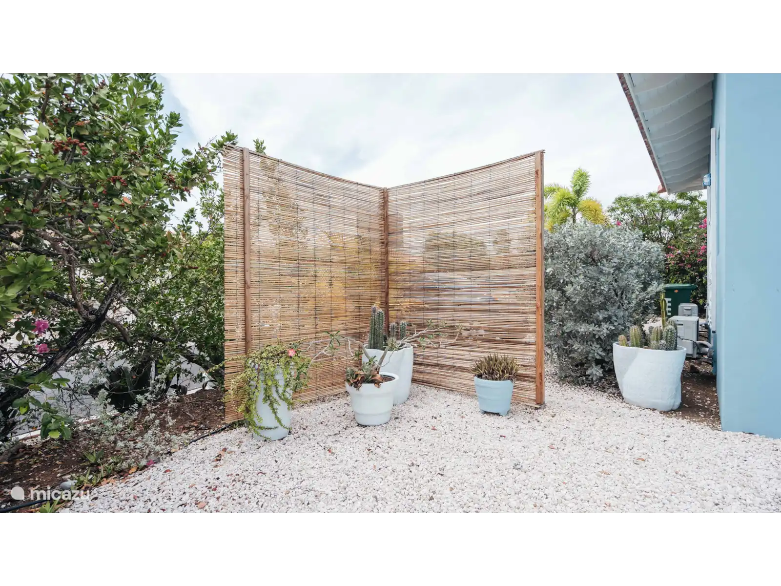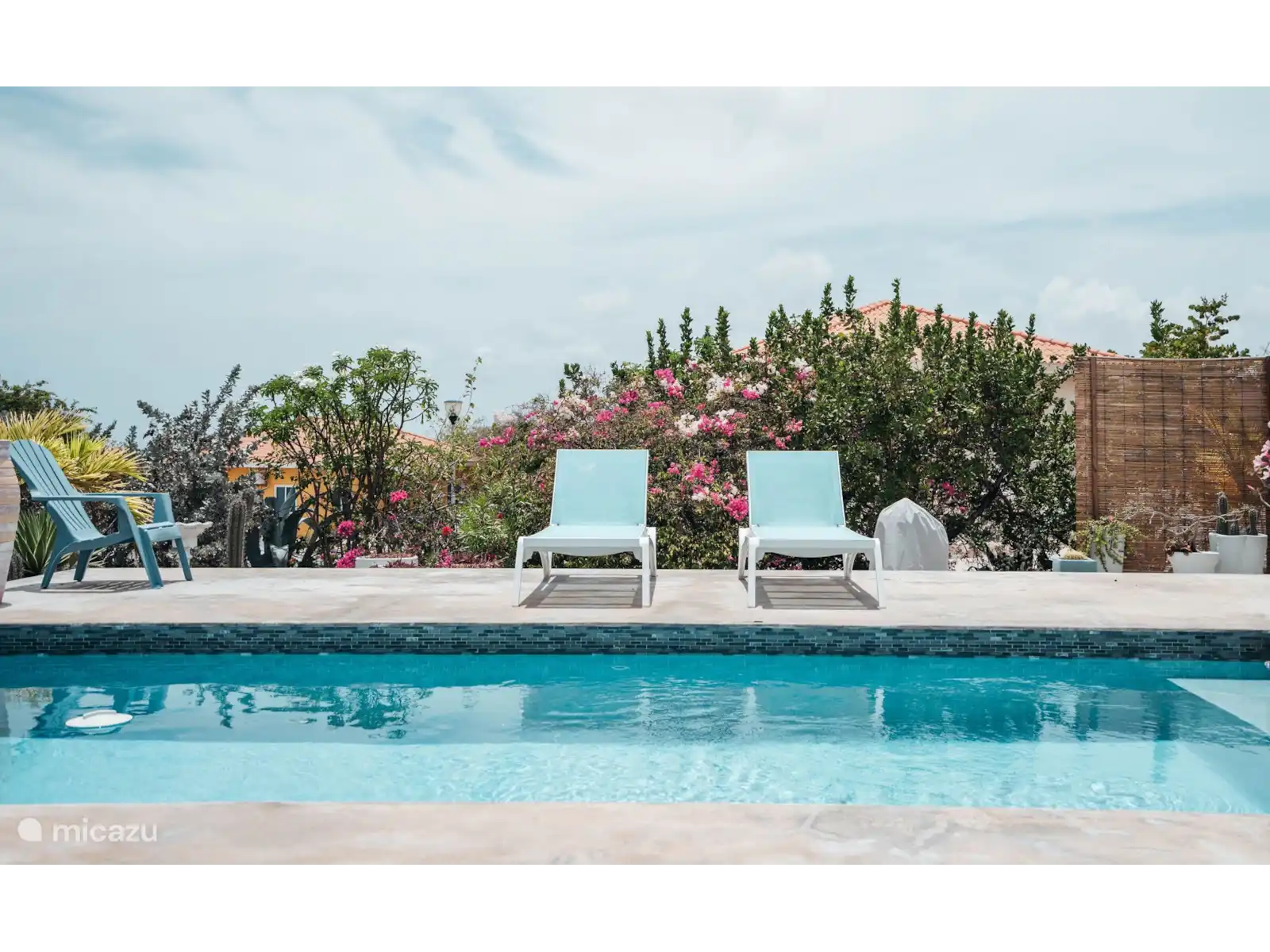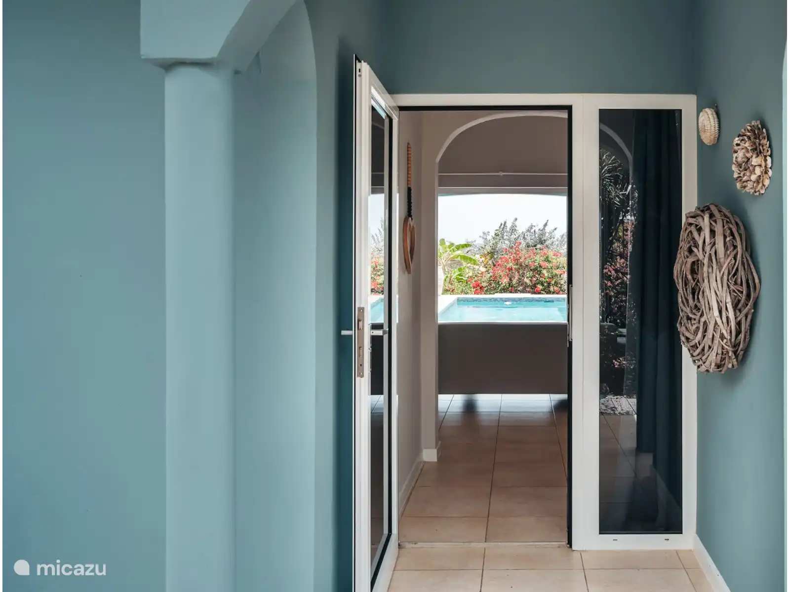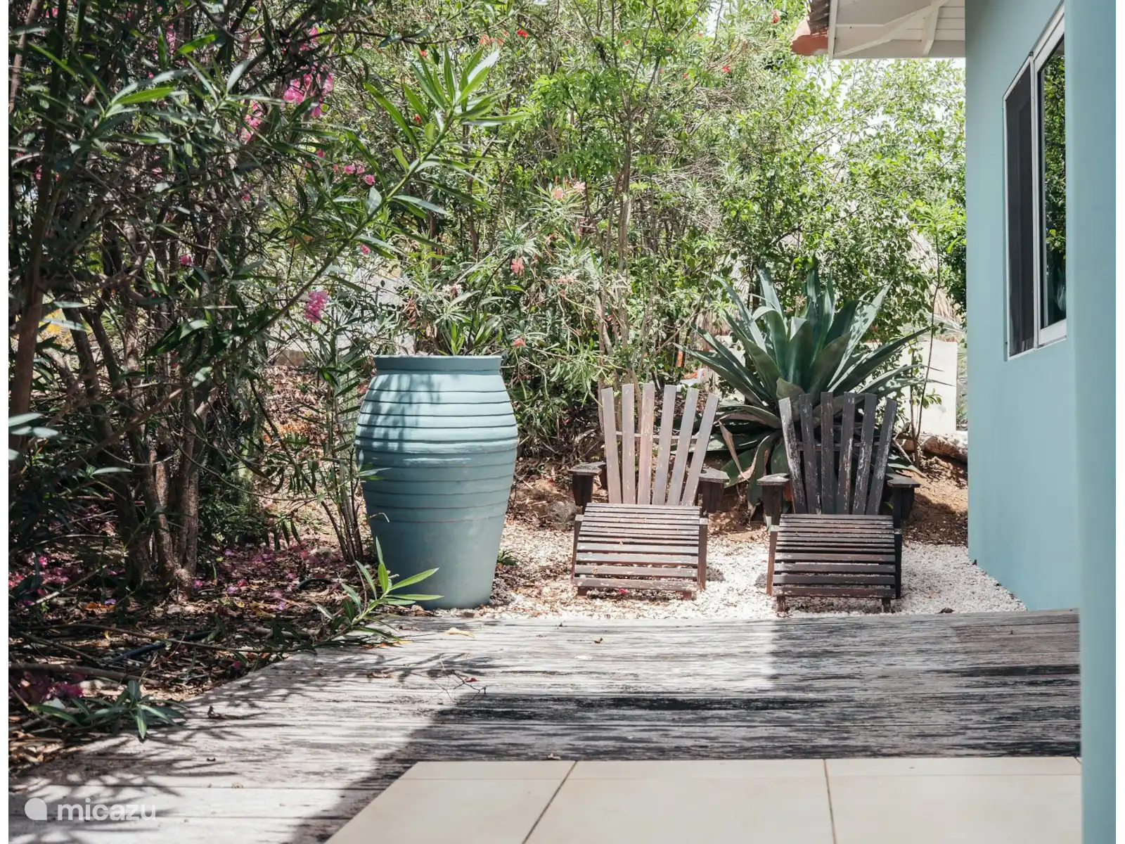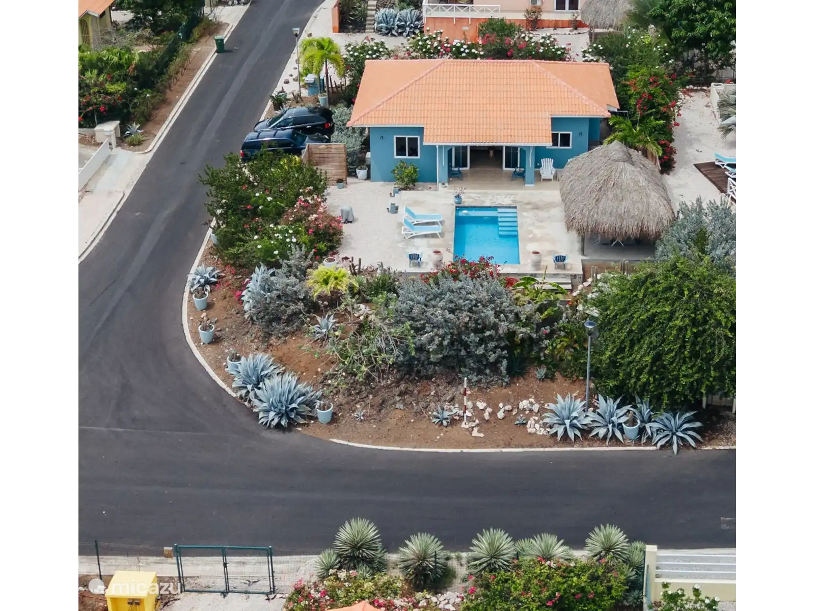 The house is built on a mound and located on a corner and has a large garden with trees and plants that occur on Curacao.