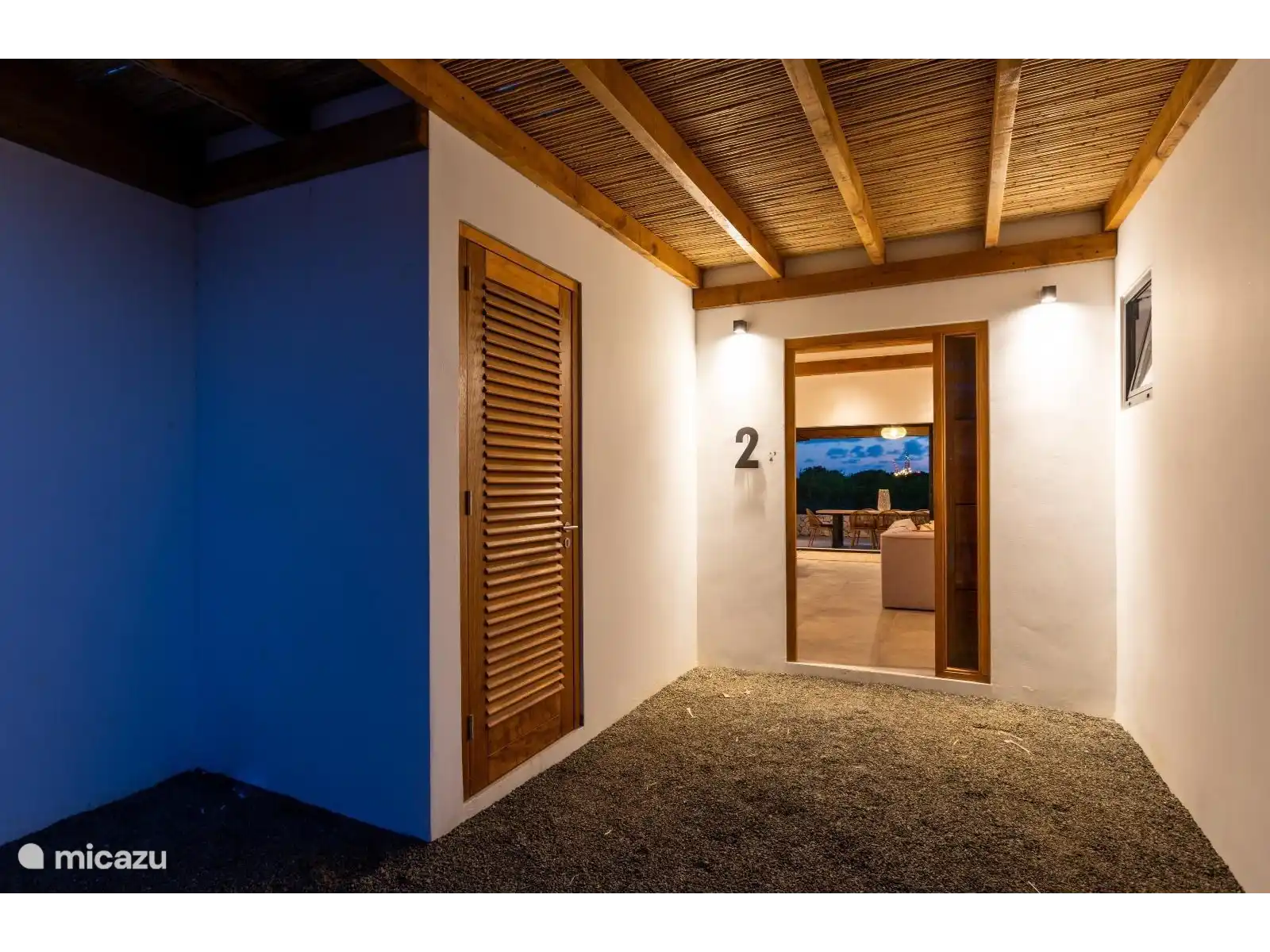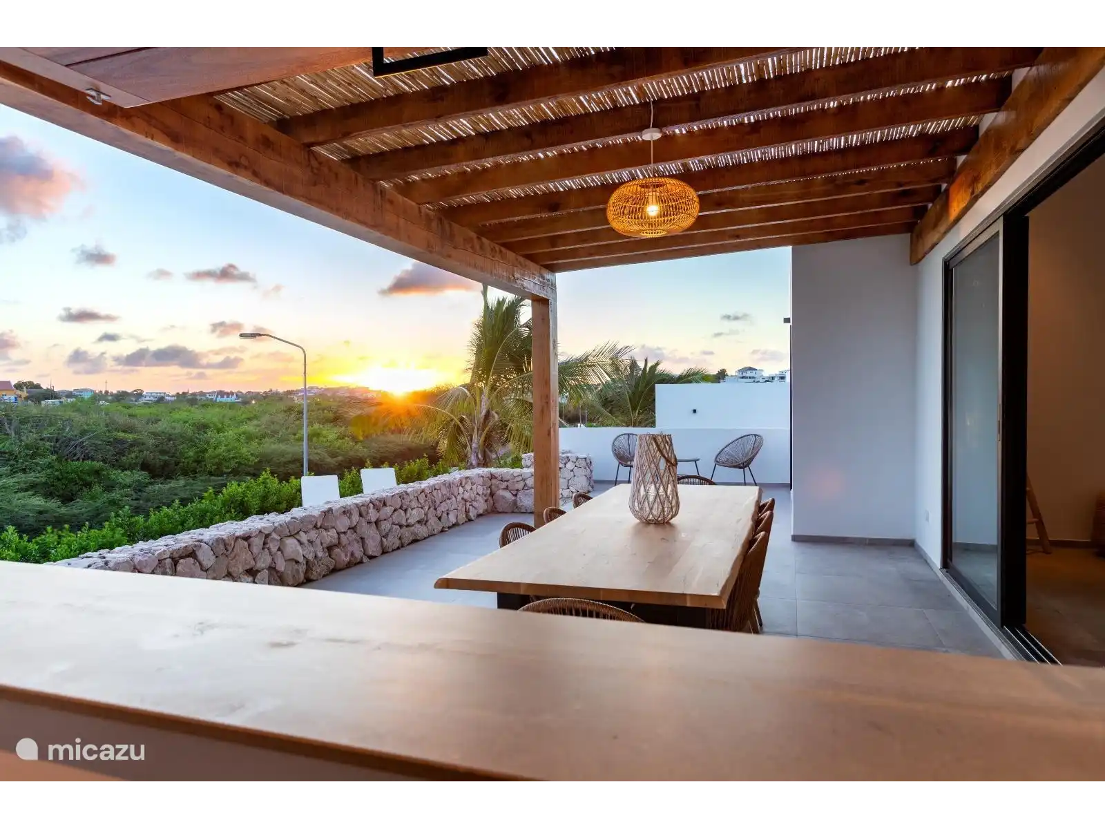 Through the sliding doors in the living room you step directly onto the spacious terrace. Here you will find the inviting pool deck with a private swimming pool of no less than 11 by 3 meters. On the comfortable Ibiza-style sunbeds you can relax in the sun. The covered terrace (pergola), which is directly adjacent to the living room, offers a nice shaded area with a large outdoor table – perfect for long evenings outdoors. A wooden pebble connects this terrace to the kitchen for added convenience.