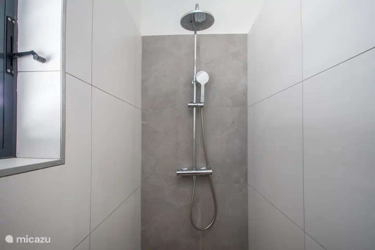 - The spacious bathroom has a shower that can be electrically heated.
