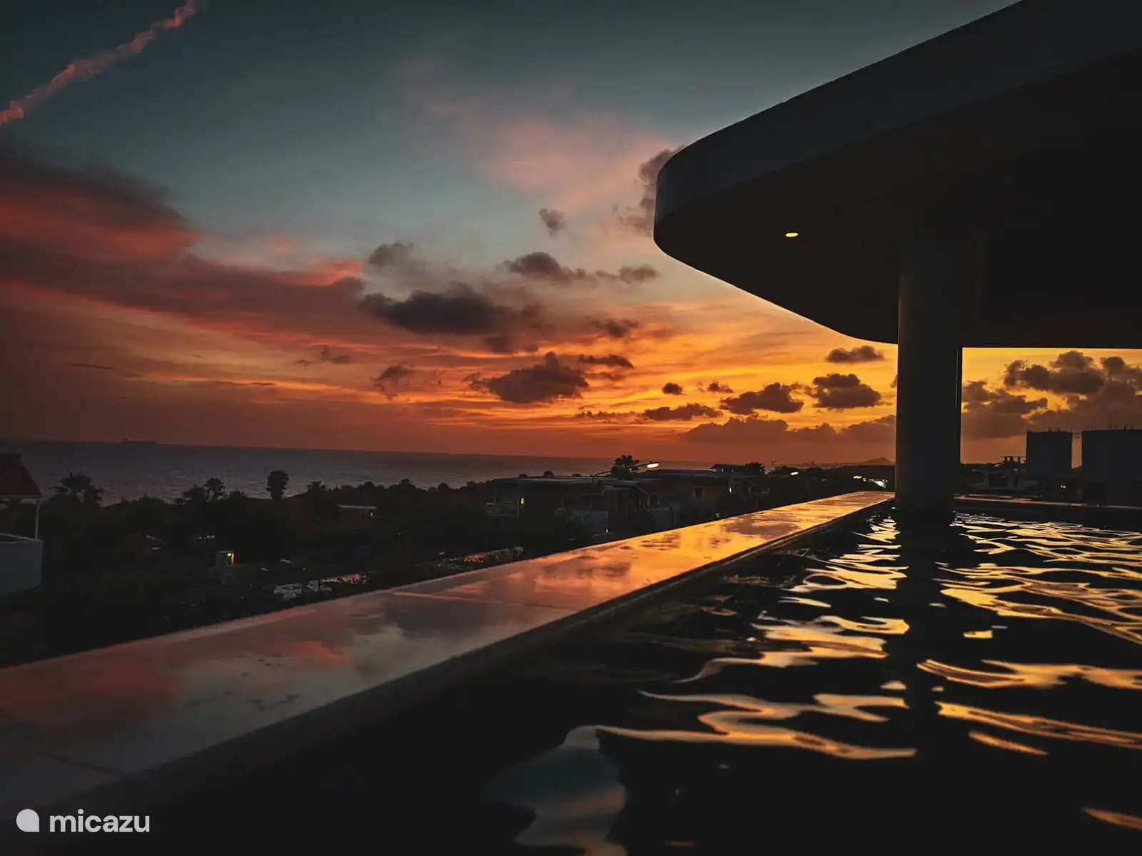 The raised swimming pool (at a height of about 1 meter) has also been carefully designed: you can reach the cooling water via a few steps. Around the outer wall of the pool and the palapa, planters have been placed in two layers. A natural, well-thought-out buffer that fits in with the architectural whole. At the palapa, safety glass has been placed near the large lounge bed, so that you can also relax there while children are around. We do remind our guests to always supervise their little ones and never let them play unattended by the pool or palapa. Because true relaxation starts with peace of mind.