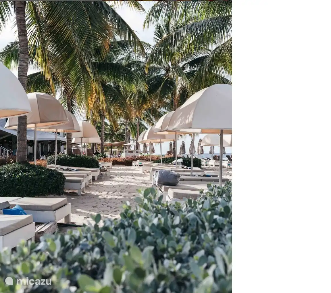 In the garden is the swimming pool, palapa, outdoor shower, BBQ and an outdoor kitchen. There are several (shady) places to lounge and have a drink.