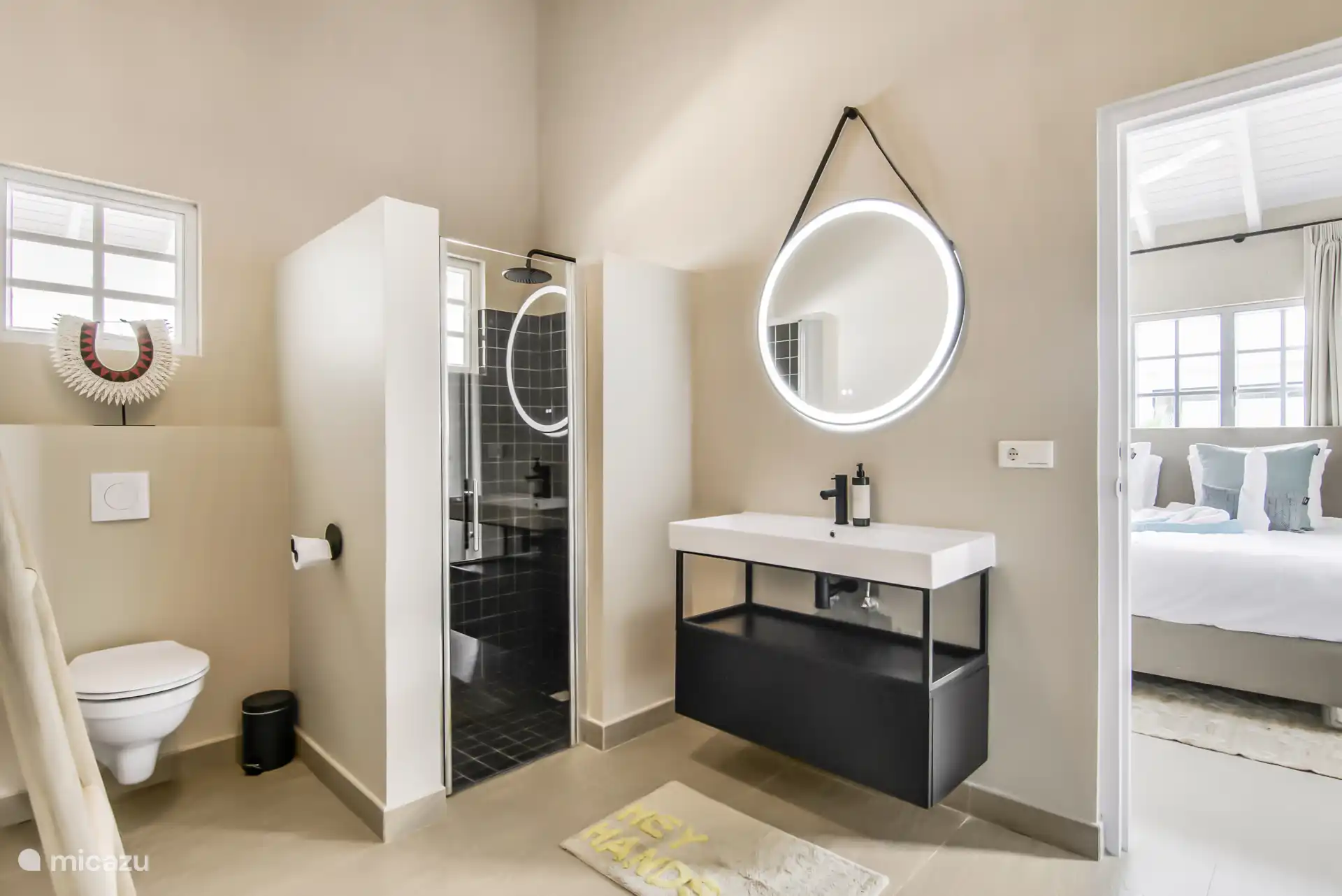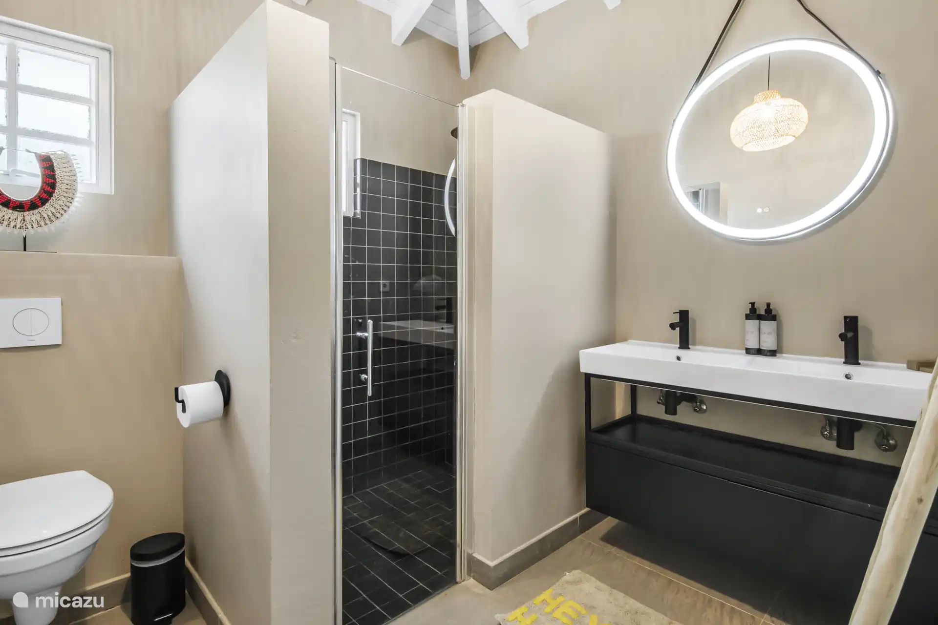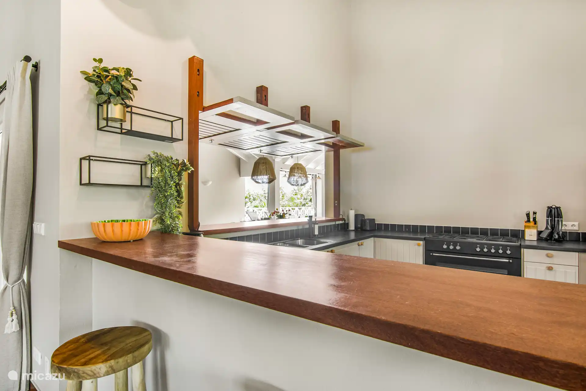 Villa Toucan Curaçao is a stunning luxury villa, located entirely on the ground floor and designed for ultimate comfort and relaxation. Upon entering, you are welcomed by patio doors that lead to a spacious porch, where you can enjoy the breathtaking views of the pool and lush tropical garden. The porch is equipped with a large table, perfect for cosy breakfast and dinner moments, and a beautiful Green Egg BBQ for culinary adventures. Relax in the comfortable lounge set or take a refreshing dip in your own private pool. Behind the pool you will find a palapa, ideal for shady moments and relaxation.