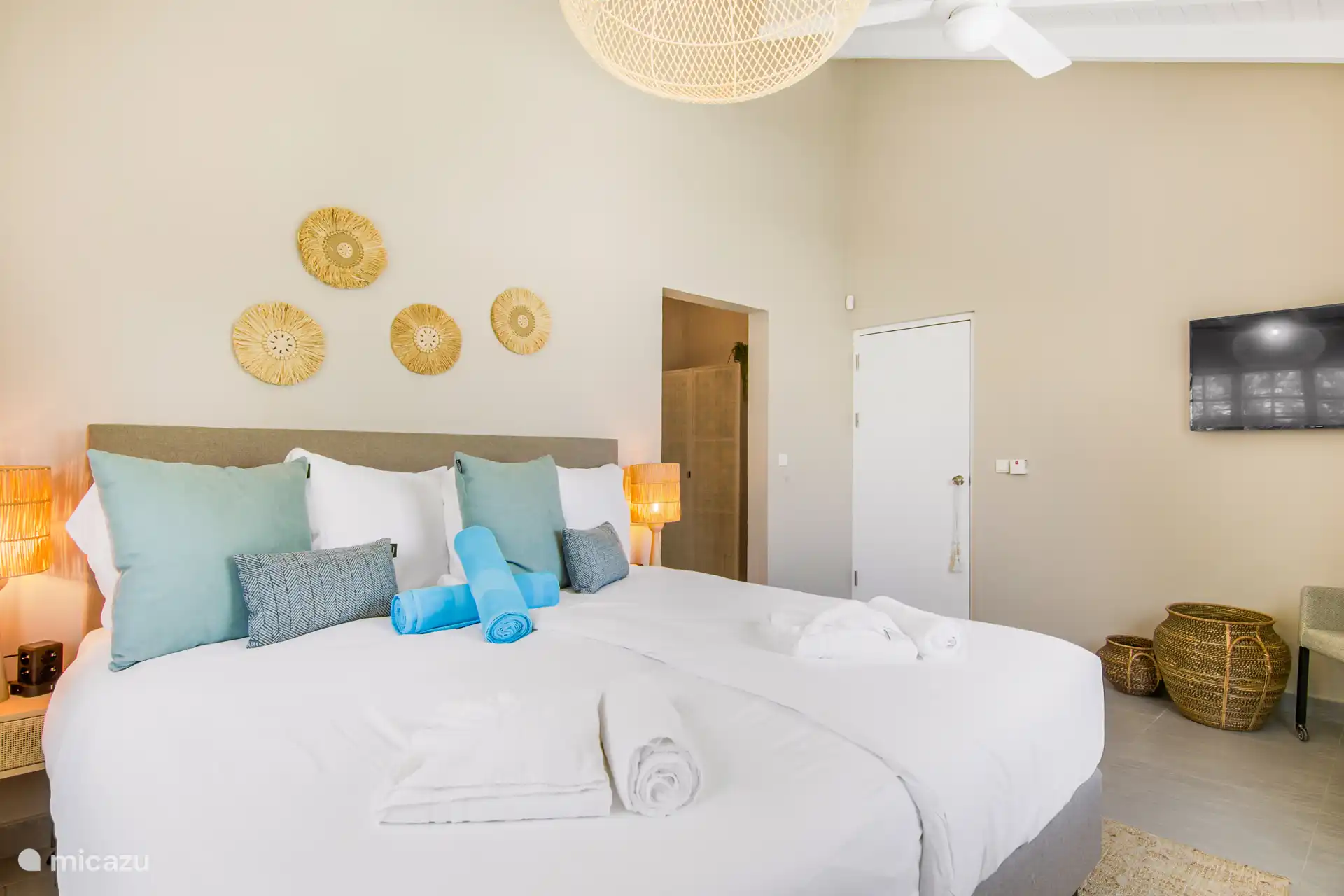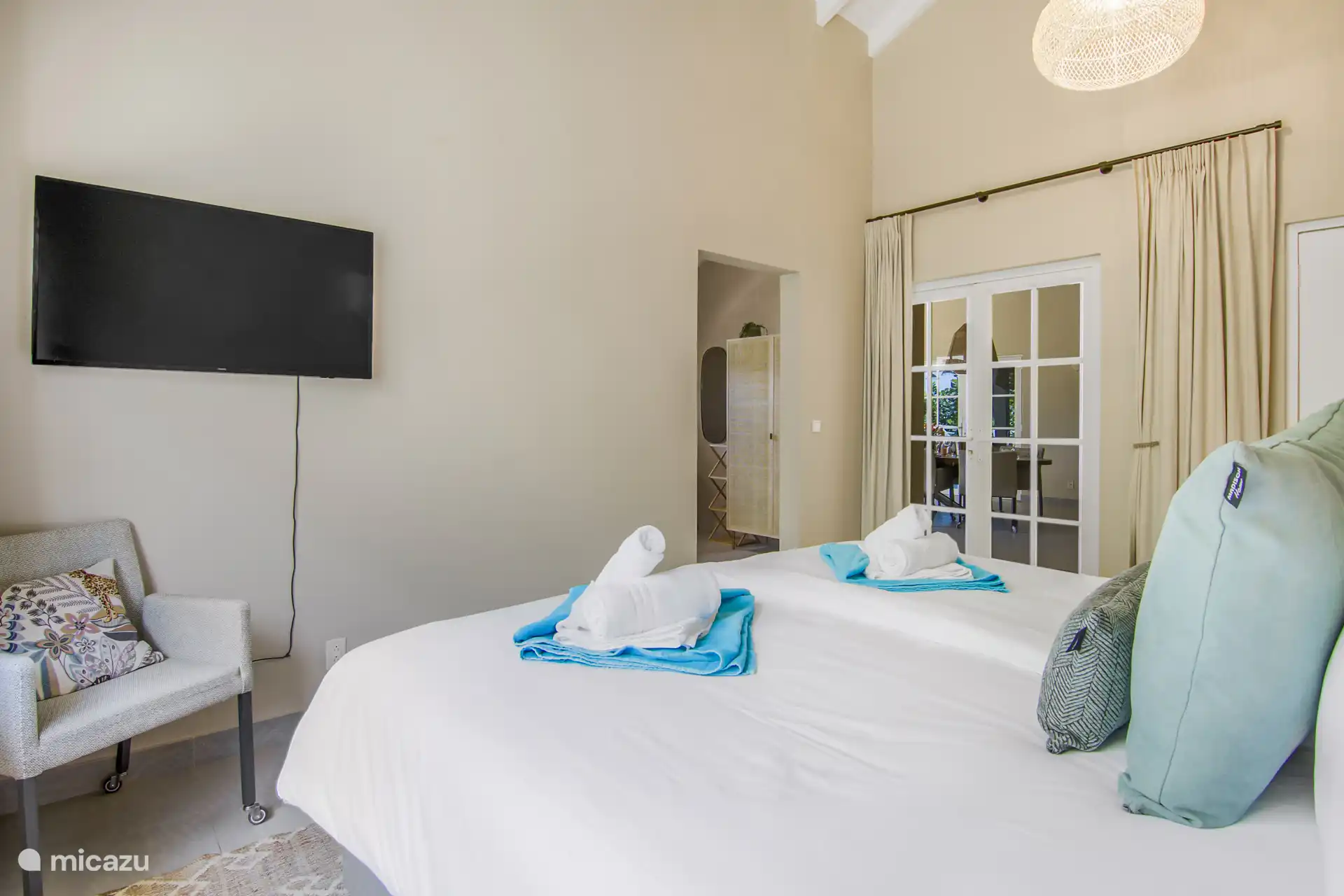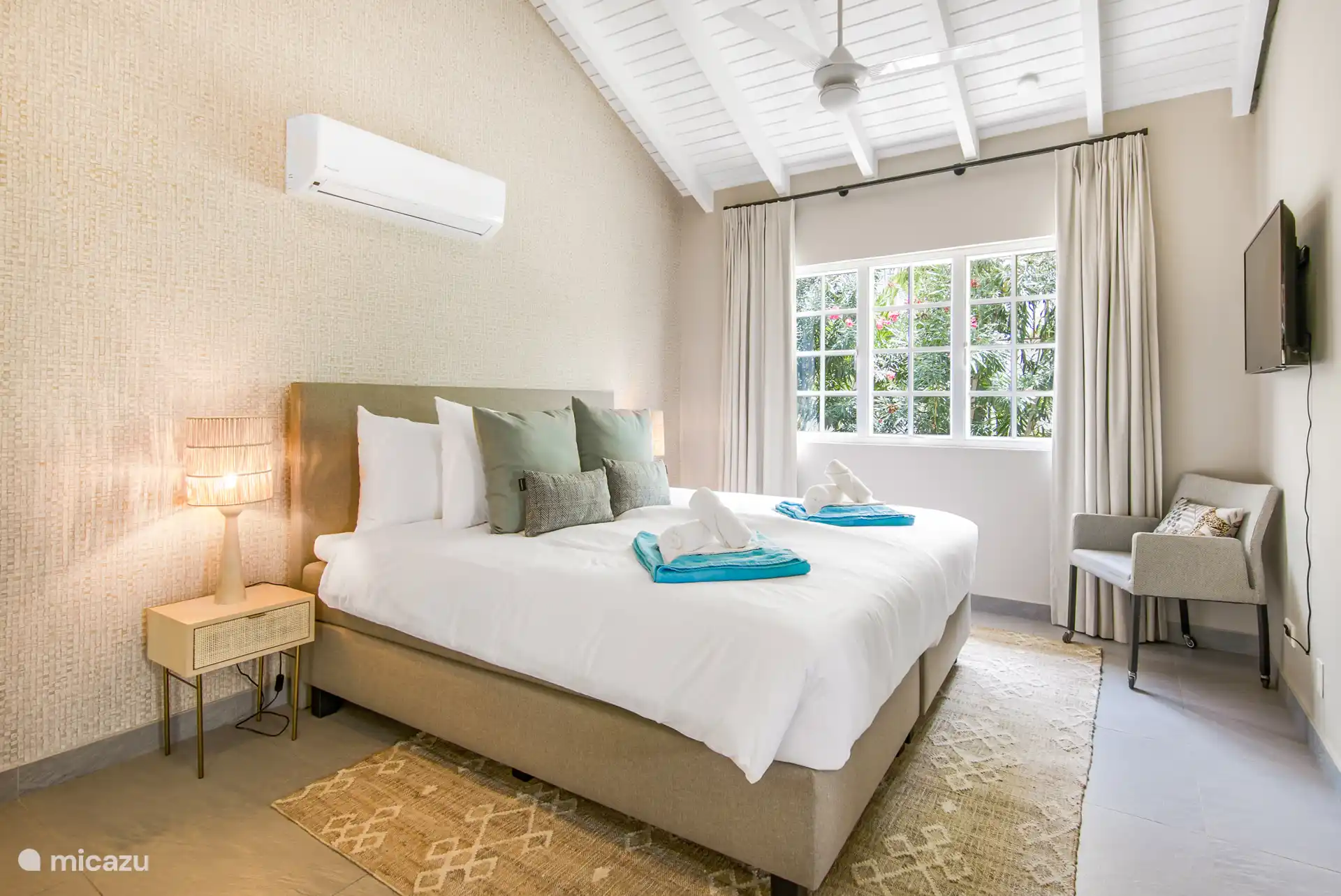 The villa is accessed via an electric gate and a wicket door, with parking for several cars on site. Within walking distance you will find a well-known supermarket with long opening hours, and Jan Thiel Beach offers a range of beach clubs, restaurants and shops. In the vicinity there are plenty of recreational opportunities, from hiking and mountain biking to surfing and diving. The Spanish Water and the famous salt pans are only a 5-minute drive away.