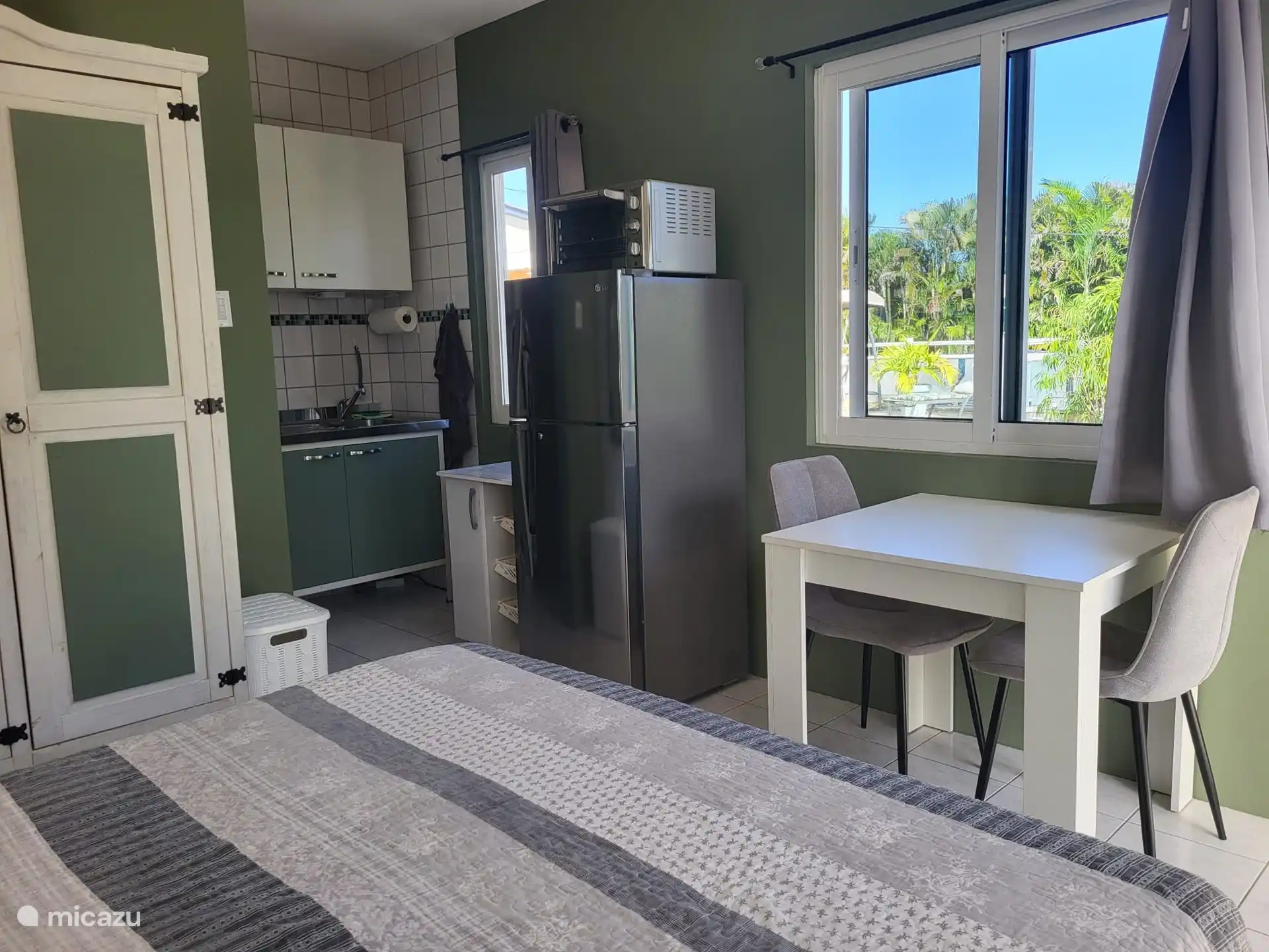 The indicated price is per day. We do not use check-in and check-out times, so the apartment is also available all day on the day of departure. That is so nice if you only fly back in the evening.