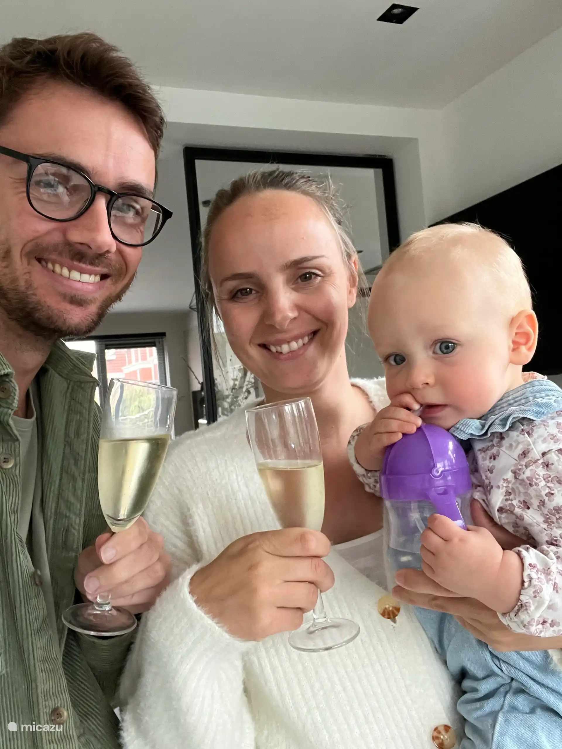 Downstairs you will find a bright, open living area with a comfortable seating area and a sofa bed (140x204 cm) for two additional guests. The U-shaped kitchen with peninsula is fully equipped and ideal for those who like to cook for themselves. There is also a separate guest toilet on the ground floor. For families, a travel cot is available, making the house suitable for up to 6 people and a baby.