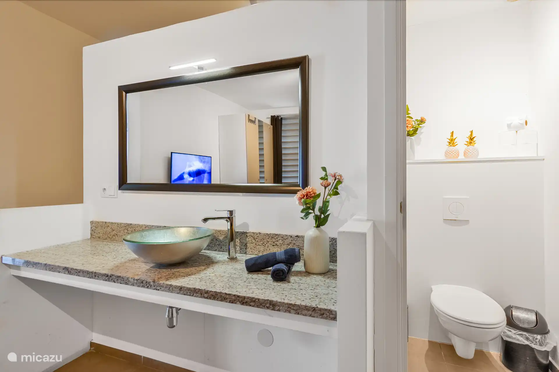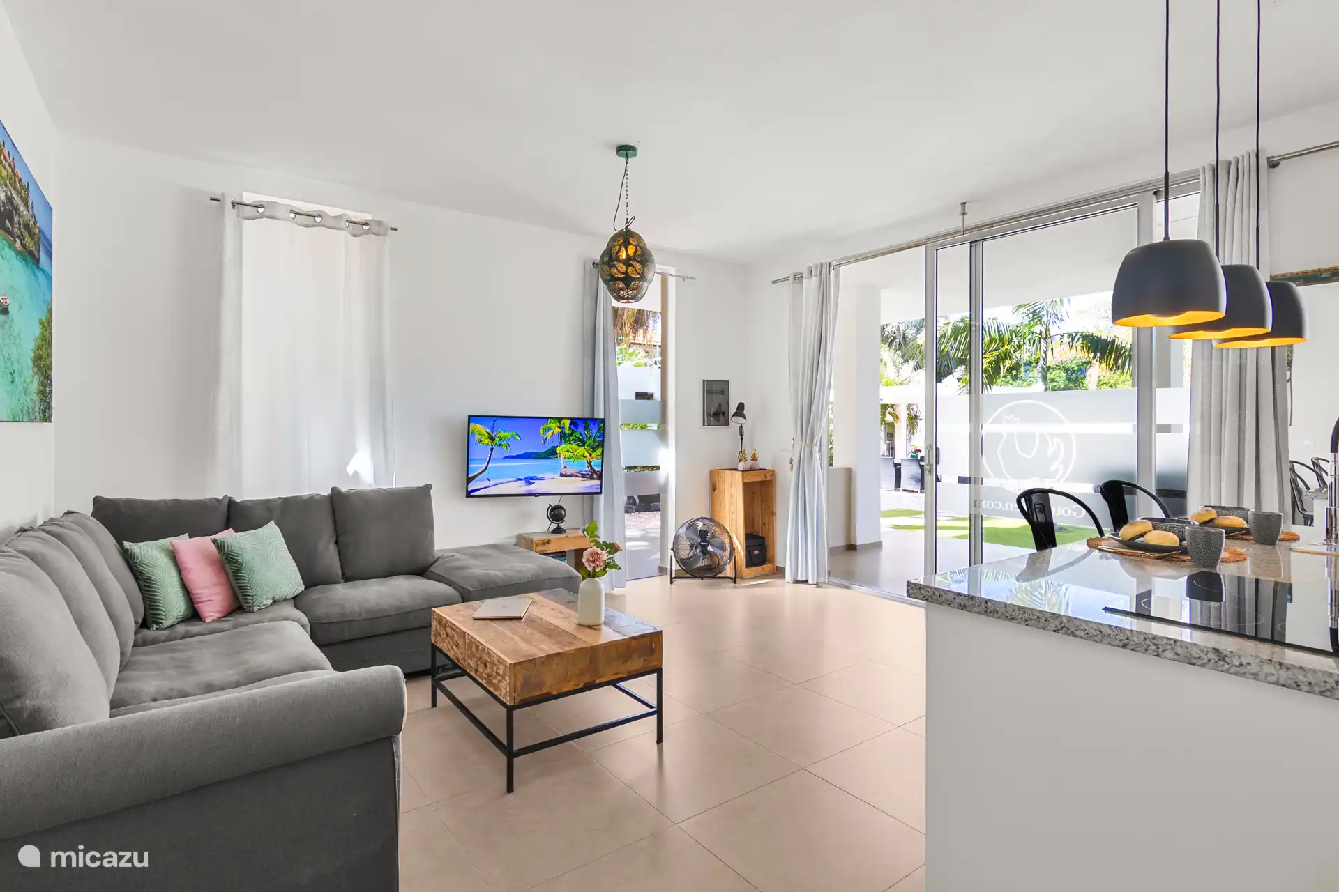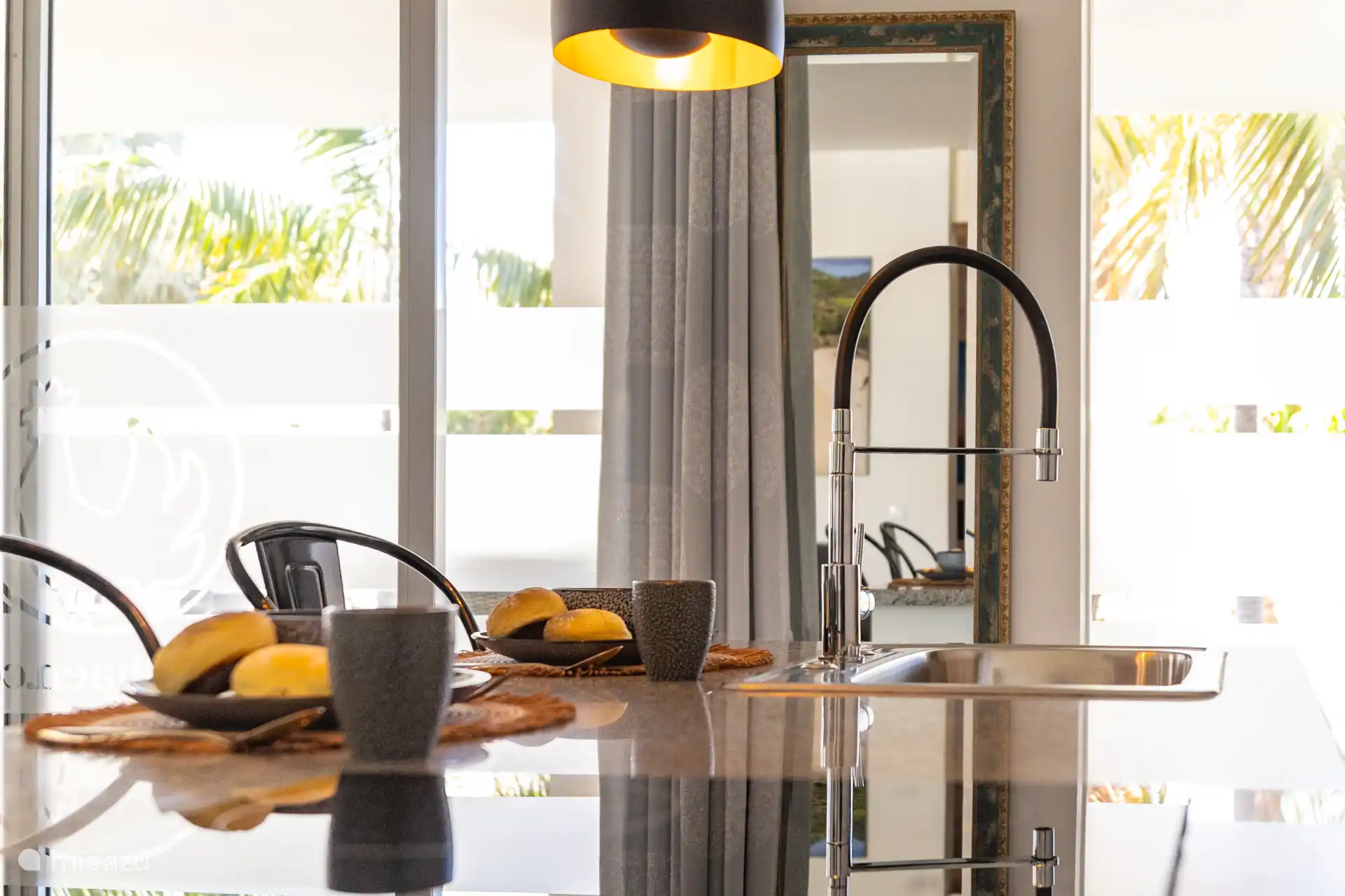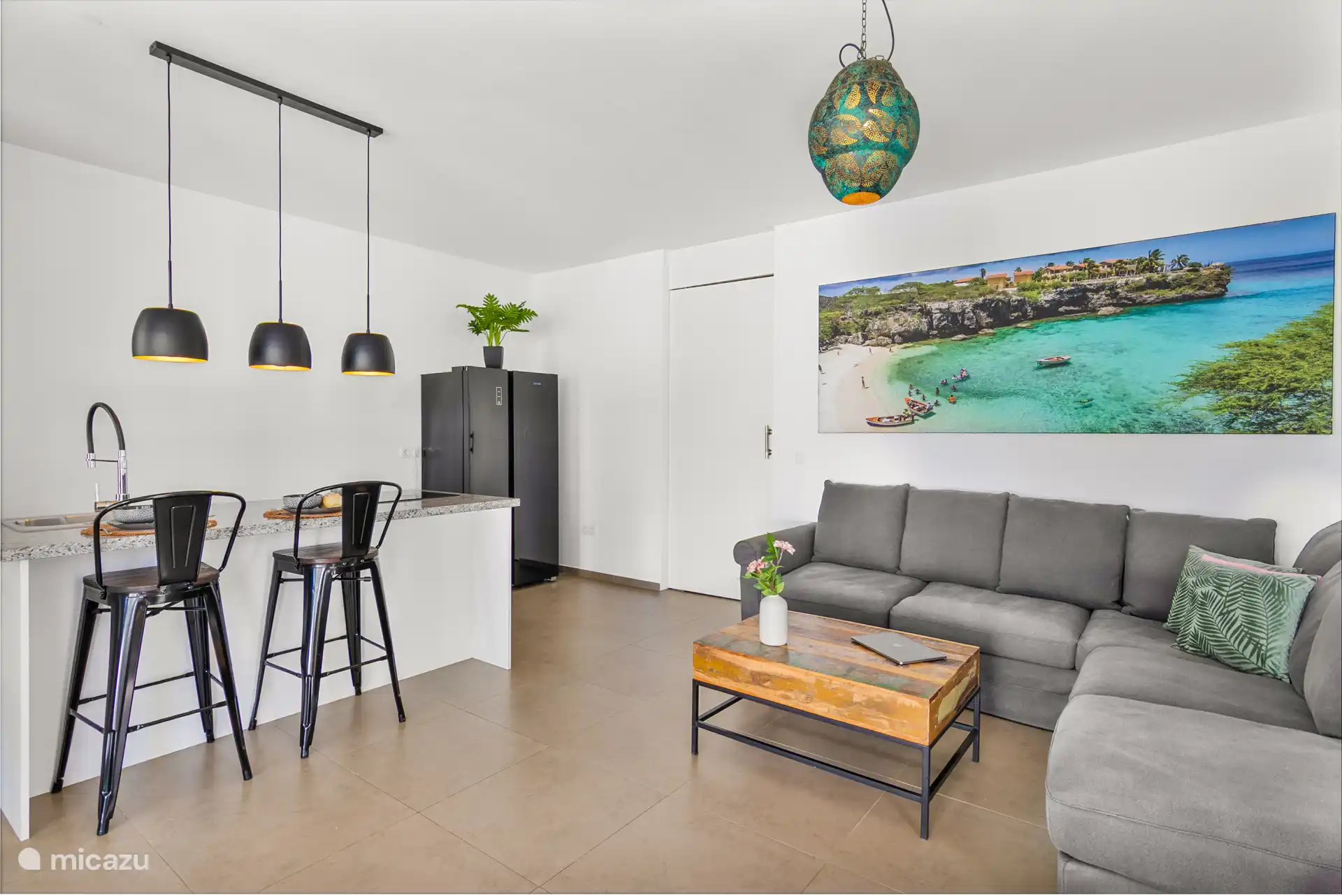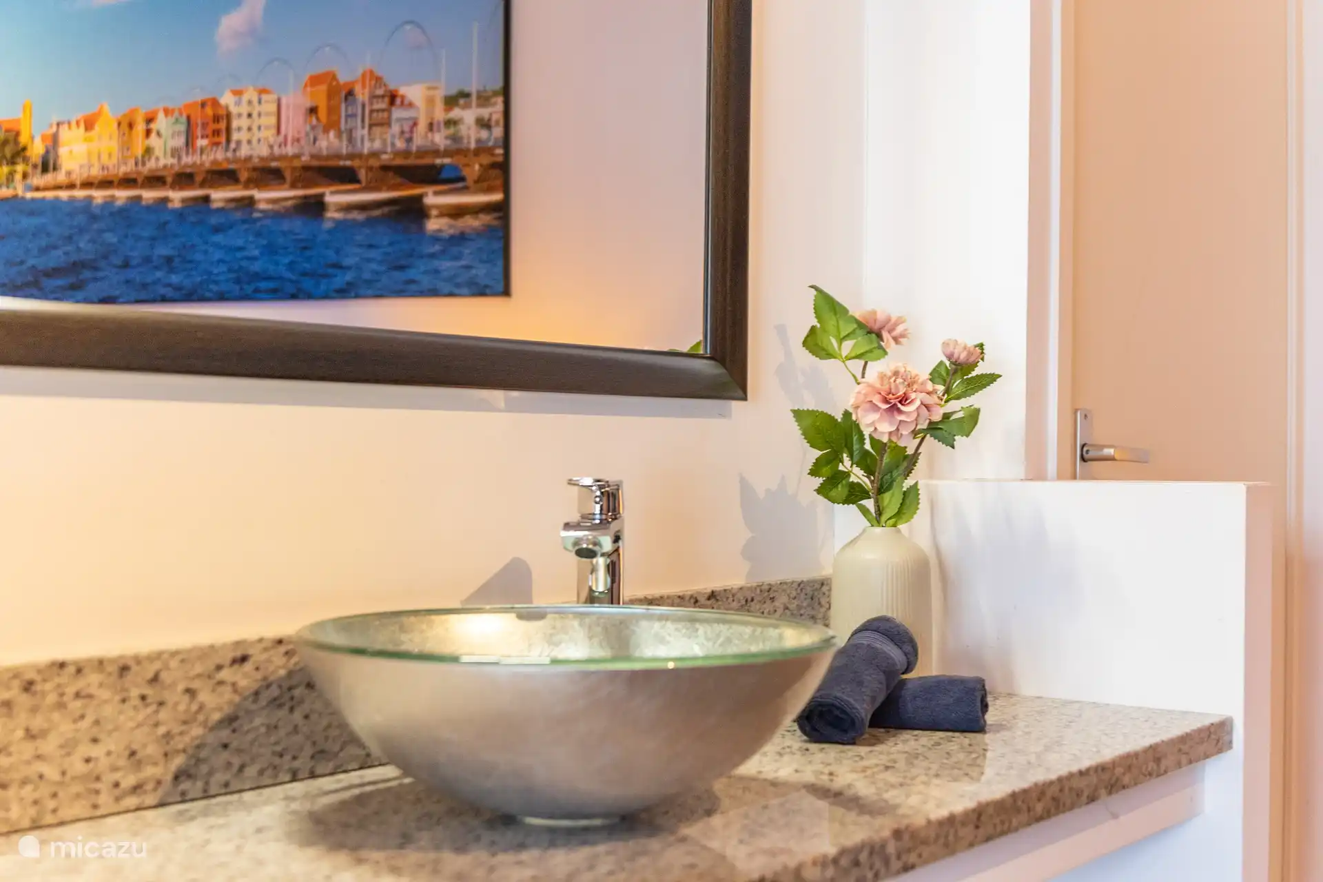 The swimming pool is located in the spacious, landscaped garden, which you share with the 3 apartments. However, privacy is guaranteed on your own terrace. Usually it is very quiet as most guests are on the beach or go to Willemstad.