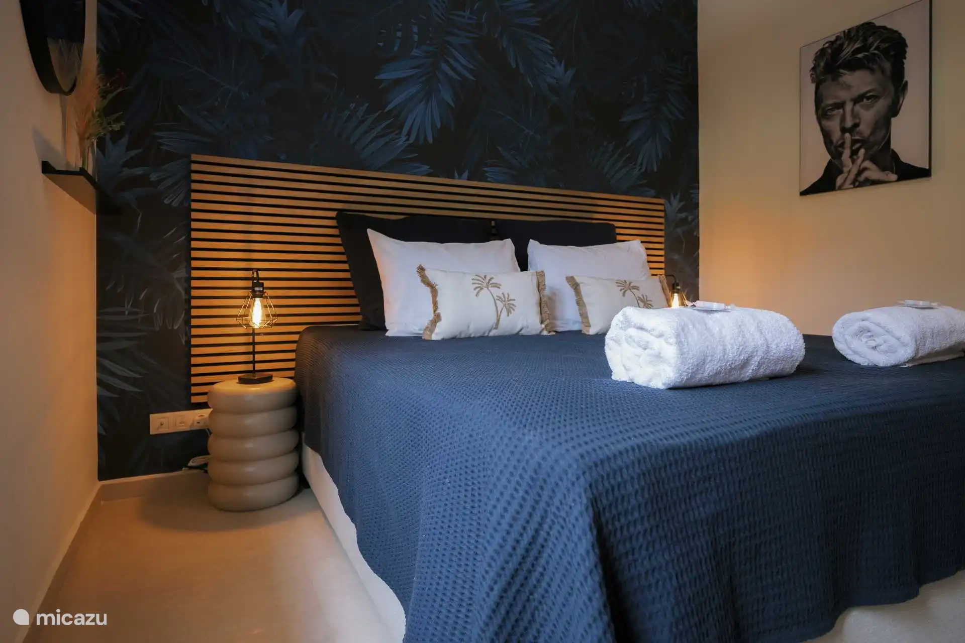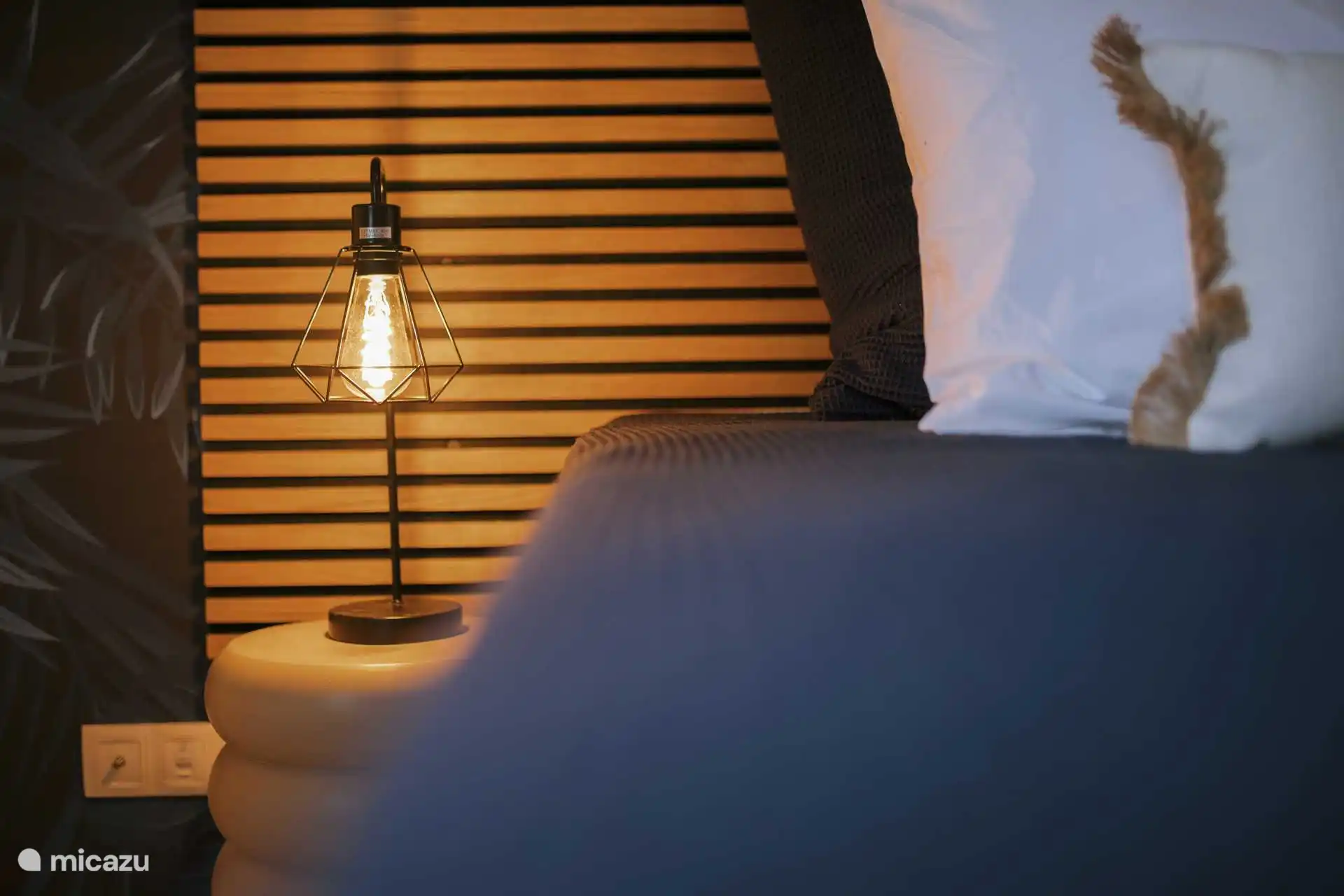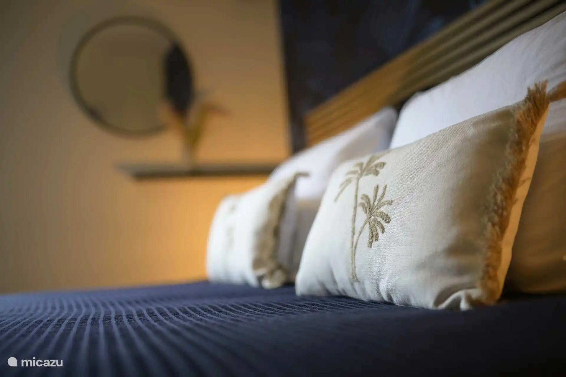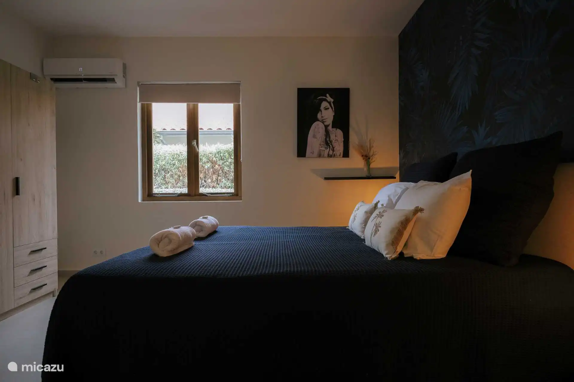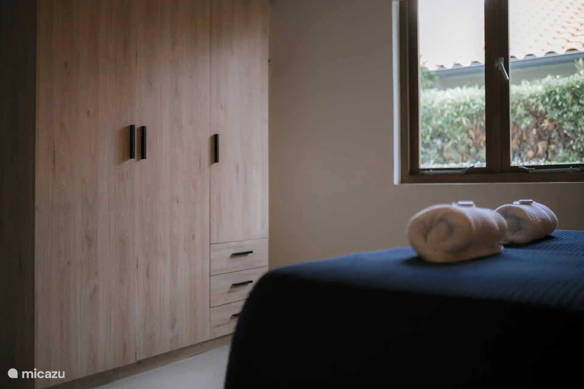 The two stylish bedrooms guarantee a good night's sleep due to the presence of air conditioning and good quality box springs. The luxurious hotel-quality bedding ensures that you can sleep as cool or warm as you want. Bedside tables with reading lamps and a wardrobe with shelf and hanging area complete the room.