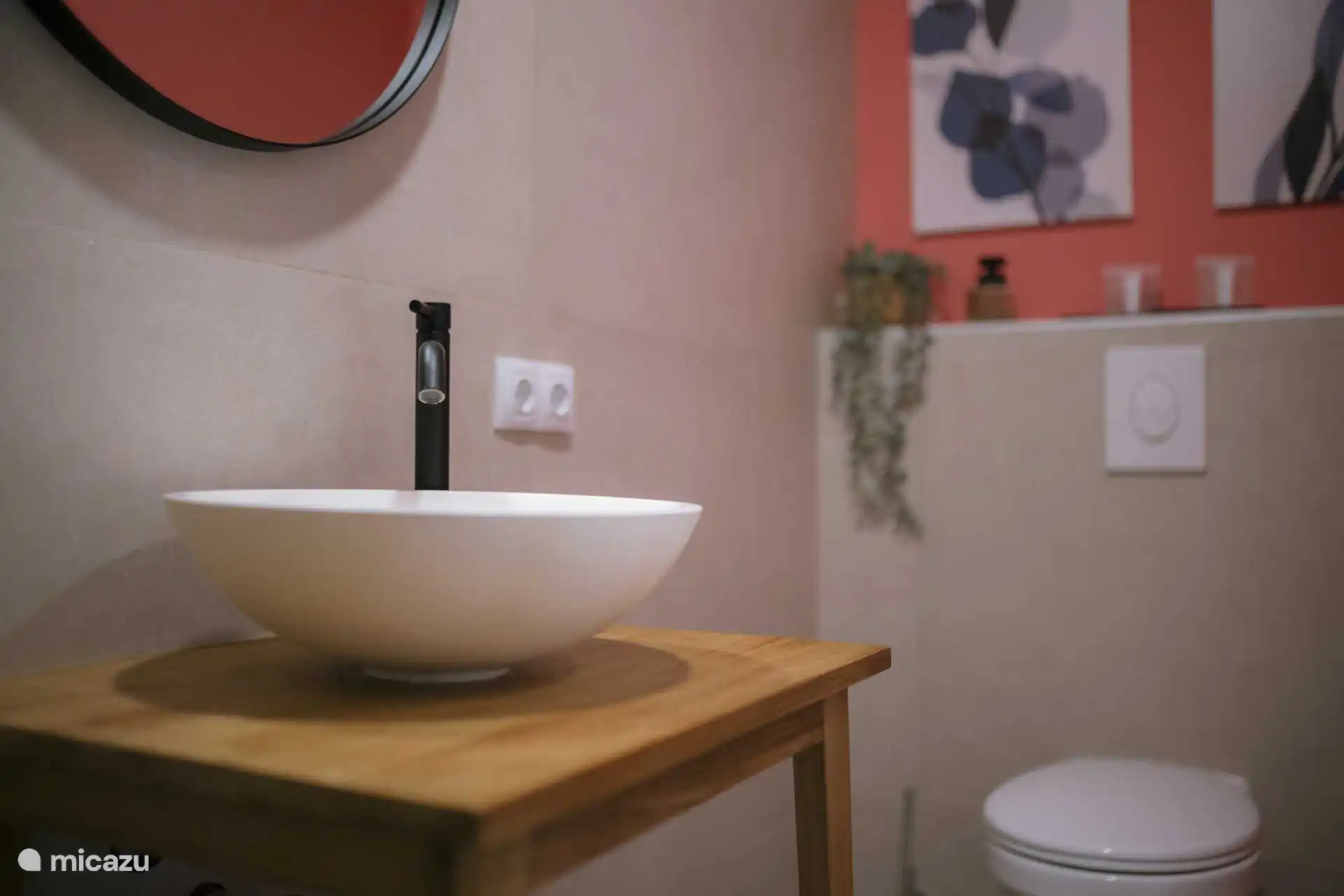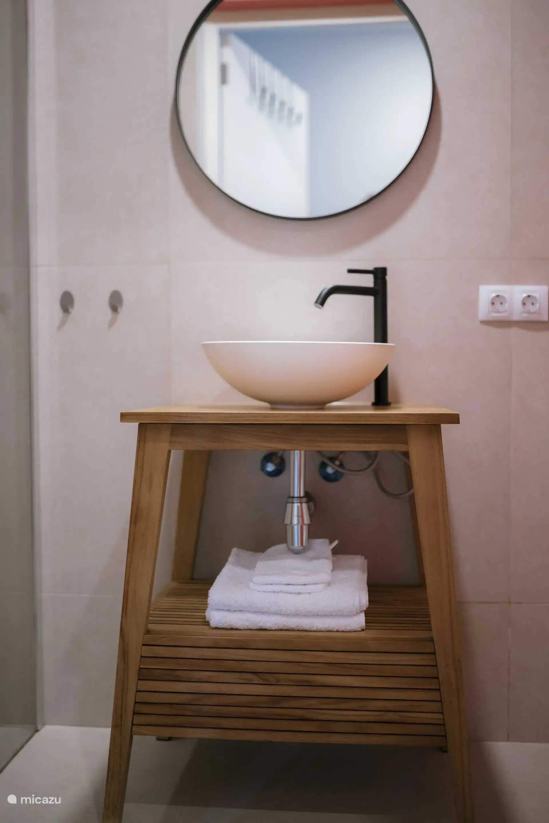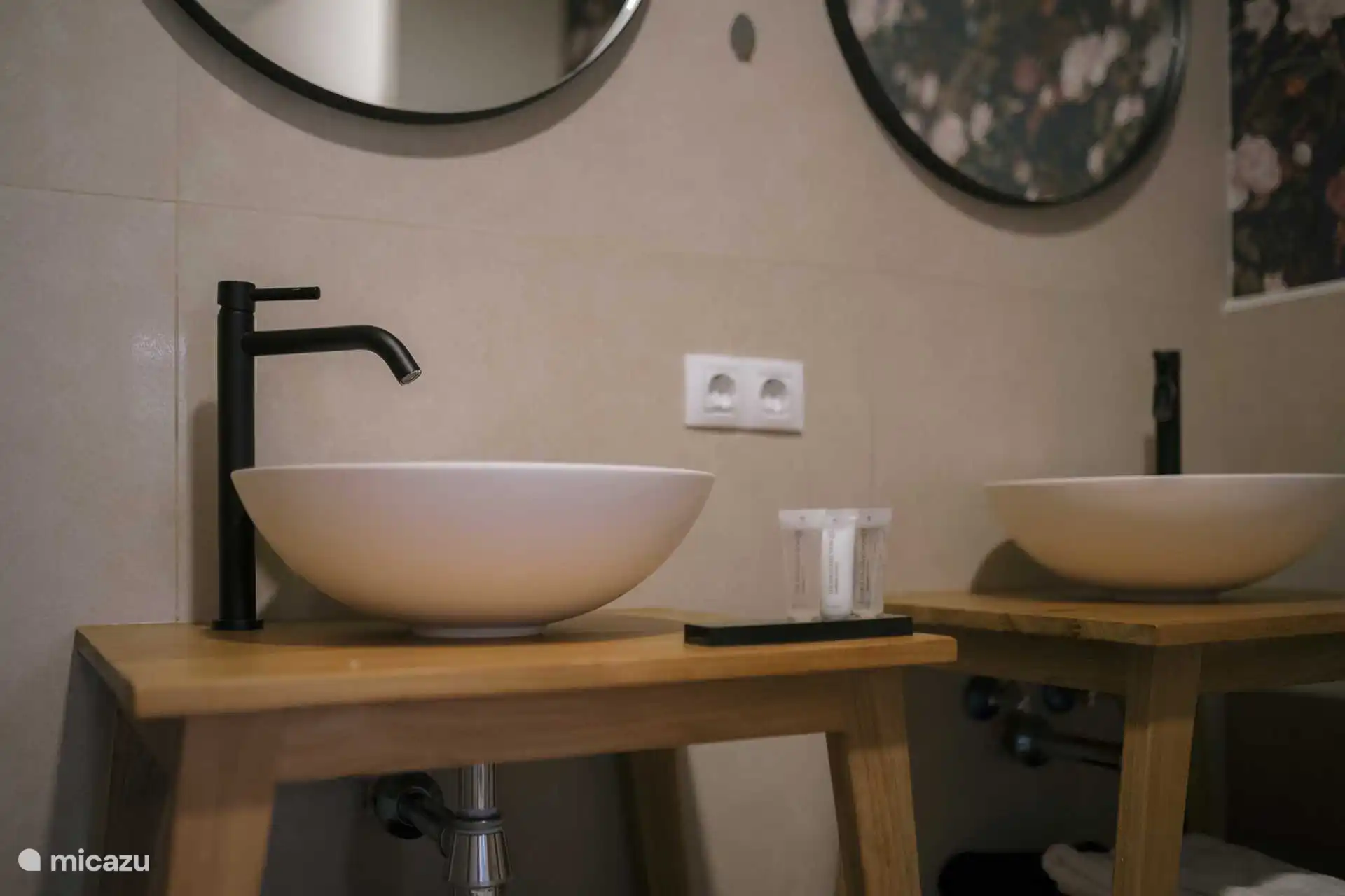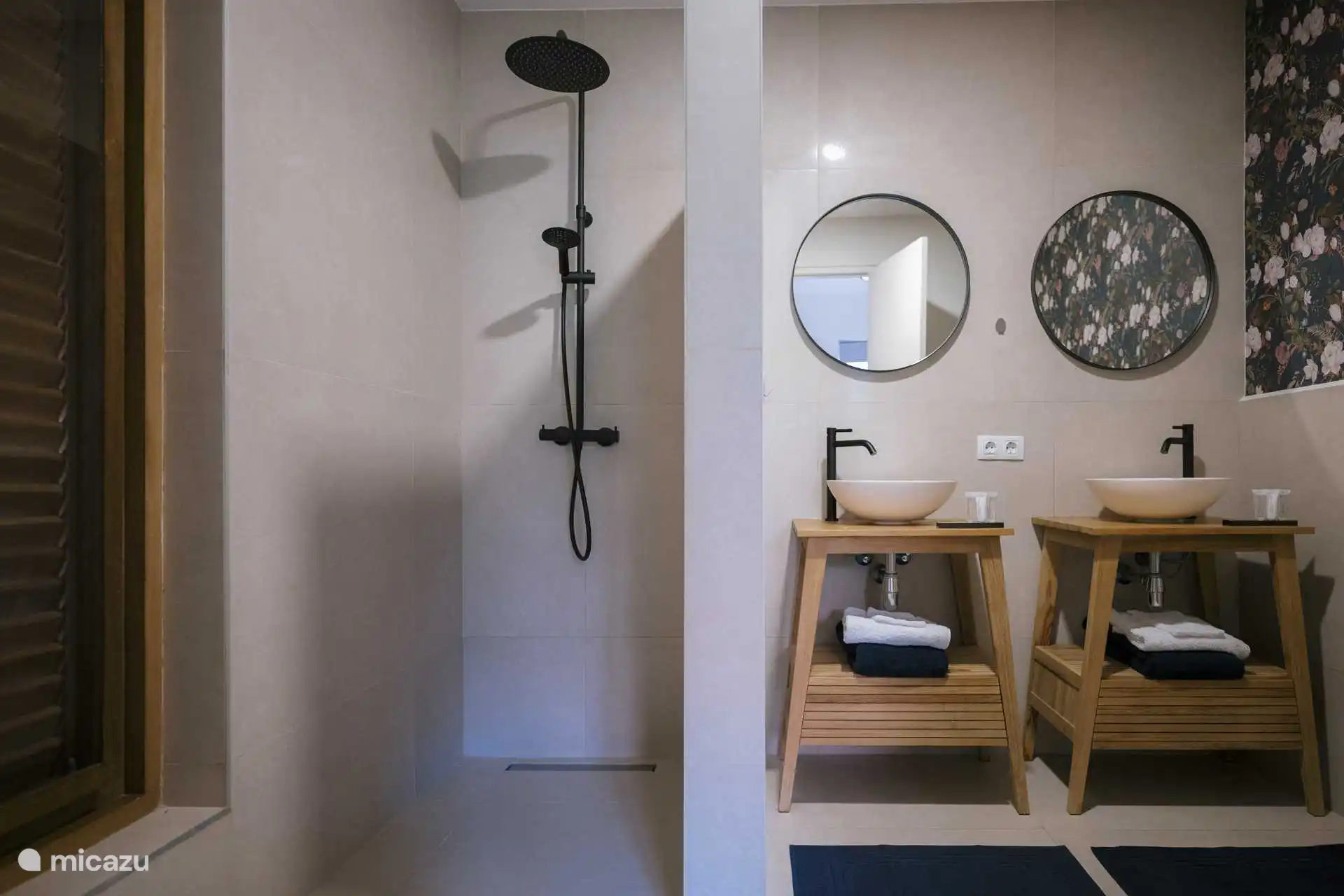 The bungalow has an ensuite bathroom and a guest bathroom. Both modern bathrooms have a spacious walk-in shower, sink(s) and a toilet.