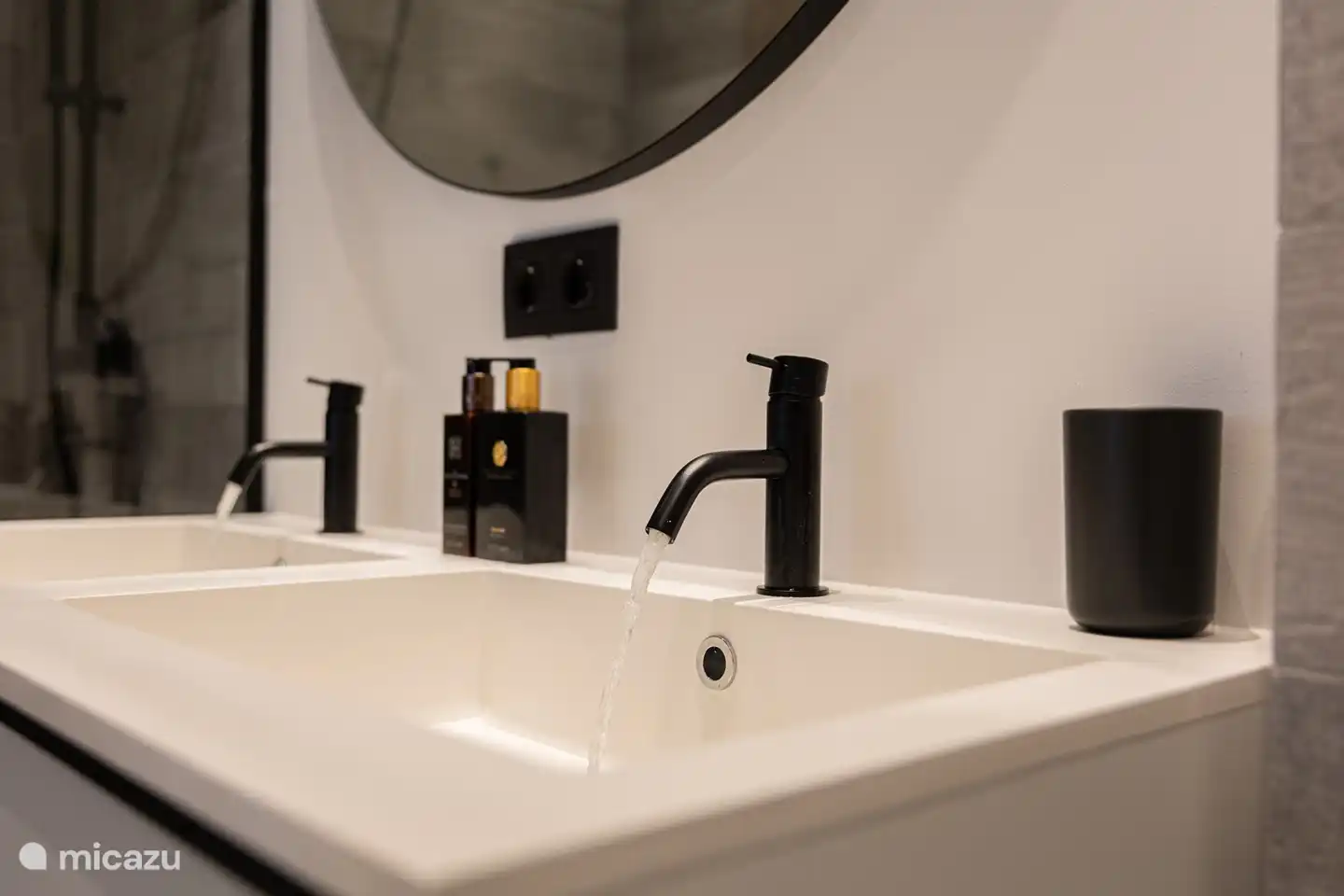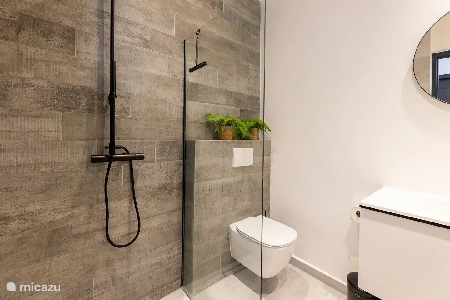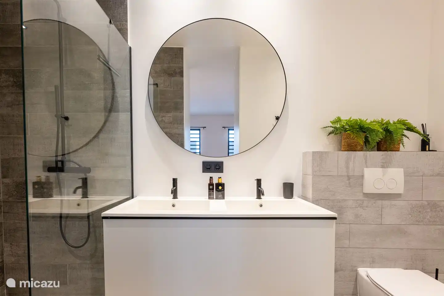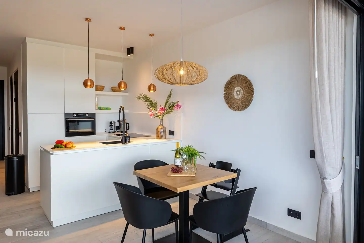The living room with open kitchen is modern and fully equipped. The two air-conditioned bedrooms have very spacious wardrobes and a private bathroom with walk-in shower, sink and toilet. The master bedroom has a double box spring bed (180x200 cm) with a topper. The 2nd bedroom has 2 single beds (2x 80x200 cm) with 2 toppers.