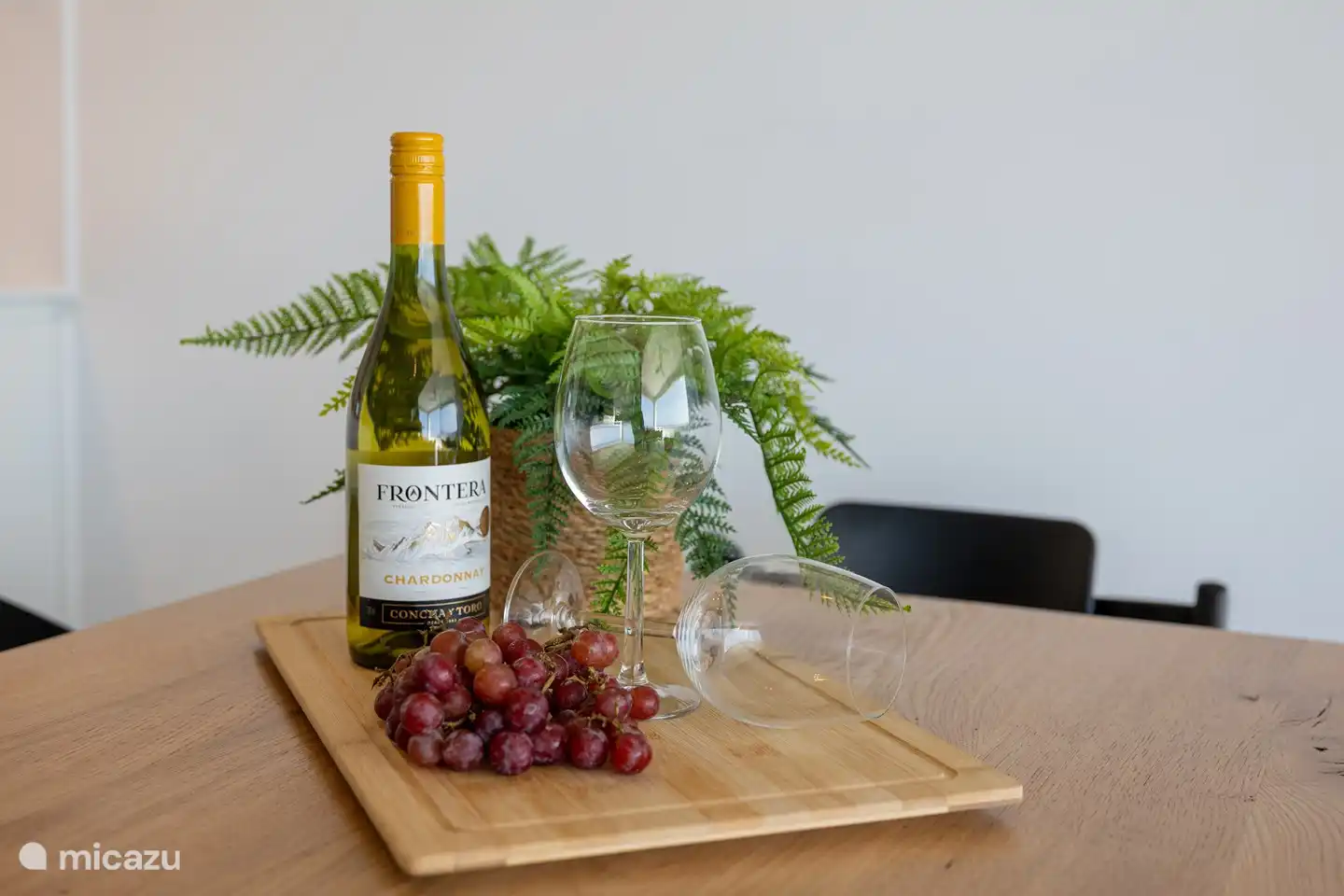 The kitchen is equipped with an induction hob, dishwasher, refrigerator with freezer, microwave/oven, kettle, toaster and a Nespresso machine.