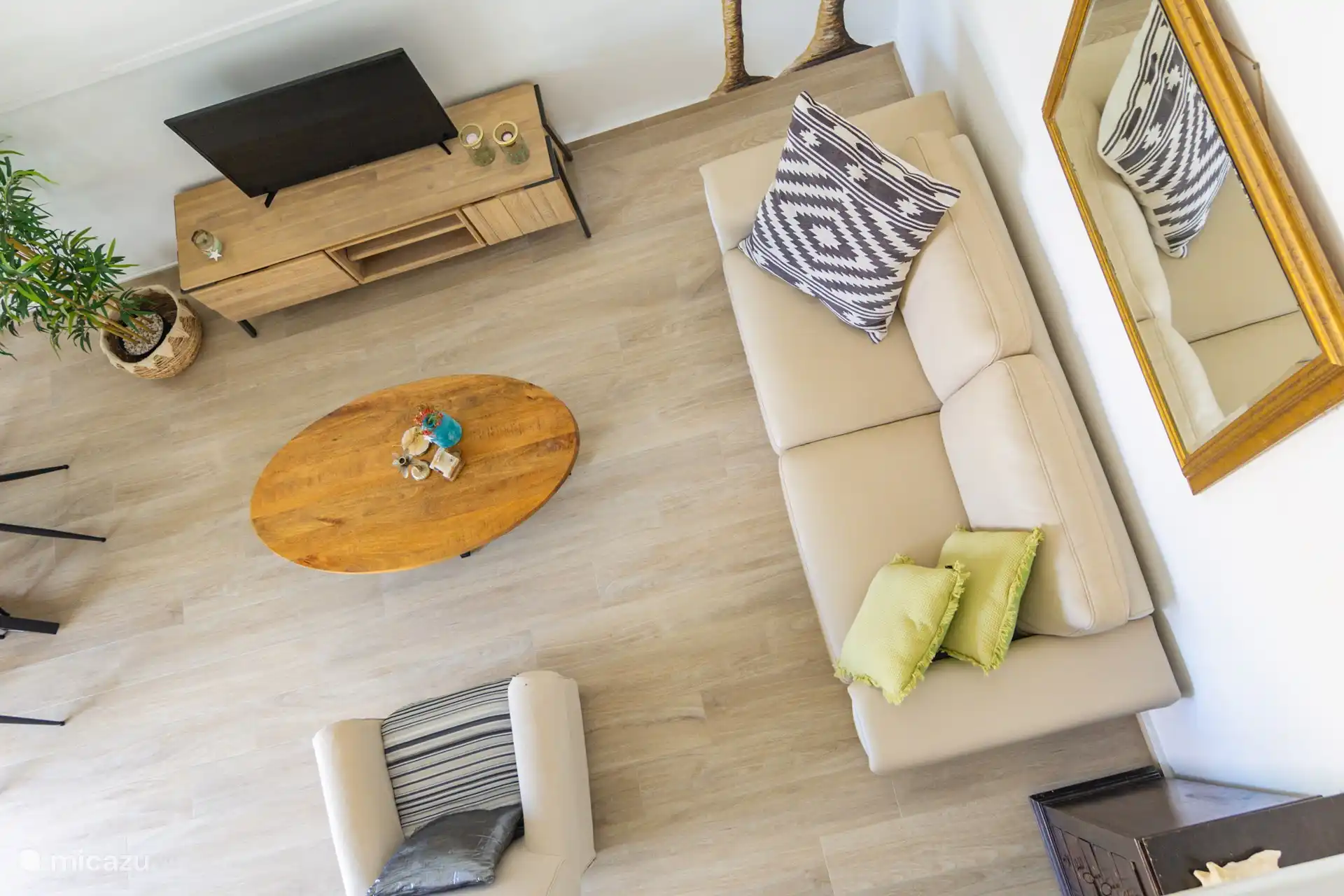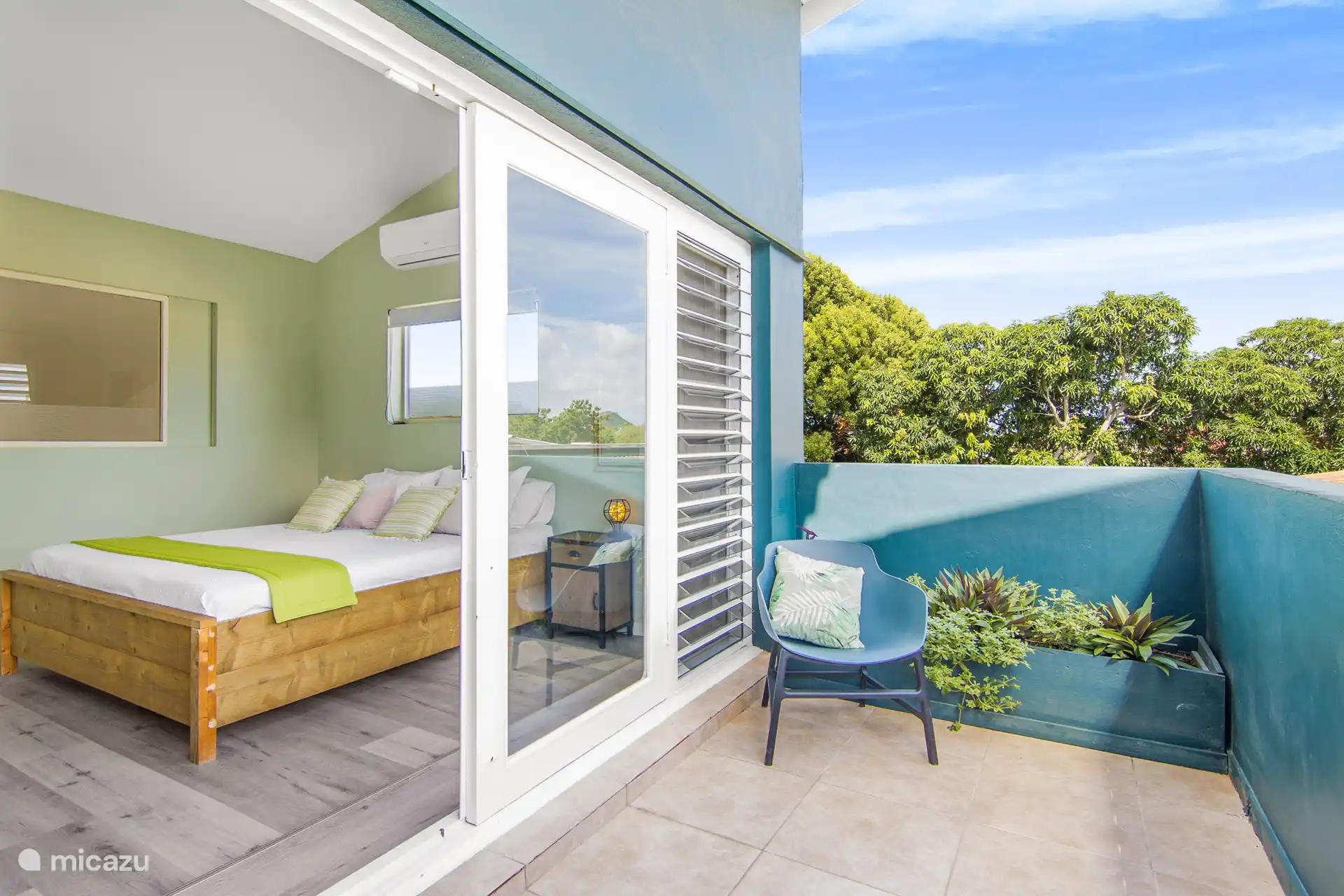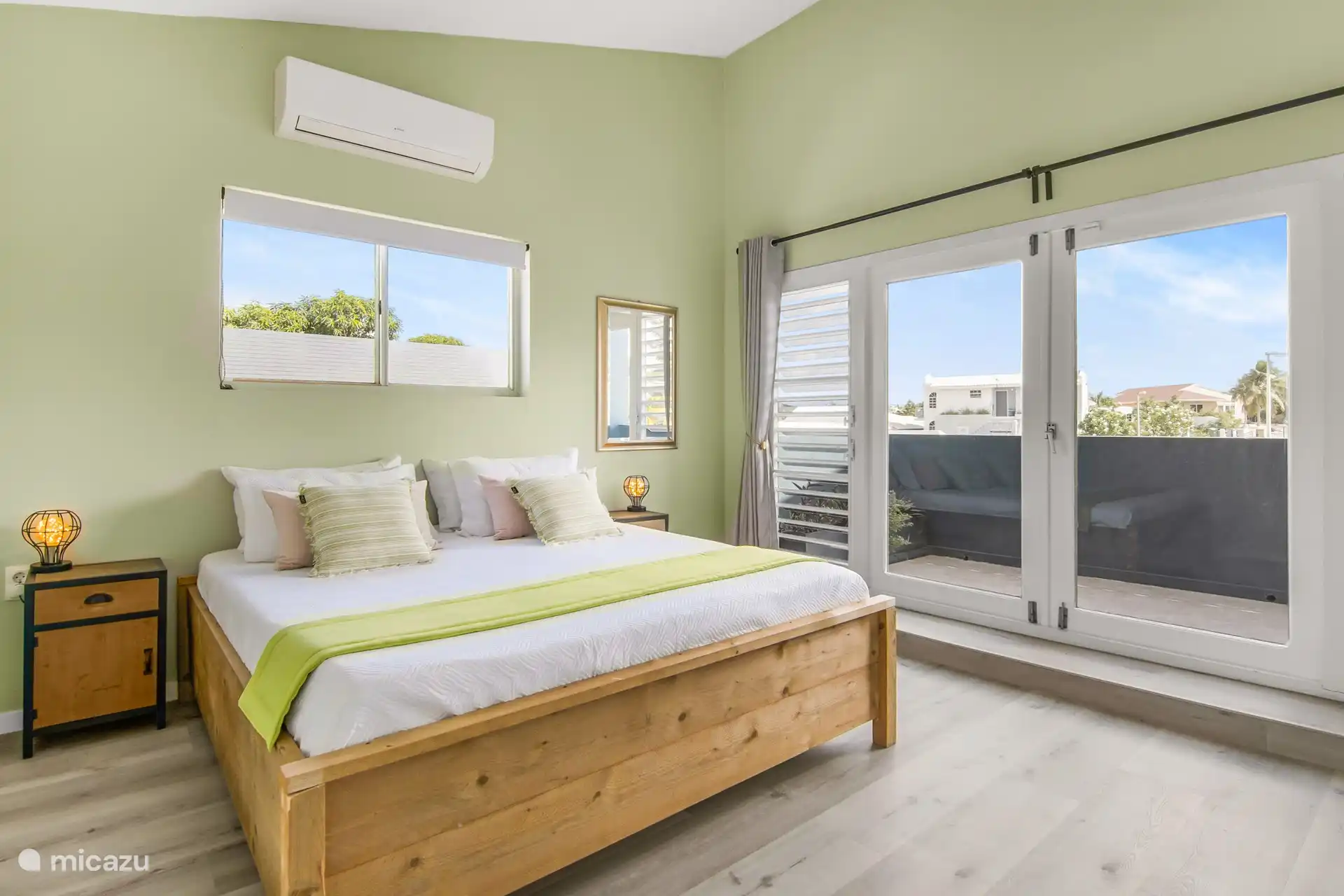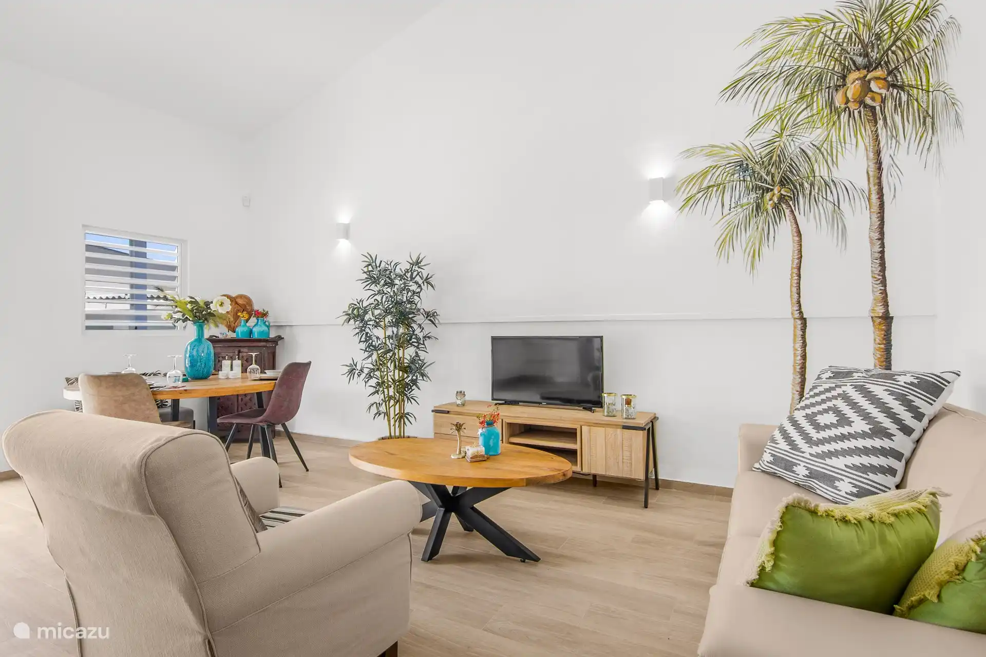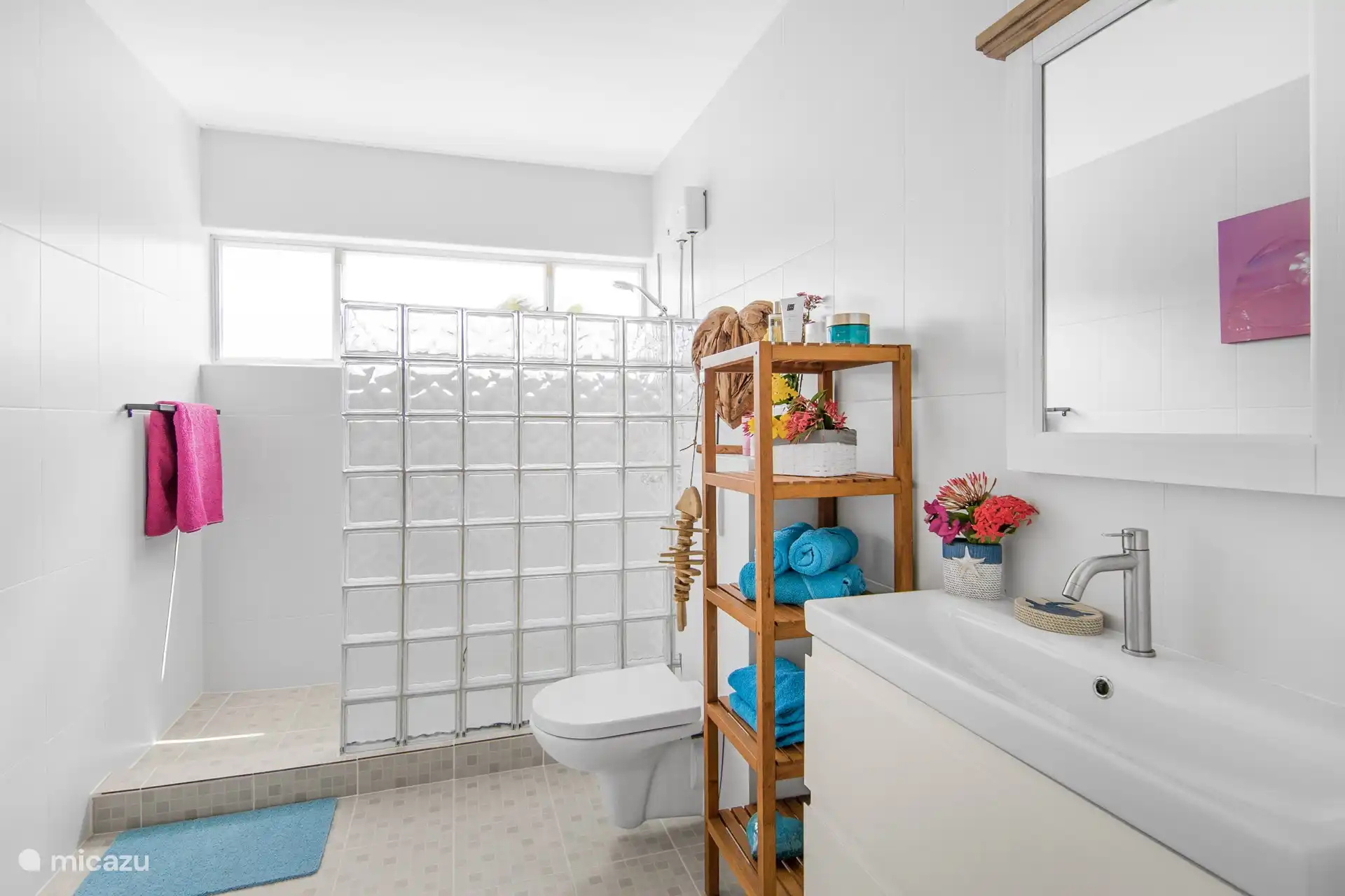 Apartment Poko Poko has 2 bedrooms, both with a king size bed. Both rooms also have a spacious balcony, where there is always a nice breeze. In the bathroom you will find a shower with hot water, which is certainly not common everywhere on Curaçao, a sink and a toilet. The living room has patio doors to the garden and pool. In the living room there is a cozy sitting area, a smart flat screen TV (more than 50 channels), a dining table and a leather sofa.