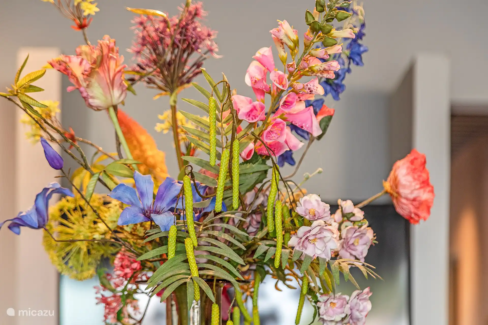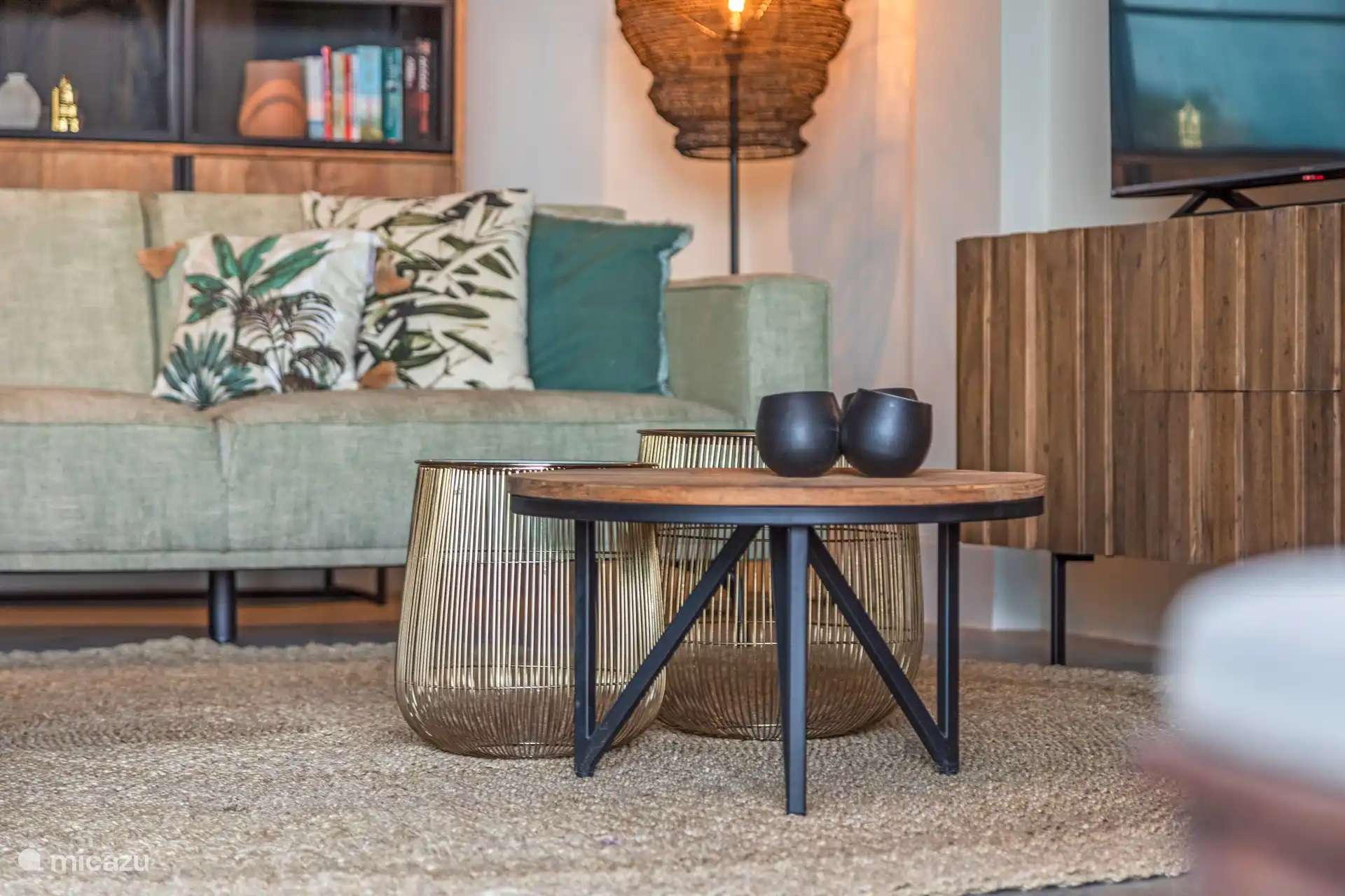 The spacious bathroom has a walk-in rain shower, double washbasins, hairdryer, hand soap and facial towels. For a wonderful day at the beach, the apartment includes: a spacious beach bag, a cool box with cooling elements and hammam beach towels.