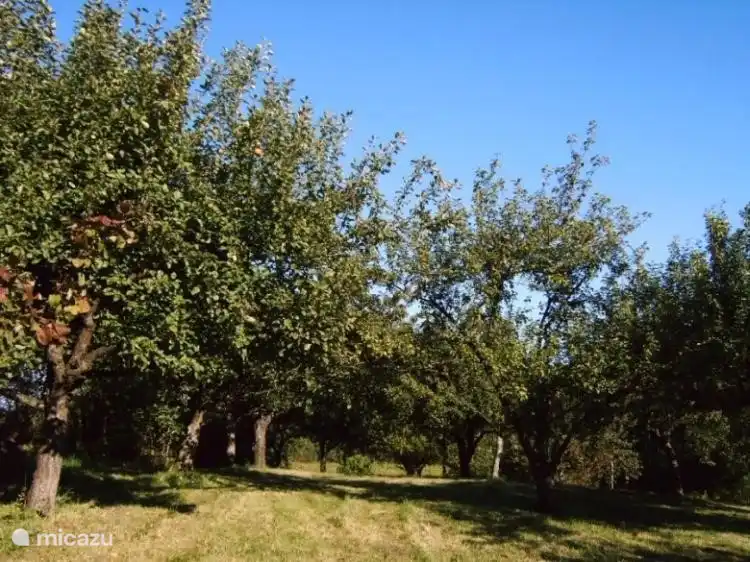The house has a large garden (4300 m2). The garden is fenced and offers privacy. The orchard provides a special atmosphere. Besides, there are apple walnut trees (good against mosquitoes), hazelnut trees, moraines, plums and fruit bushes. A portion of the garden is flat and free of trees, so suitable for ball games.