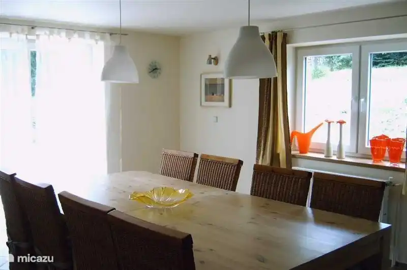 There is a separate dining room with a big table with ease 8 or more people can join. From the dining room you have access to the terrace. In the dining room you will find a small library.
