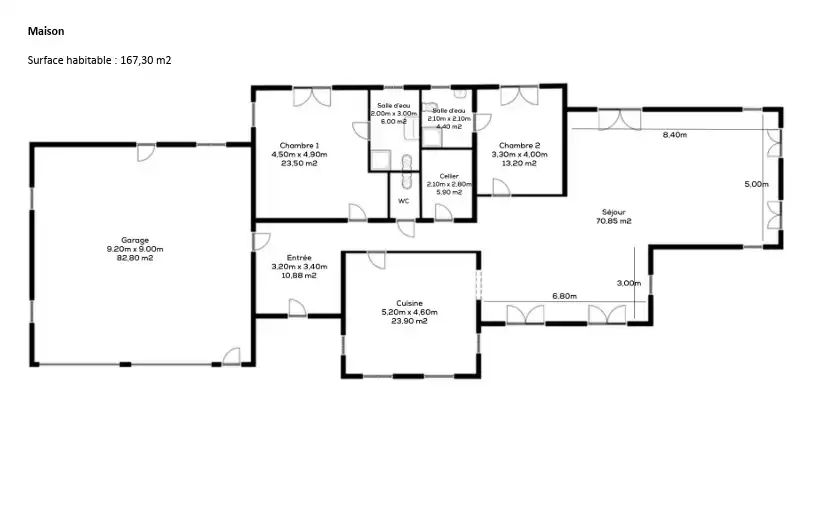 The house currently has two bedrooms (23.50m2 and 13.20m2), both with an ensuite bathroom. Furthermore, a pantry and a separate toilet.