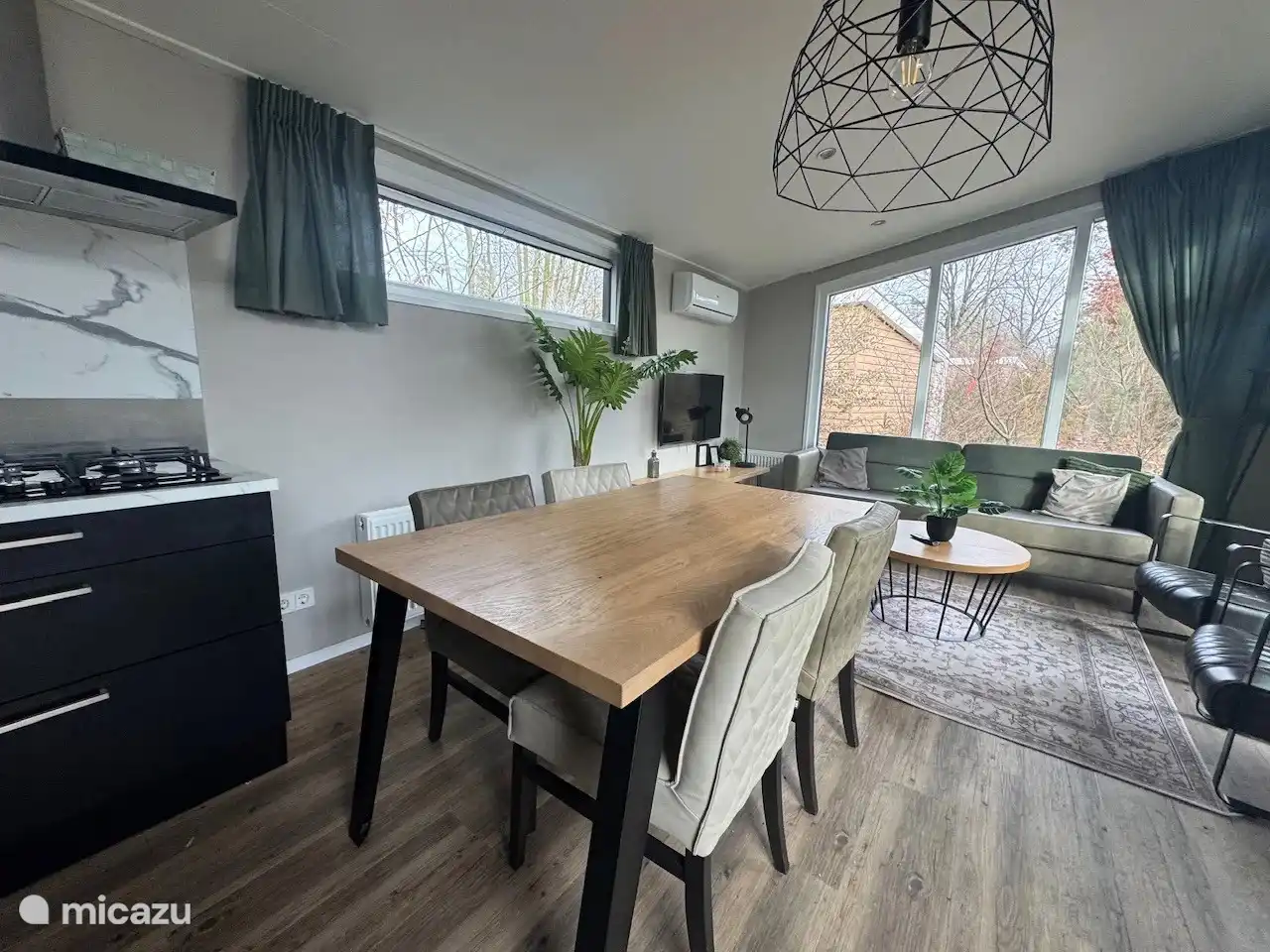 Thanks to the practical layout, comfortable bedrooms and luxurious bathroom, the house is ideal for families or small groups. Large windows provide plenty of light and a direct connection to the green surroundings.