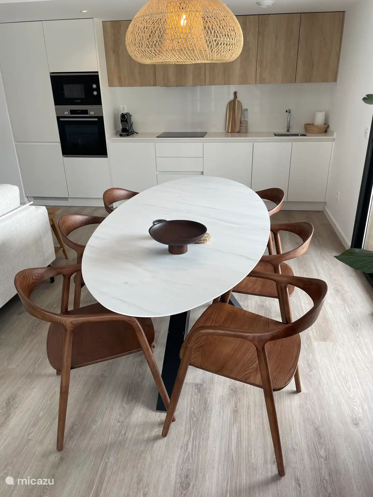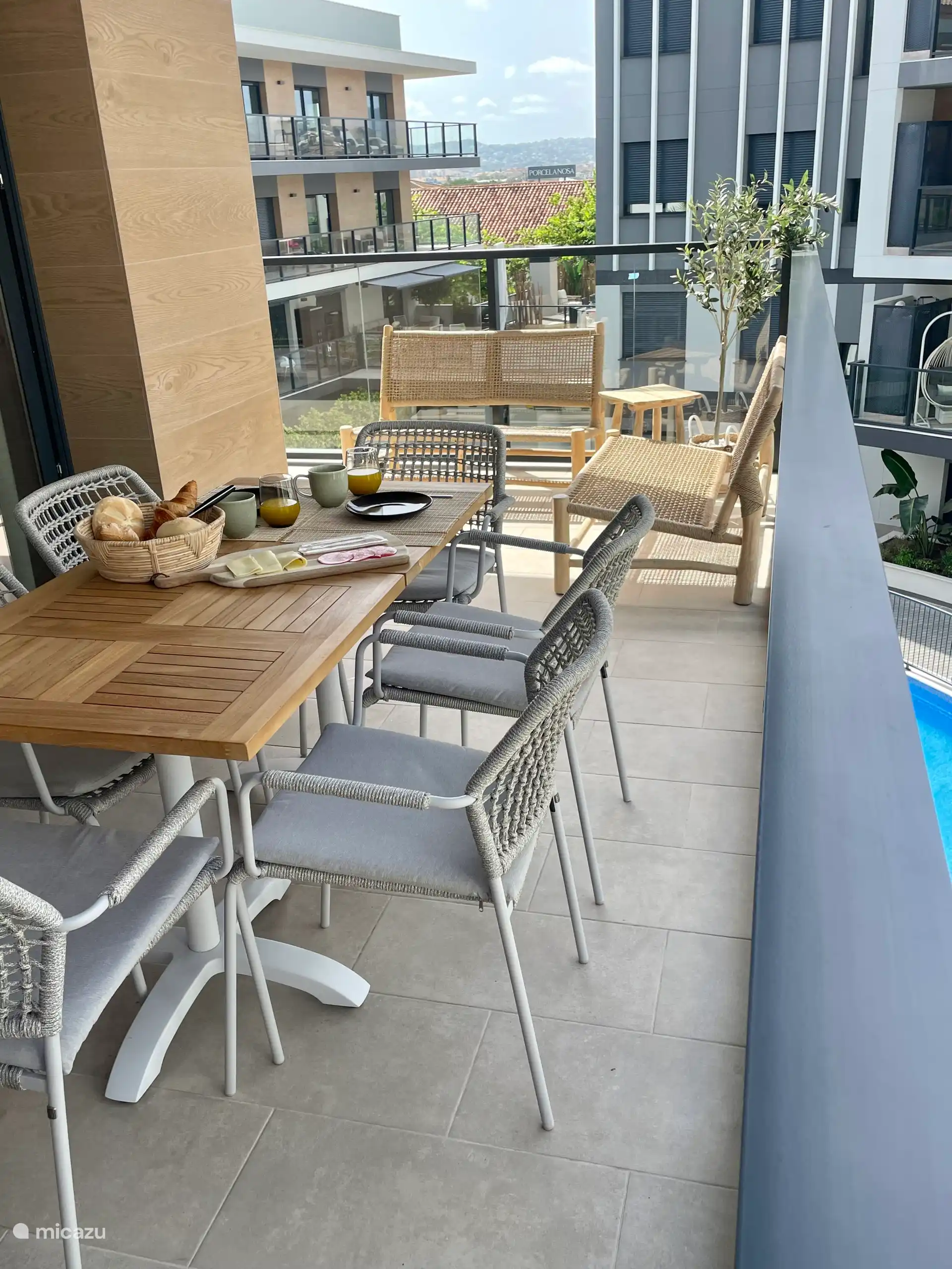 The apartment has a spacious lounge, kitchen, utility room, 3 bedrooms and a large crystallized terrace that can also be opened in its entirety. The sliding doors from the saloon to the terrace give the possibility to use it as a space if desired.