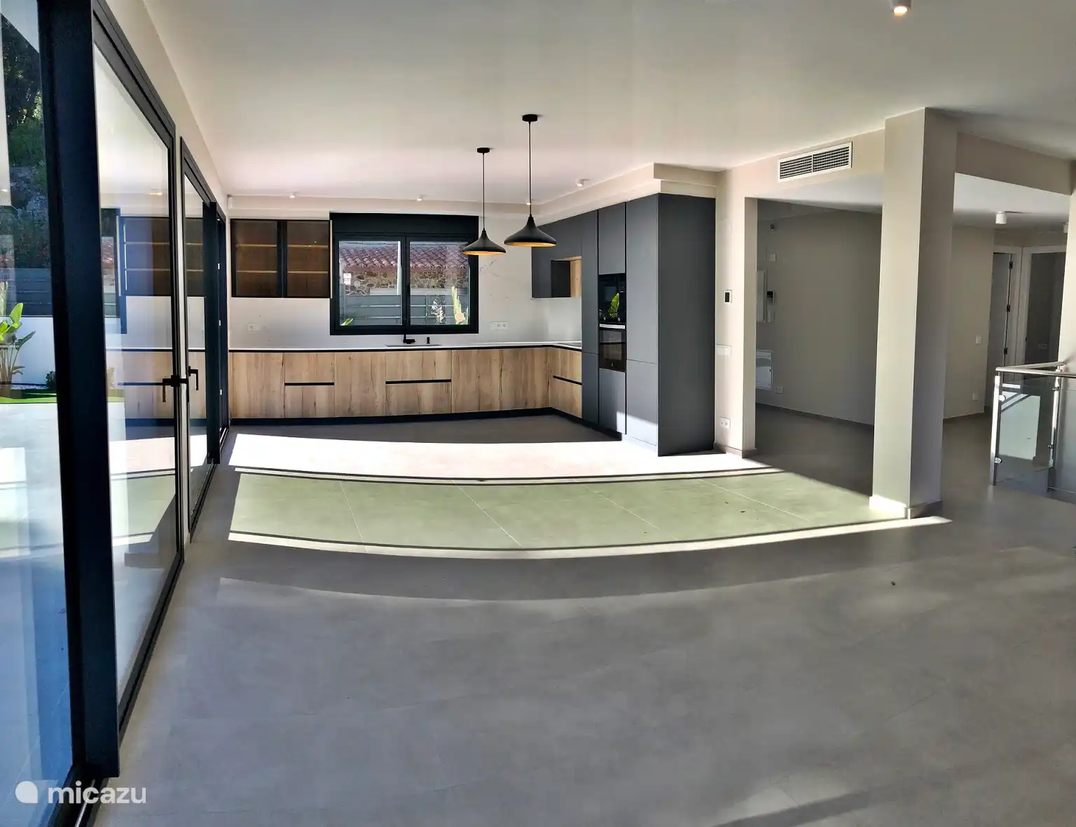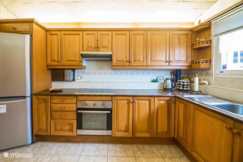 In the middle of the house there is a well-equipped kitchen with the dining room, which communicates with a storage room and an open terrace.