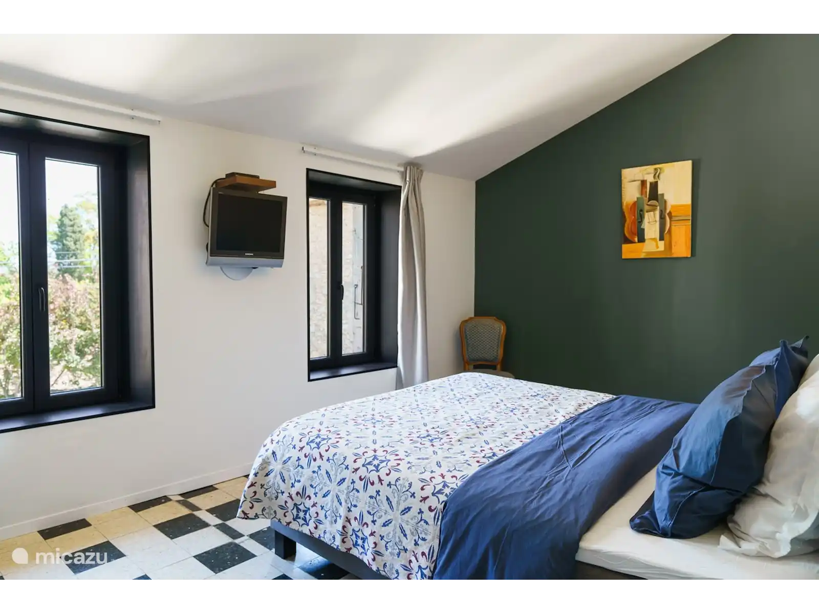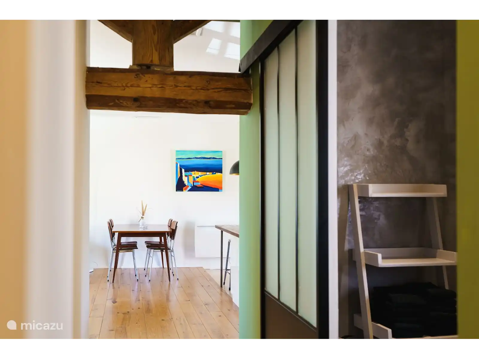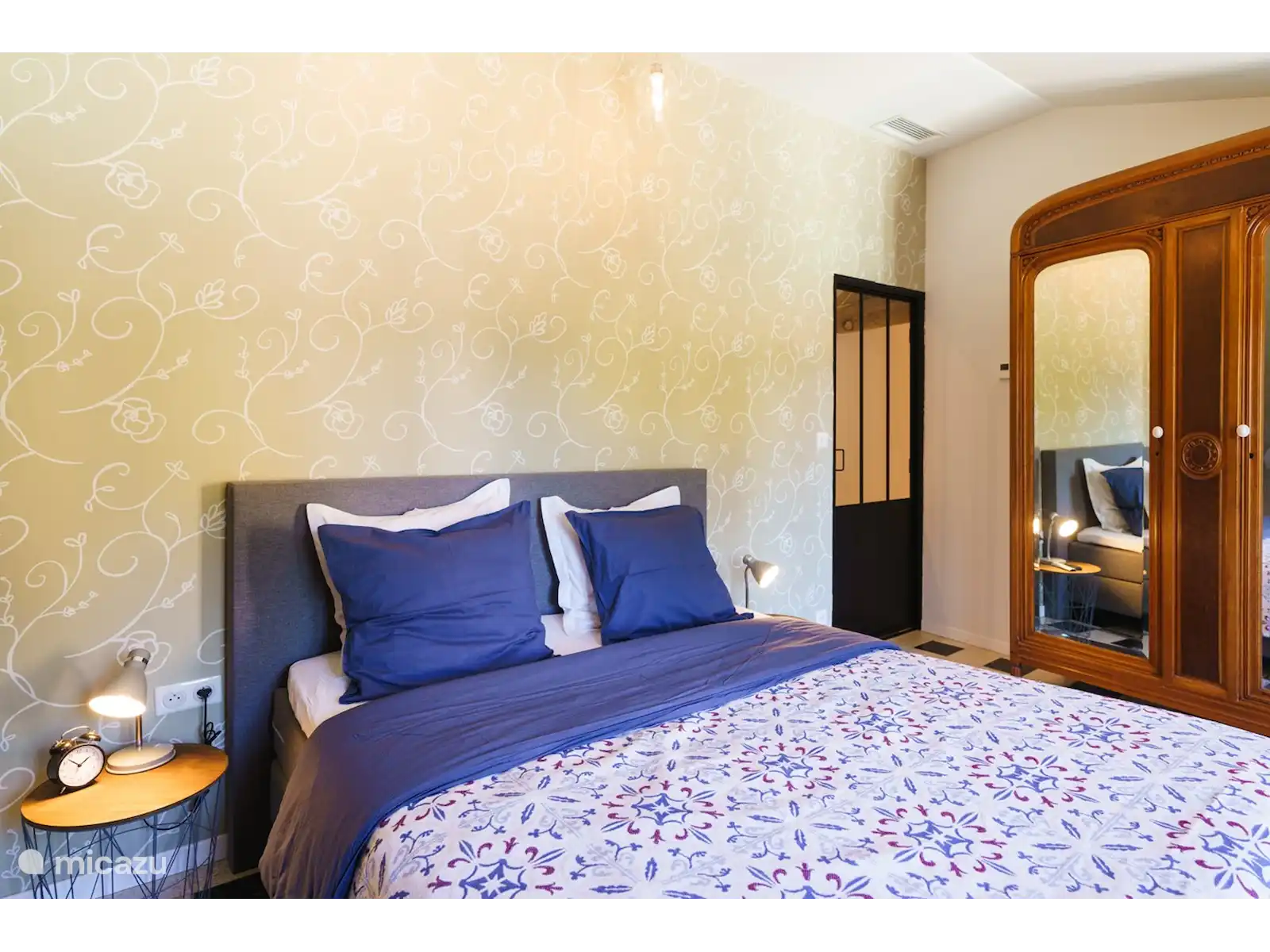 The apartment is suitable for max. 5 people has a well-equipped kitchen, a spacious bright living room, a quiet 2 person bedroom and a large room with a second sleeping place with a double bed and possibly a 5th single bed. In addition, the Gîte has a spacious bathroom with toilet and rain shower. The Gîte is equipped with a noiseless air conditioning system that can be adjusted per room: cool in summer and warm in autumn and winter.