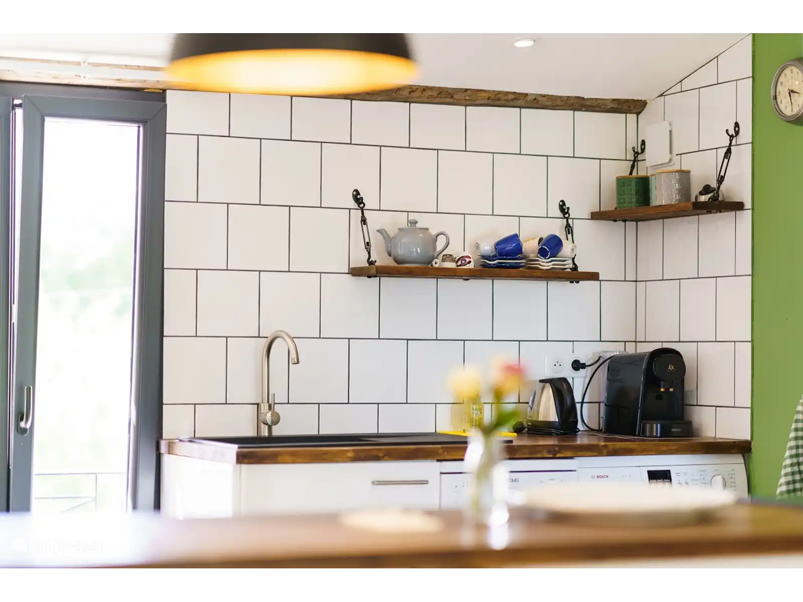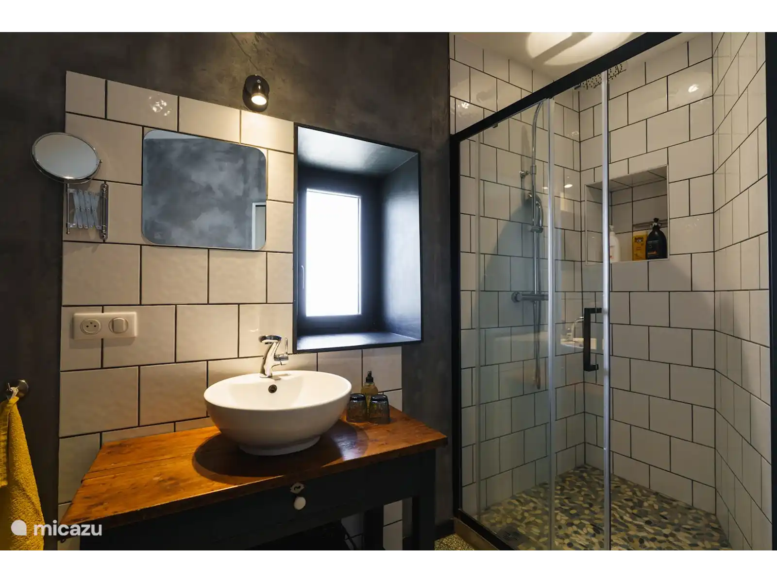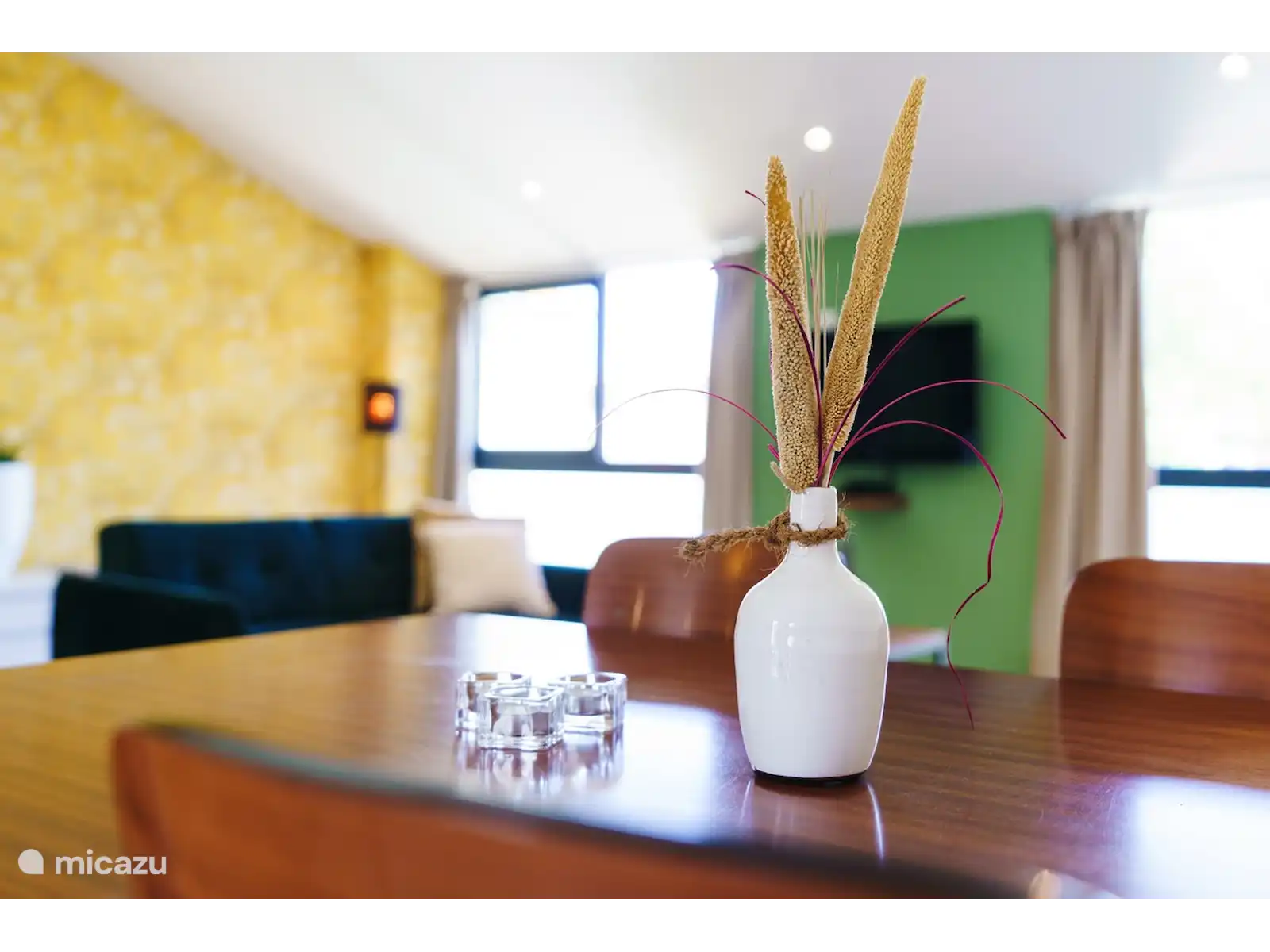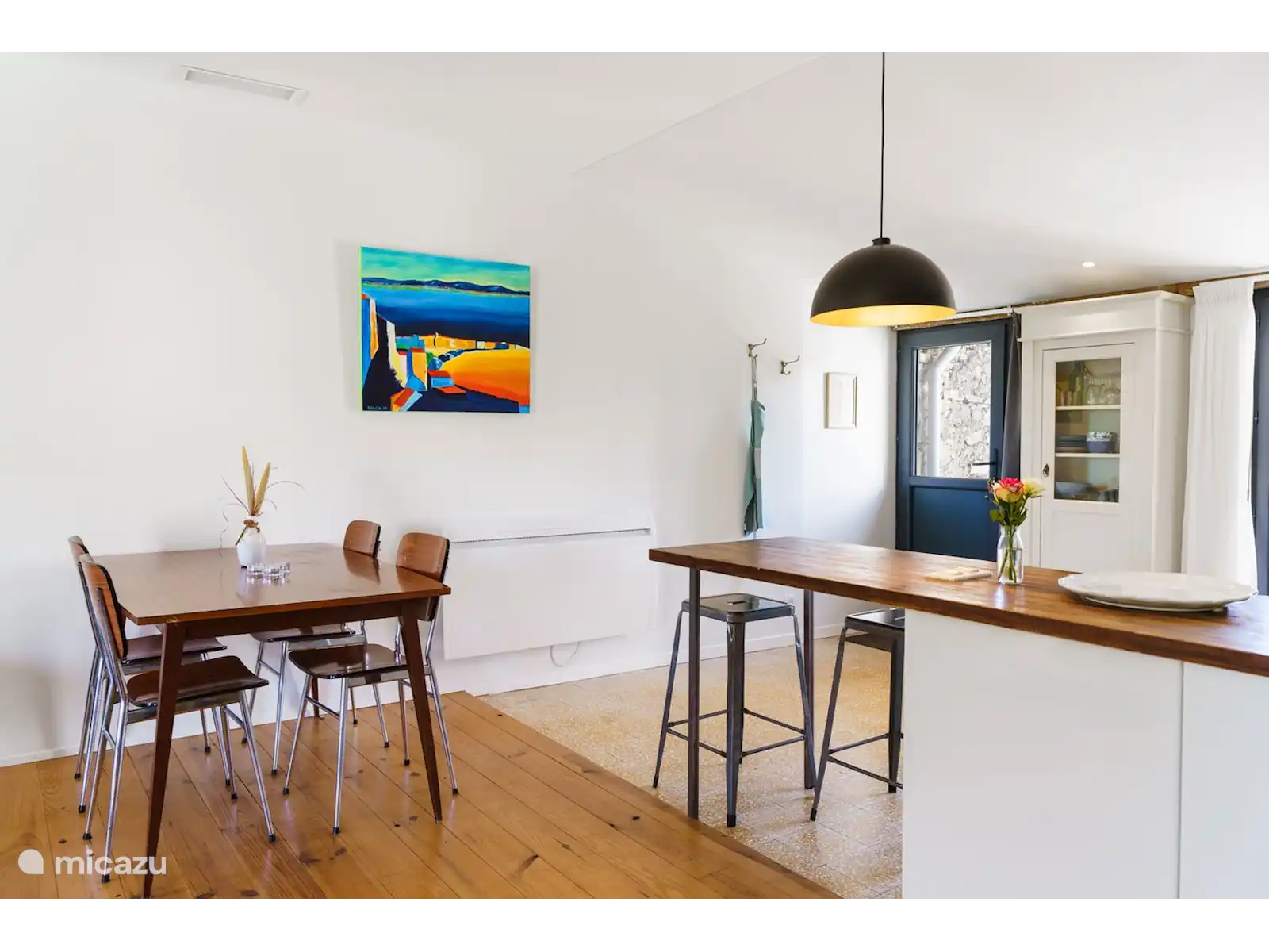 The apartment is suitable for max. 5 people has a well-equipped kitchen, a spacious bright living room, a quiet 2 person bedroom and a large room with a second sleeping place with a double bed and possibly a 5th single bed. In addition, the Gîte has a spacious bathroom with toilet and rain shower. The Gîte is equipped with a noiseless air conditioning system that can be adjusted per room: cool in summer and warm in autumn and winter.