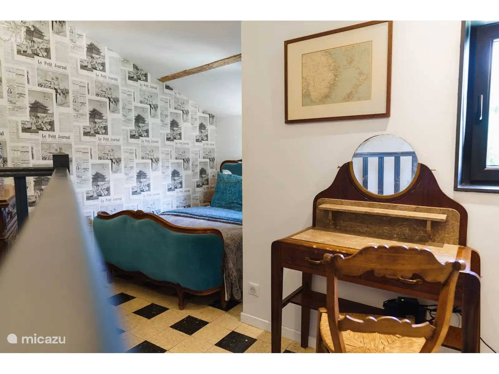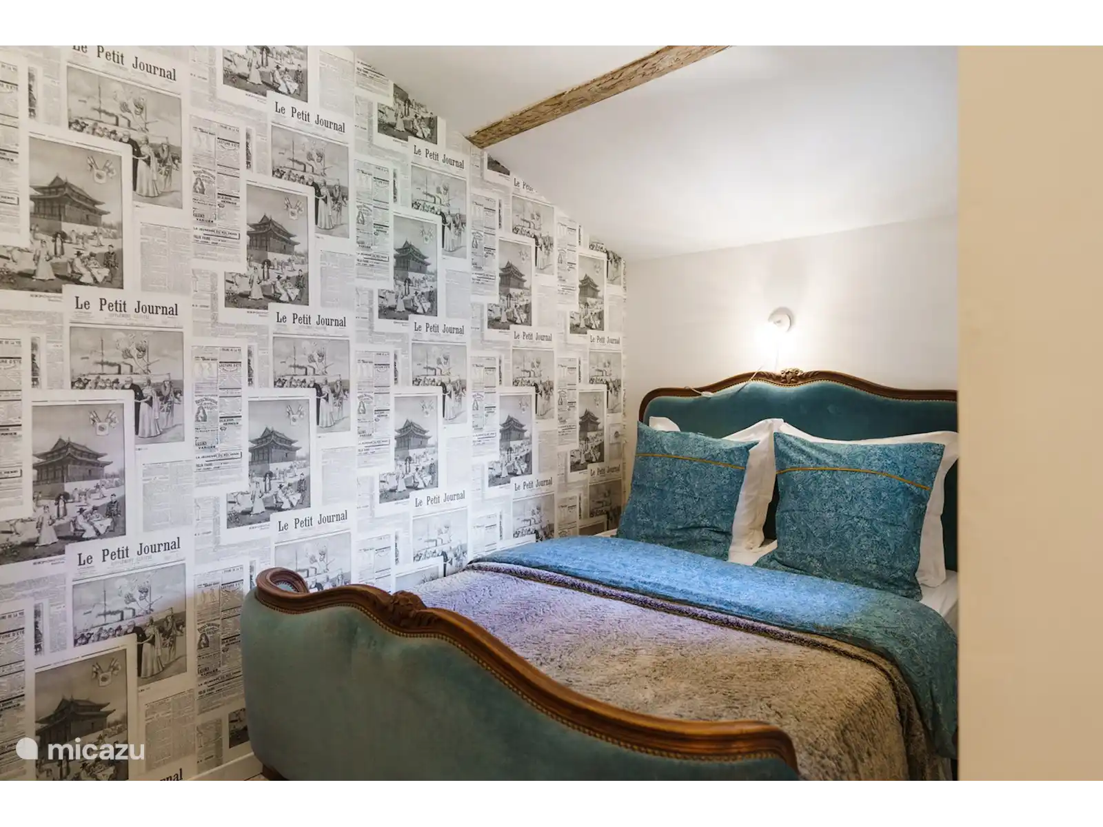 The master bedroom has a spacious 2 person box spring (1.60x2.00 mtr.) The bed in the 2nd bedroom is a real authentic French bed (1.40x1.90 mtr.). For a fifth person there is an extra bed (0.80x2.00 mtr.) available.