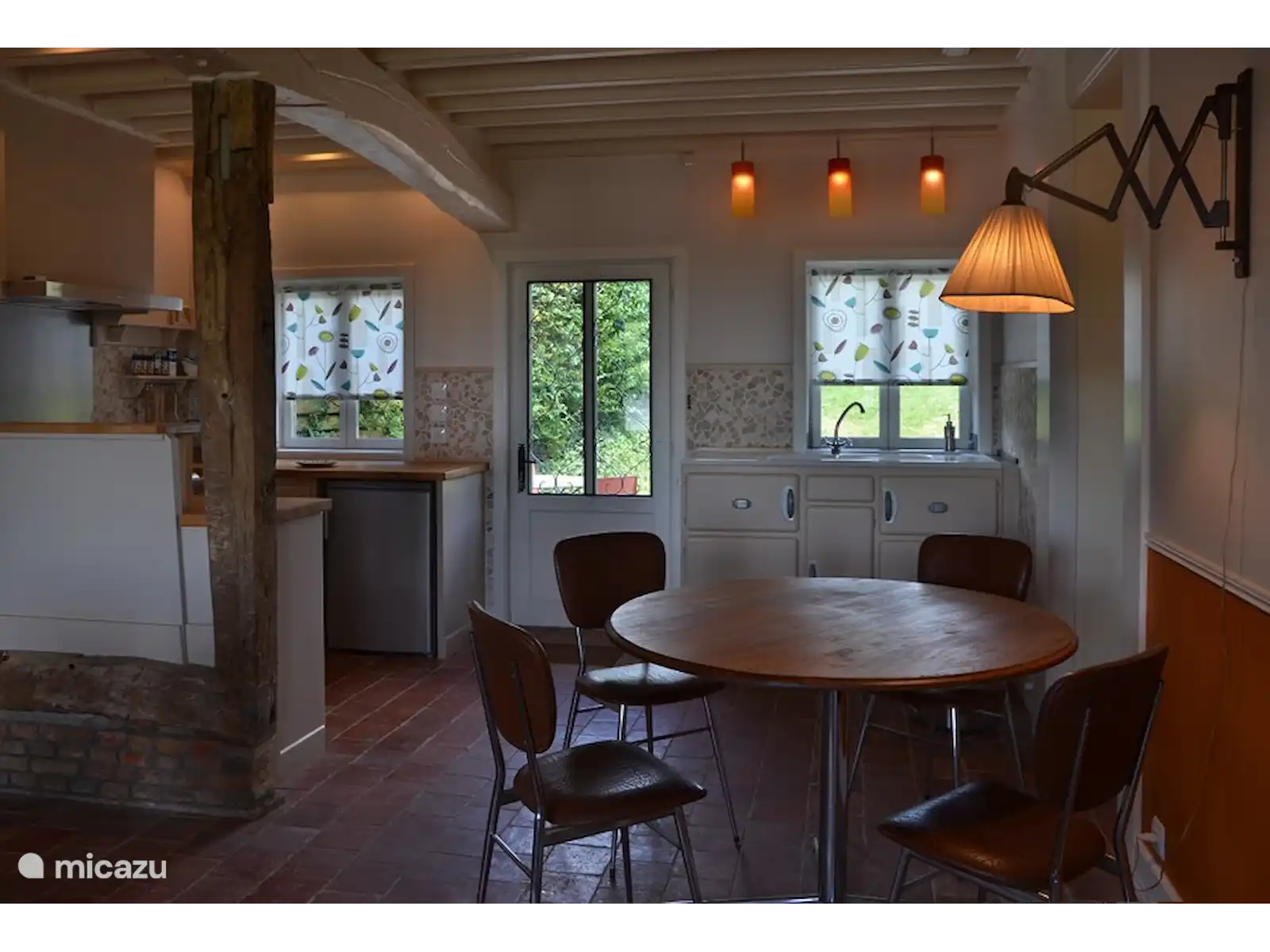 You can stay there with a maximum of 5 people. The living room with wood stove has a nice atmosphere and a beautiful view (see photo). There is a beautiful open kitchen with a five-burner gas stove and plenty of kitchen utensils for good cooking.