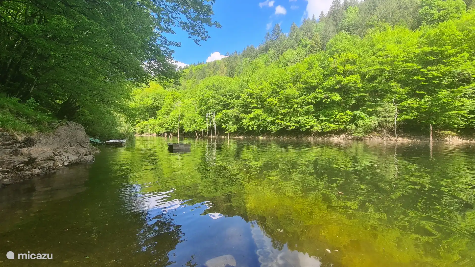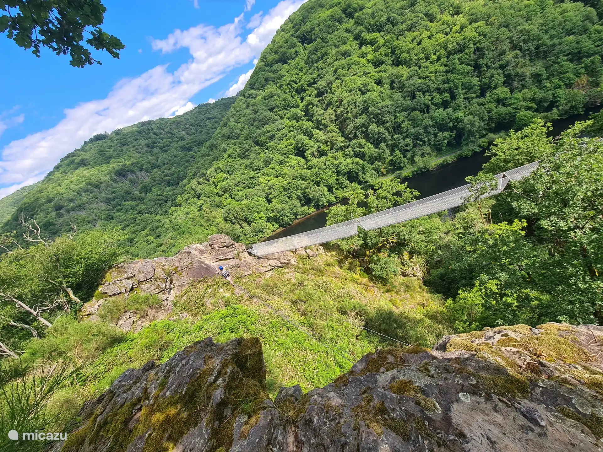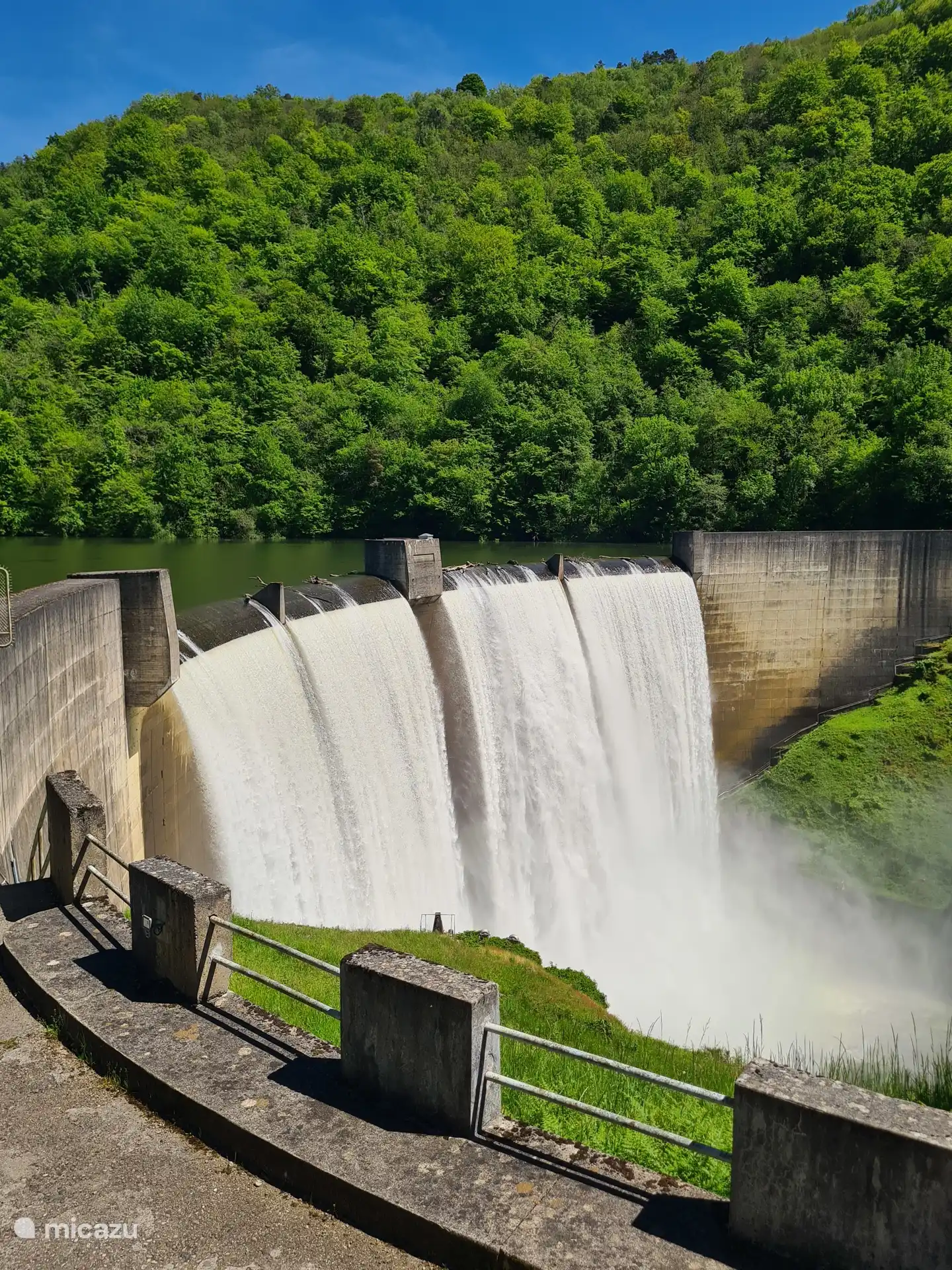 The 'Vallée de la Dordogne' extends over the departments of Corrèze and Dordogne. The beautiful, green, hilly surroundings offer various opportunities for sporting activities such as hiking, swimming (750 meters in the lake), mountain biking, cycling, fishing, canoeing, kayaking, rafting and via ferrata.