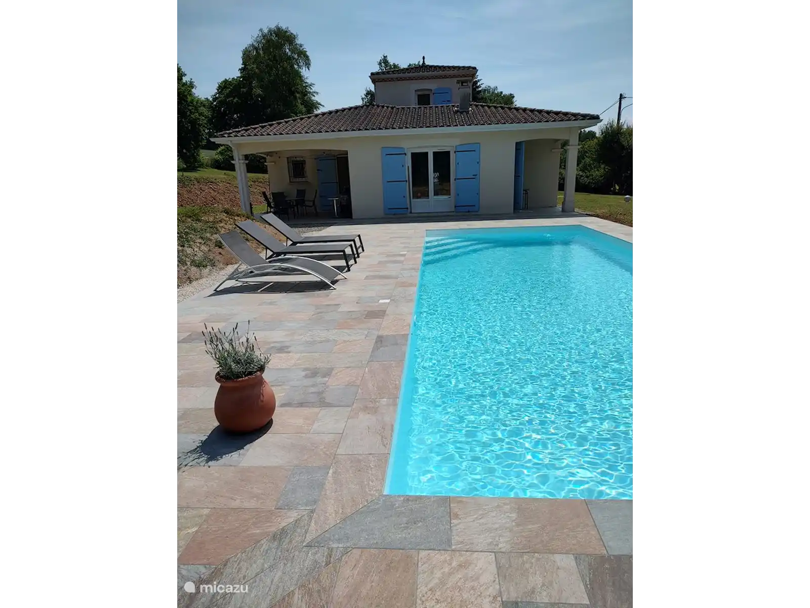 Maison les Boules is a modern spacious bungalow with a fully enclosed garden of 3000 m2 with a large private swimming pool (10 x 4 x 1.6 m).