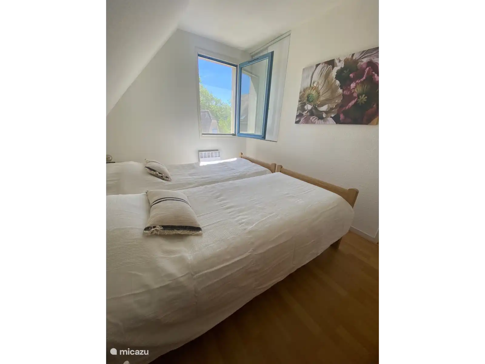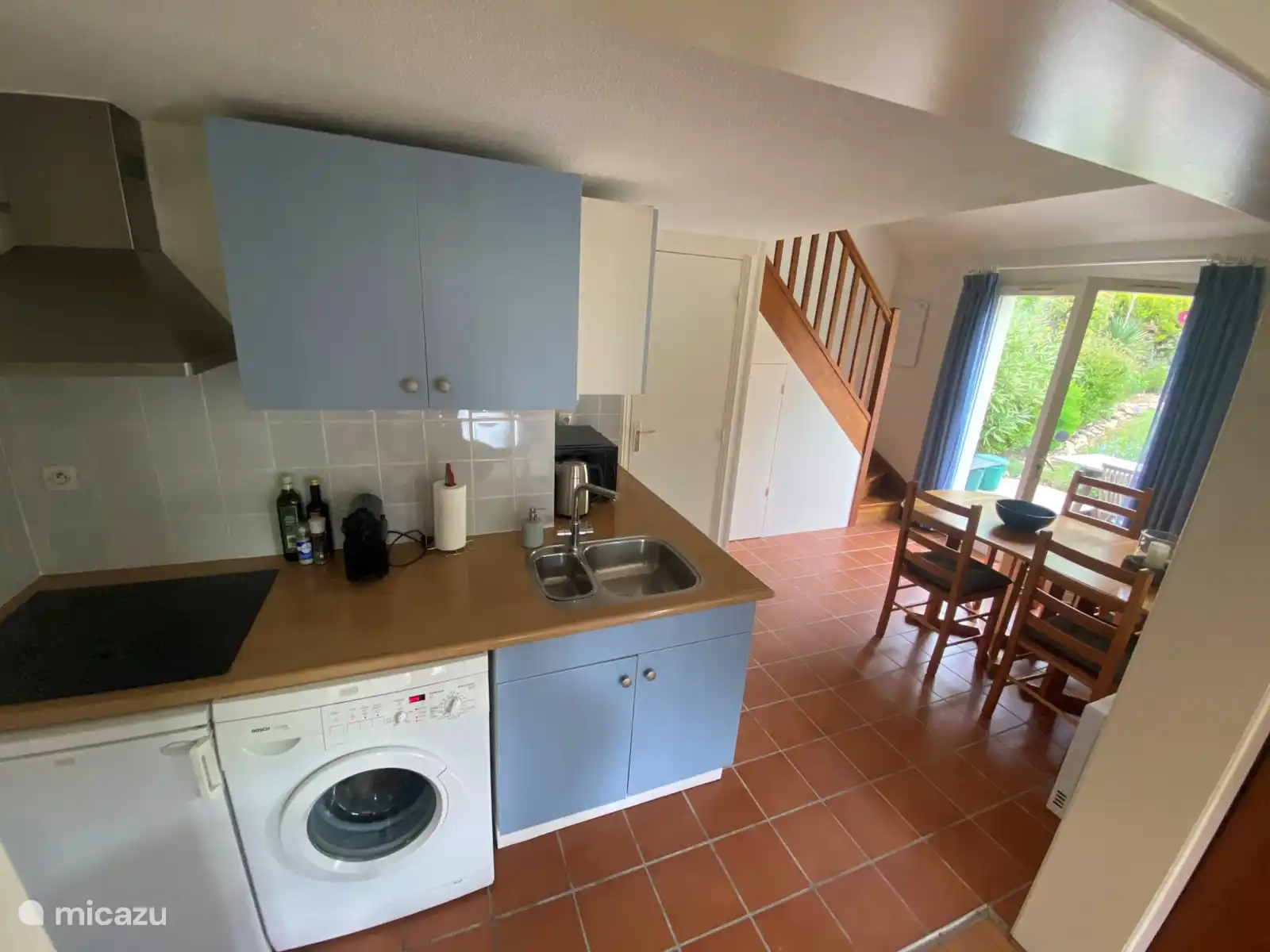 The stairs in the living room lead to a double bedroom with 2 single beds. When you open the French shutters in the morning, you look out over Domaine de Carsac. Above the kitchen is a loft with a double bed and a bunk bed. There is also a camping bed for the little ones. Optionally, you can rent bed and bath linen from us.