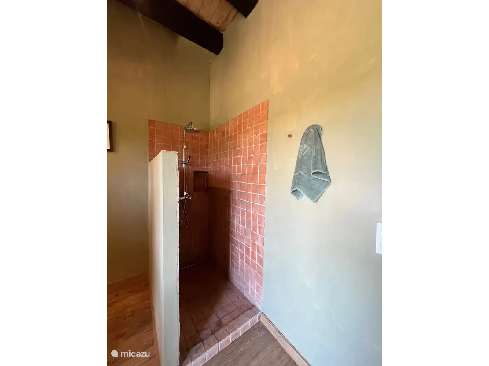 The second bedroom has 2 single beds (which can be turned into a double bed on request) and a beautiful view of the garden. A second bathroom is equipped with a toilet, a sink and a walk-in shower.
