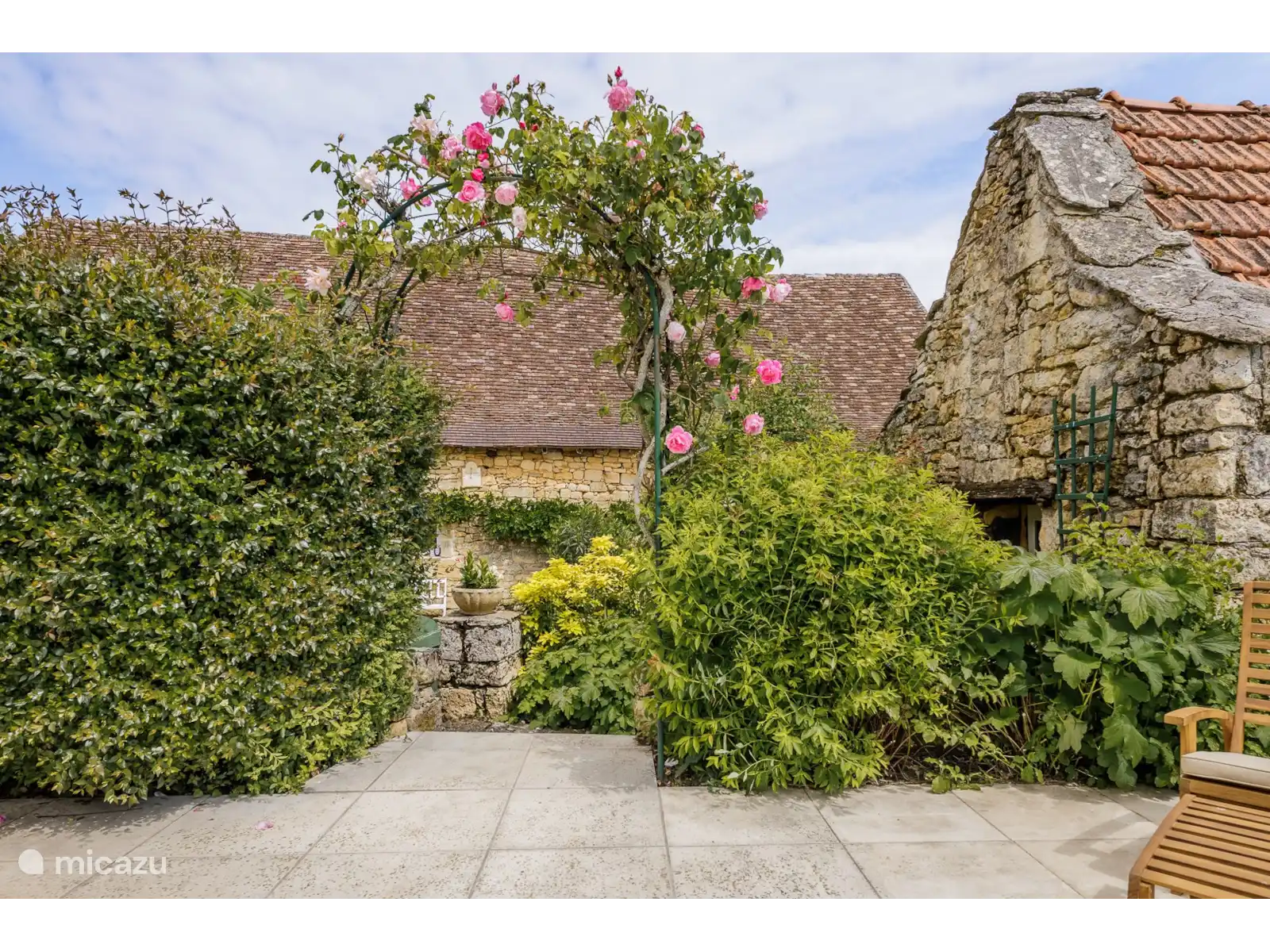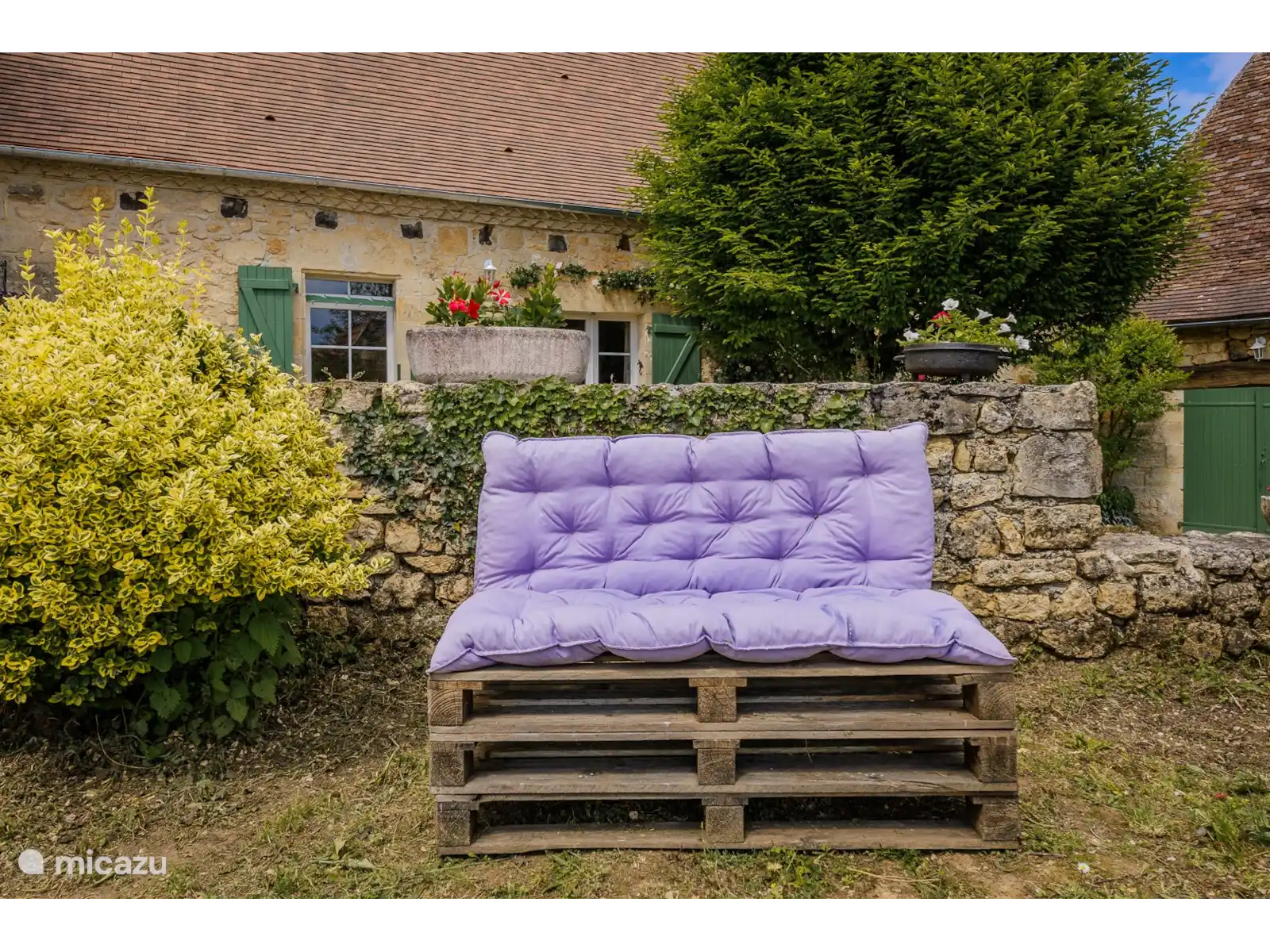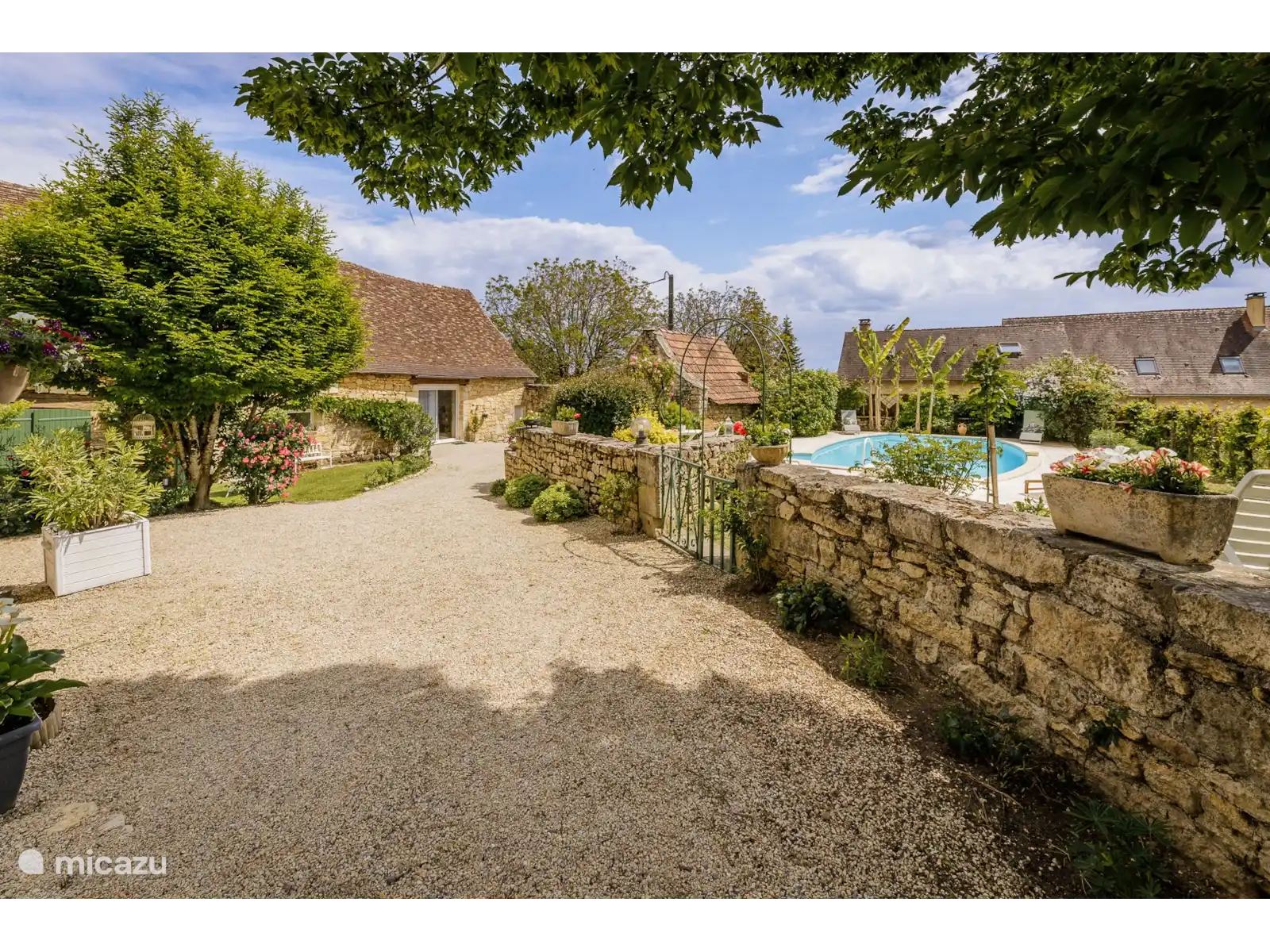 The discreet owner lives in the barn next to the house but has her own terrace at the back of this house so there is no view of the pool. So you are just sitting privately.