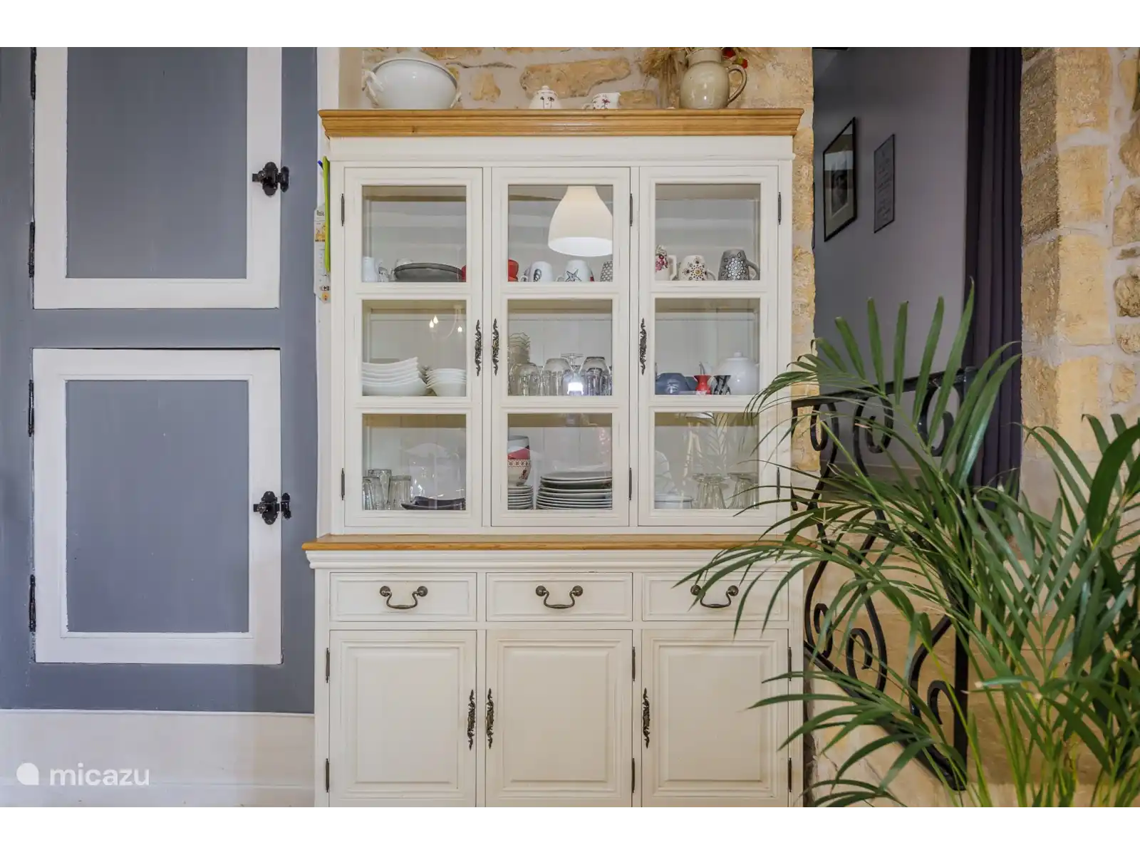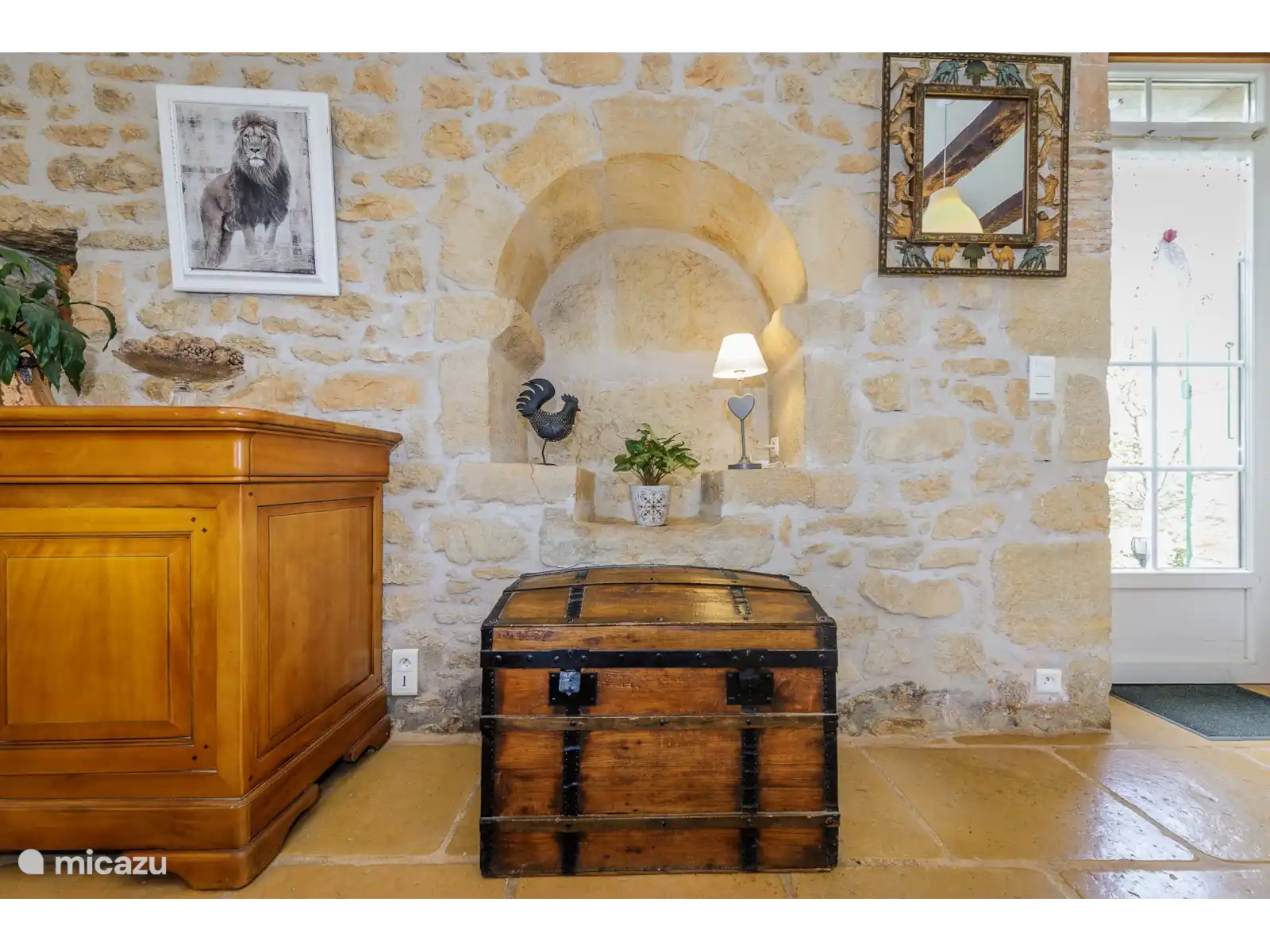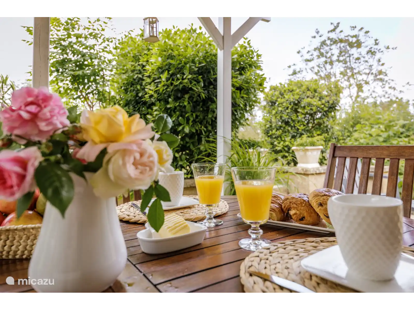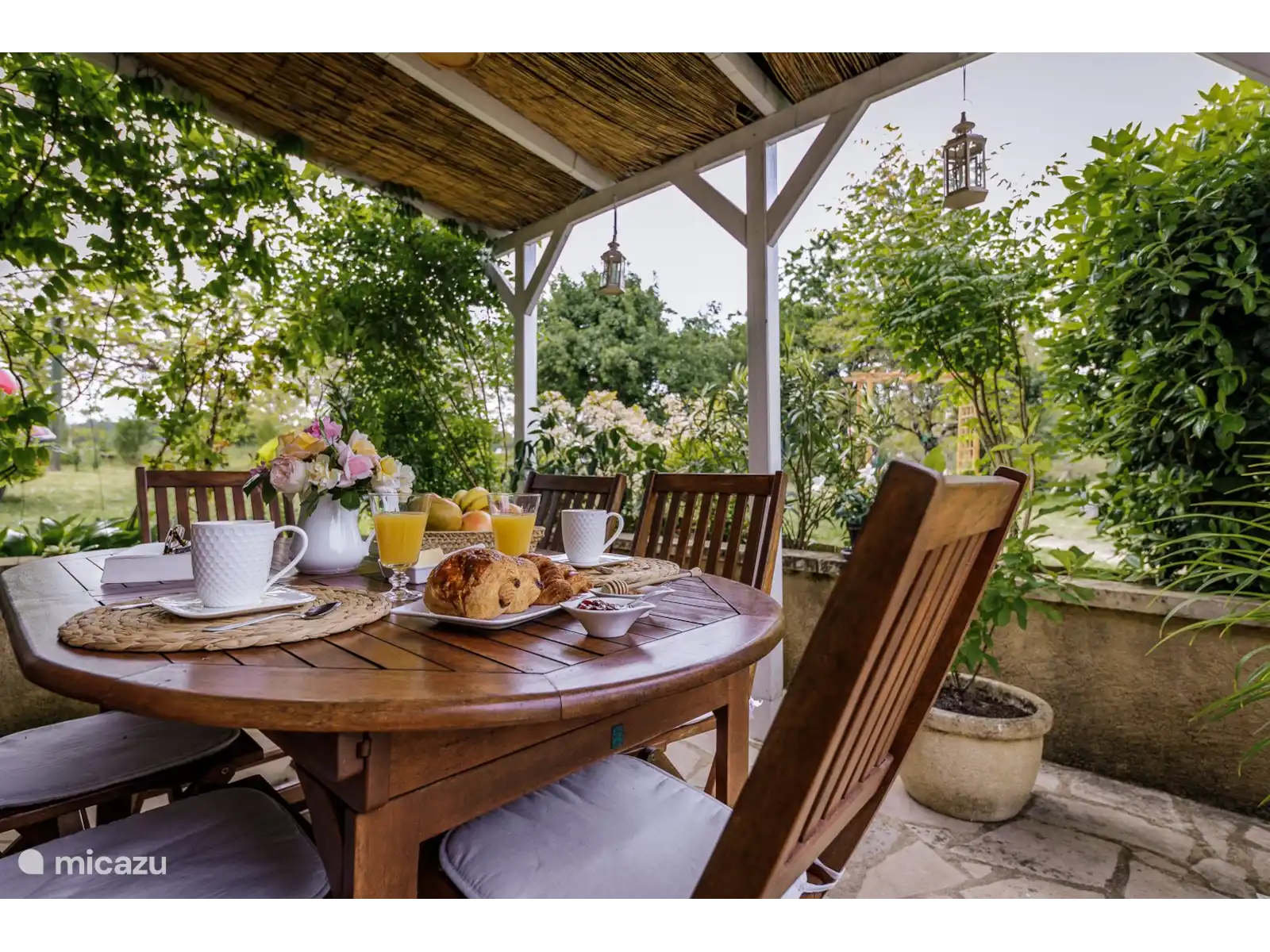 The discreet owner lives in the barn next to the house but has her own terrace at the back of this house so there is no view of the pool. So you are just sitting privately.