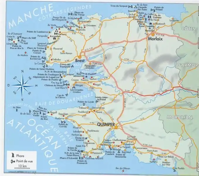 Located at a distance of 14 km from Quimper. Distance to the Atlantic Ocean is 25 km. The area is rolling, beautiful nature reserves, characteristic towns with harbours. Impressive coastlines with beautiful sandy beaches. Cap Coz, (30 km) is called the Breton Riviera.