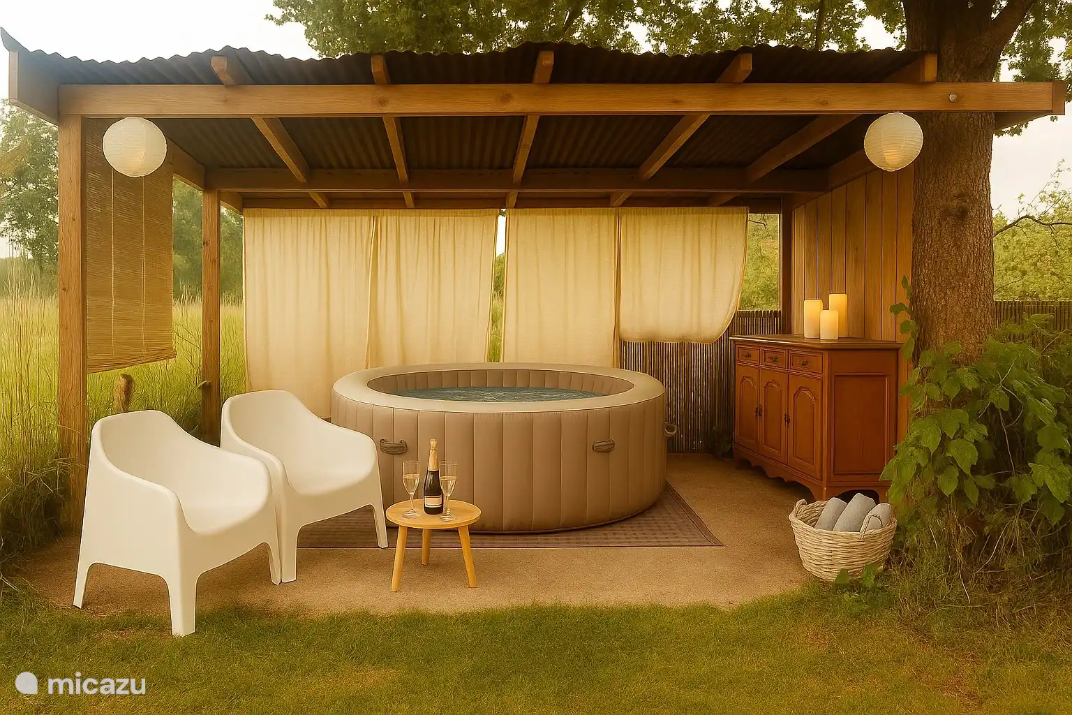 In the summer months, in addition to our gite, we also have a mini campsite with 8 places. In the high season, a great vintage caravan from the Chateau brand will be installed in 1 of those places.