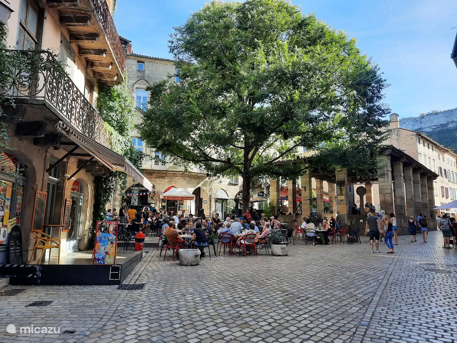 Saint Antonin is a beautiful southern French village. Every Sunday there is a regional market, which attracts many visitors. In the cozy old village with only "maisons and pierres" you can fully enjoy the many shops of artists, galleries, atmospheric terraces, restaurants (about 8) and cafes through the winding, medieval and car-free streets. There are two supermarkets, a bank and post office and three bakeries. Everything within walking distance. The main square, with the Romanesque House dating from 1125, offers you an unforgettable moment to enjoy a glass of wine under the plane trees.